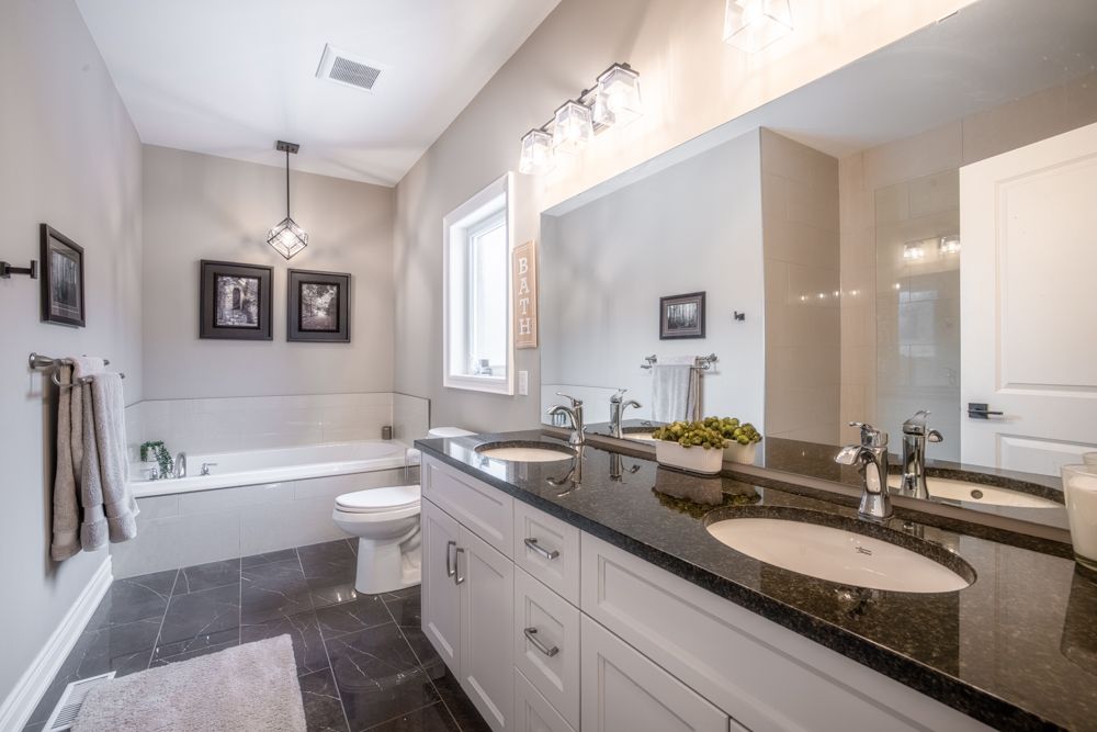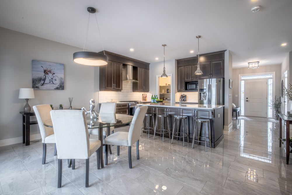 • Main floor includes elegant hardwood, tile, and plush carpeting.