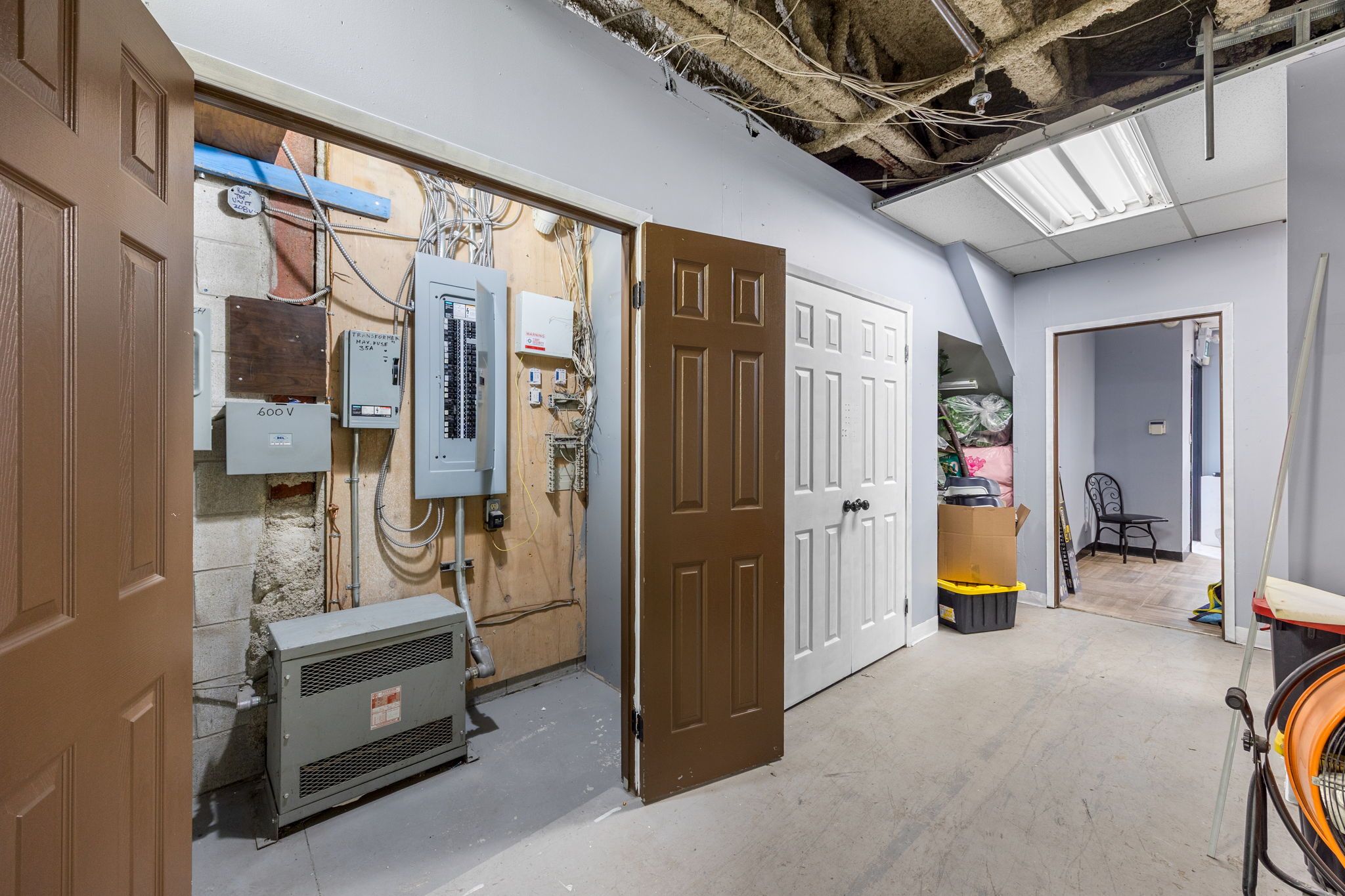 Seize a remarkable and unique opportunity in a centrally located industrial complex in north york. This industrial condo, with favorable eh1 zoning, is suitable for many industrial uses. The property features a rare oversized drive-in garage door with a 20-foot clear height and robust 600-amp power. The space is thoughtfully designed, including a separate entrance to a 1,300 sq ft mezzanine on the second floor. This level offers a finished office space, storage, a kitchenette, and two full bathrooms. The lower level features a warehouse for storage and an additional bathroom. Located just minutes from highways 400, 407, and 7, this site provides exceptional access to major transportation routes. The property also includes four parking spaces. With a total area of 3,700 square feet, the building is equipped with gas forced-air heating, air conditioning, and sprinklers. This is a fantastic opportunity for both end-users and investors looking for a prime industrial location.