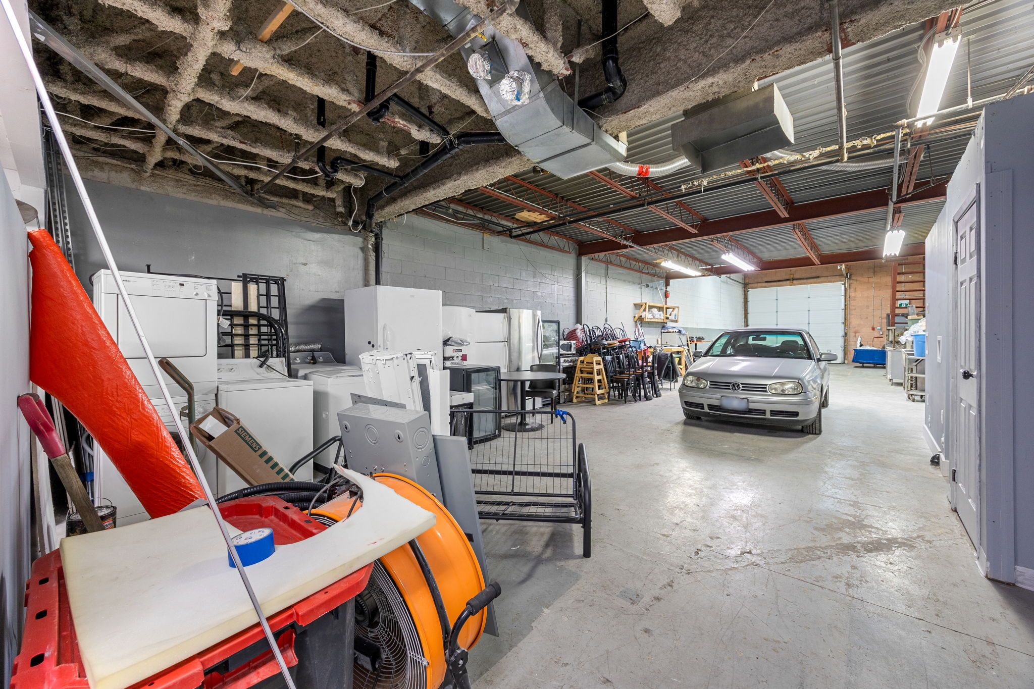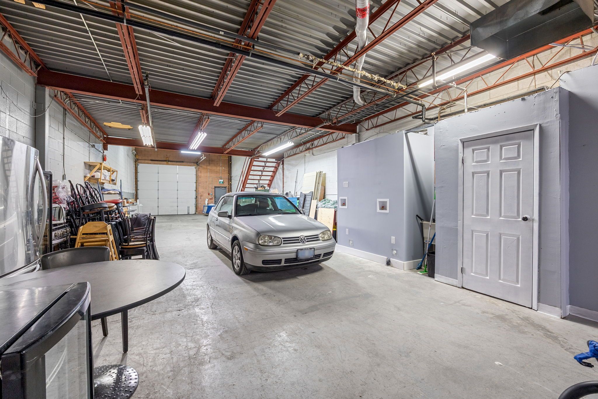 • Oversized drive-in garage door with 20-foot clear height.