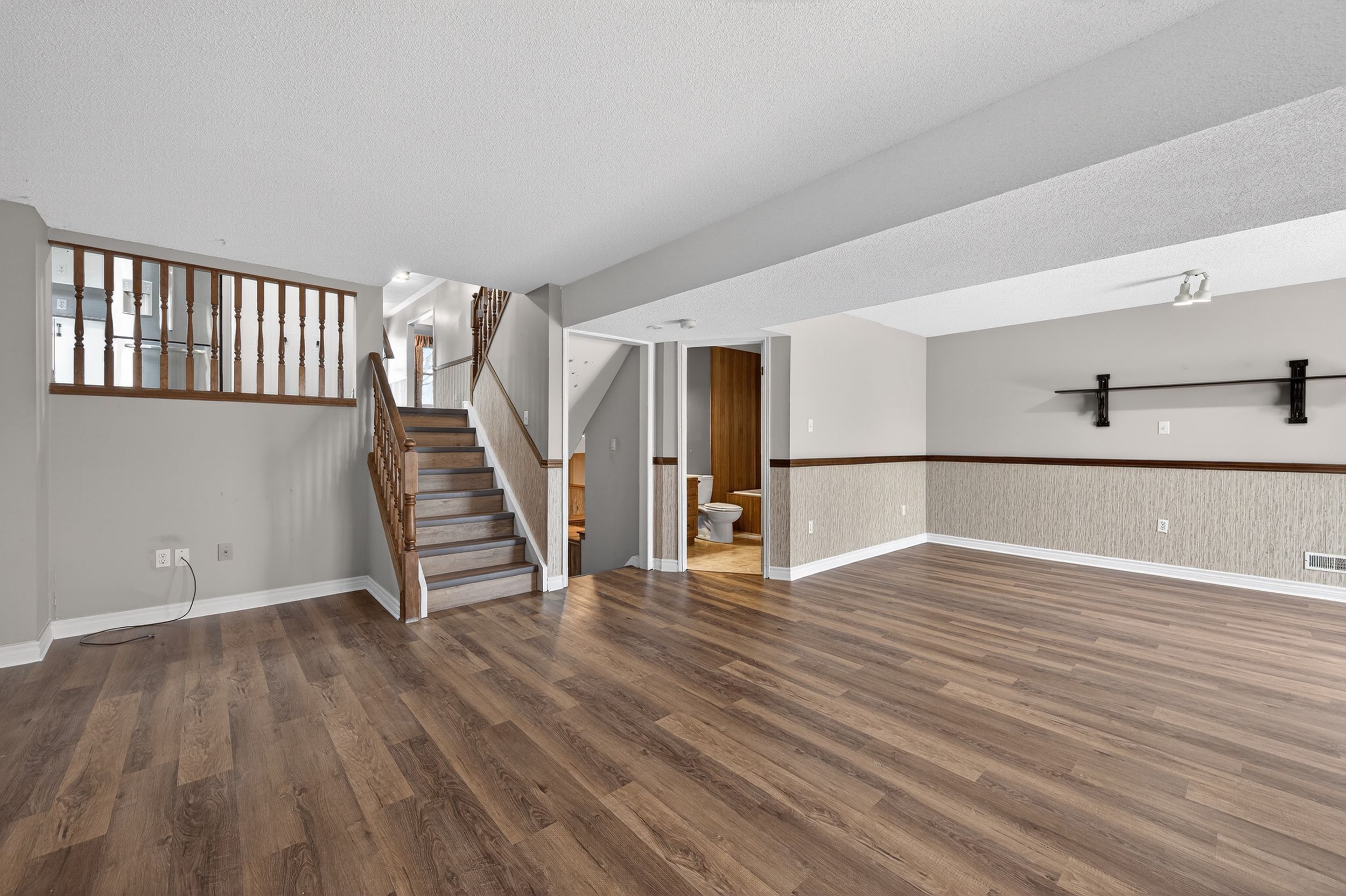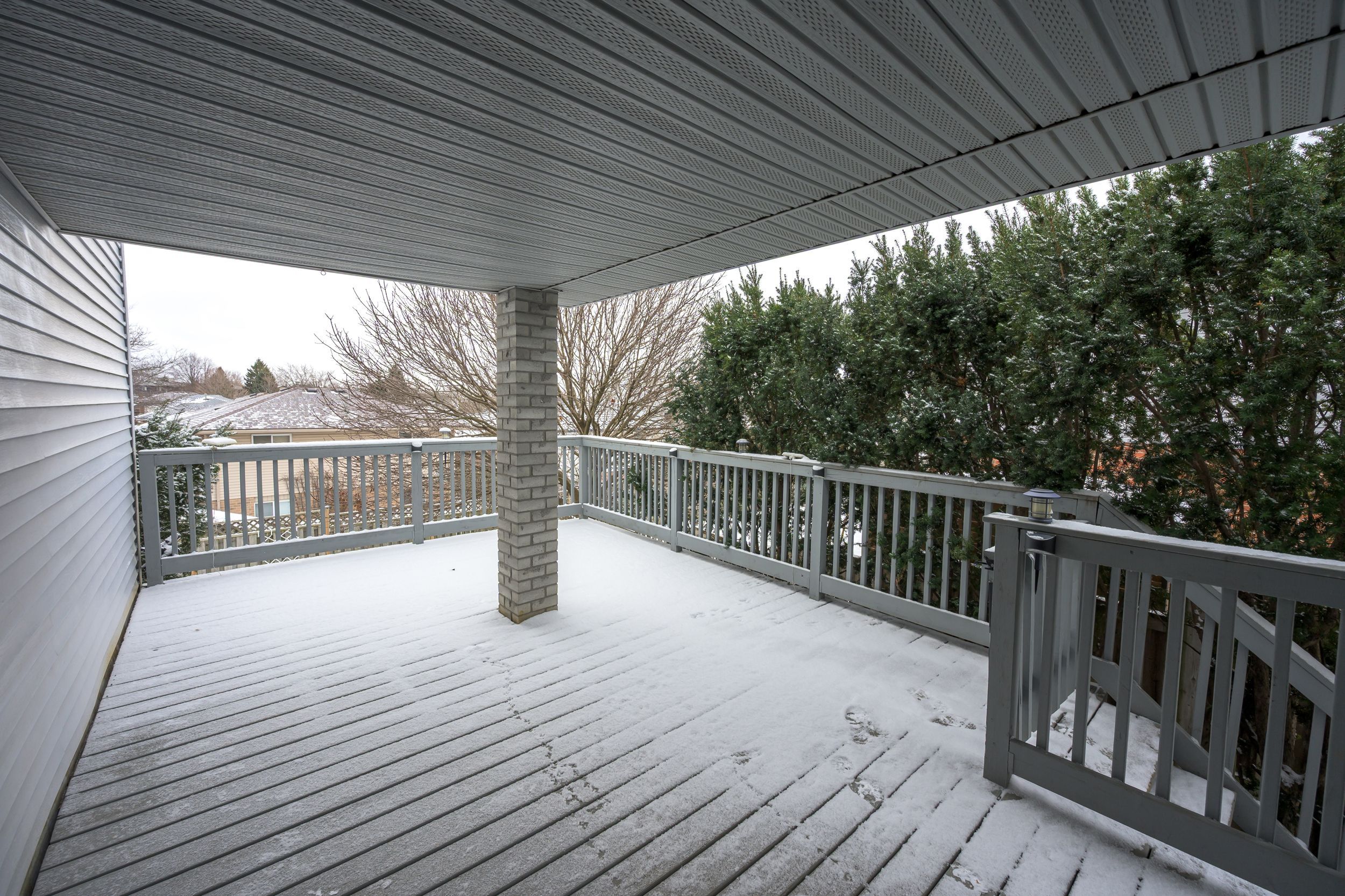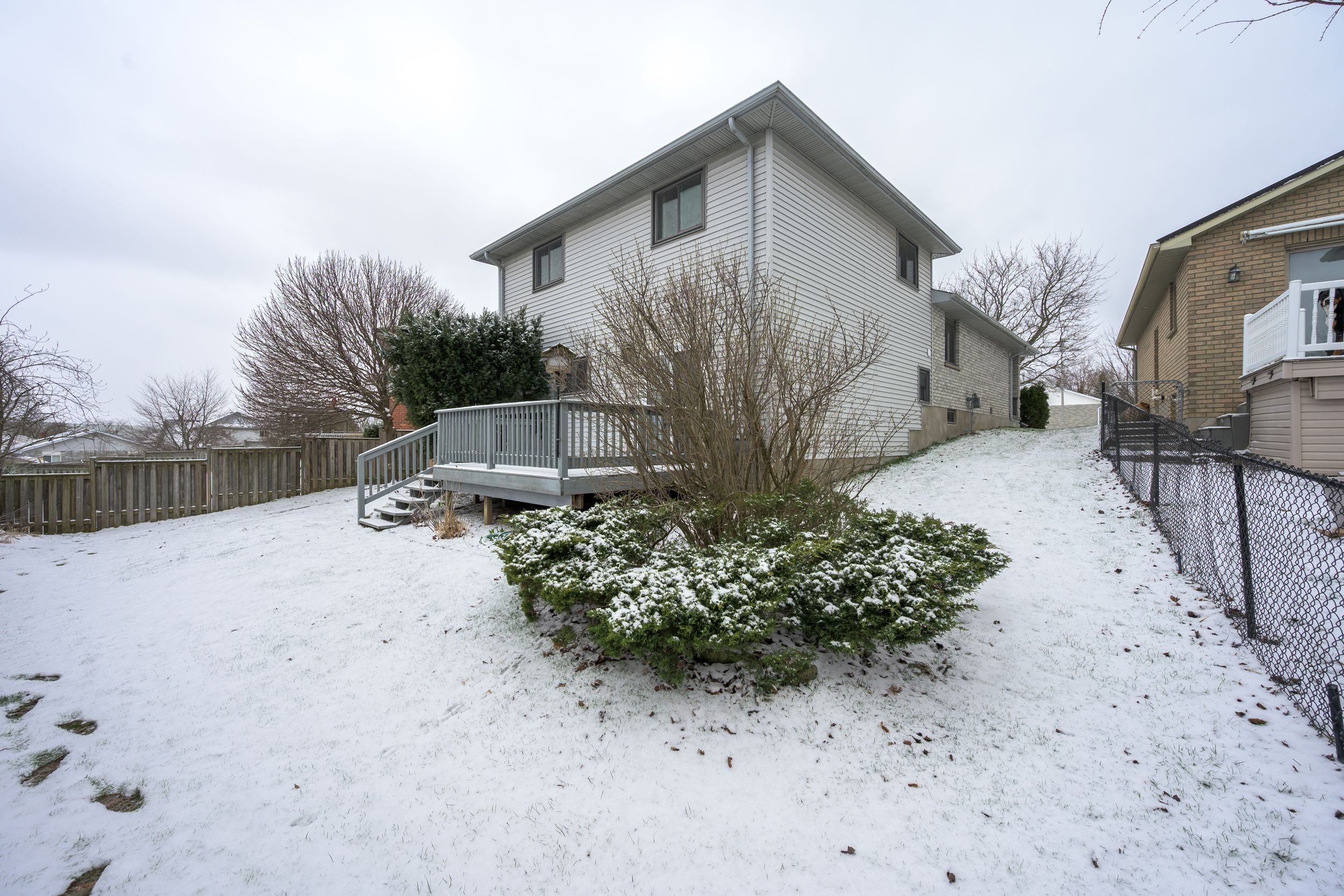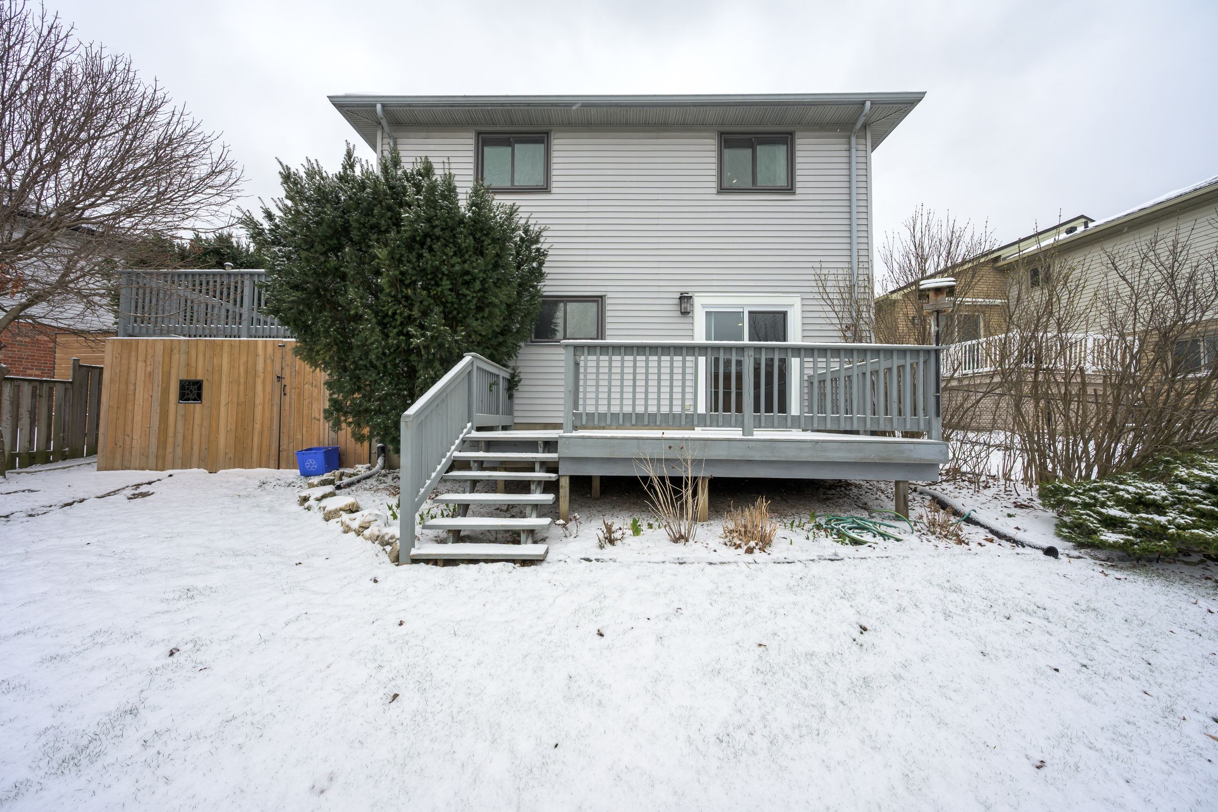 Whiteoaks. Spacious 4 level backsplit with attached 1 1/2 car garage. Separate living and dining rooms. Eat-in kitchen - with loads of cupboards and counterspace and exit to a large deck. Pantry closet. 3 good sized bedrooms. Large lower level family room with gas fireplace and walkout to deck and back yard. Lots of storage areas under the deck. 3 piece bathroom with jacuzzi tub on lower level. Great entertainment room in the basement with a full bar - perfect for playing pool and darts. Seller would be willing to sell the pool table and all accessories. Lots of storage. Great location - close to schools, shopping, restaurants, grocery stores, bus routes. Easy access to whiteoaks mall and hwy 401