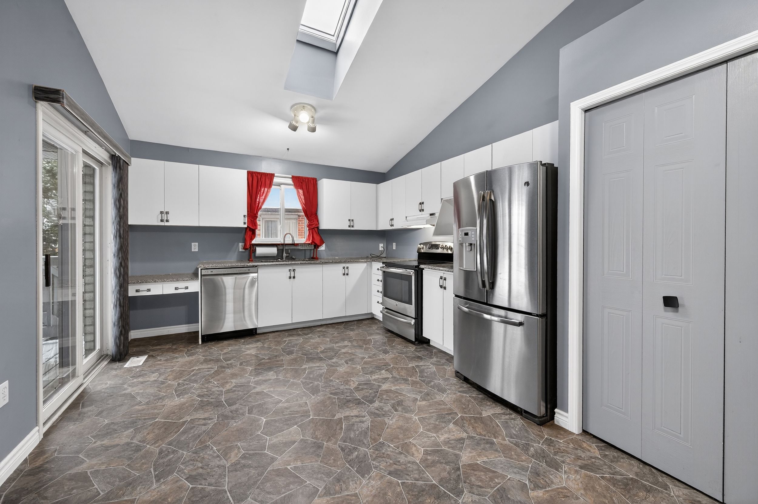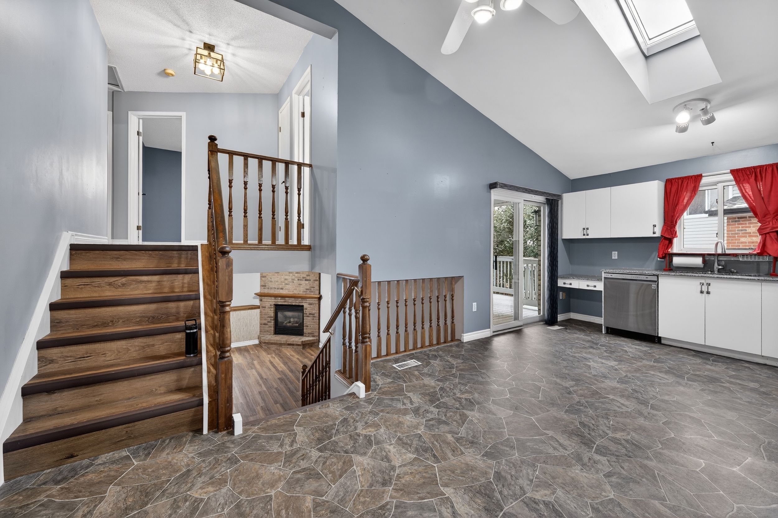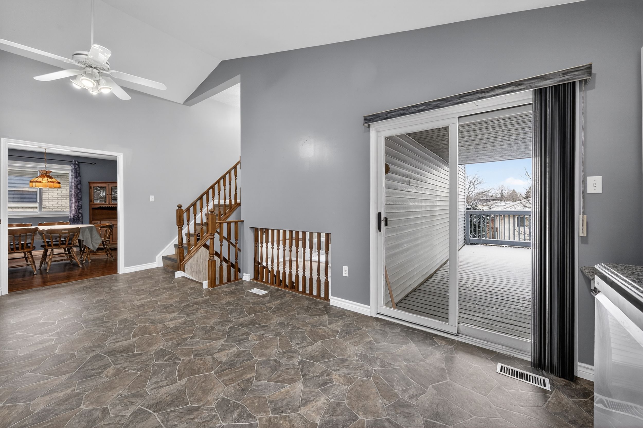 • Eat-in kitchen with ample cupboards and access to a large deck.