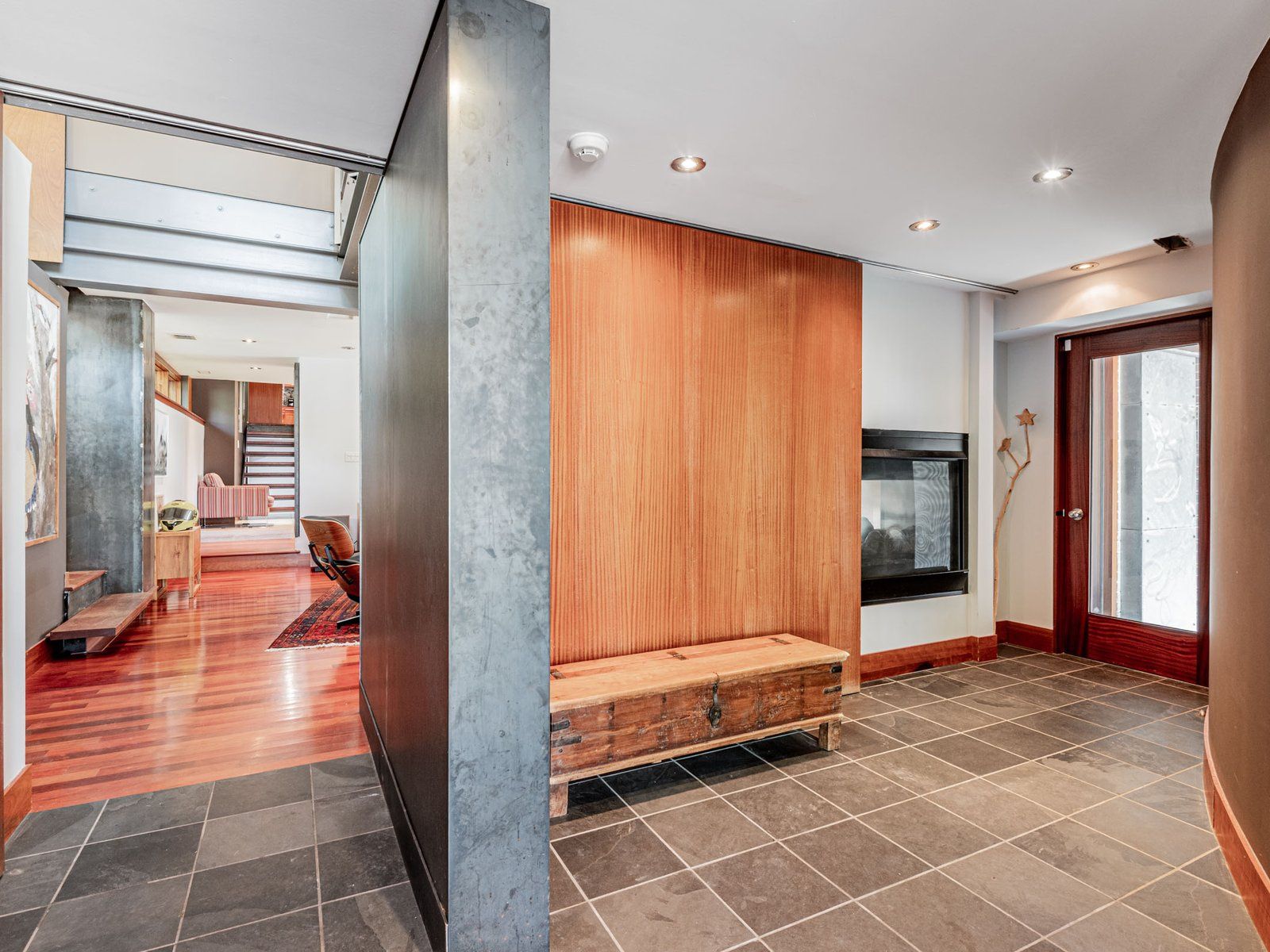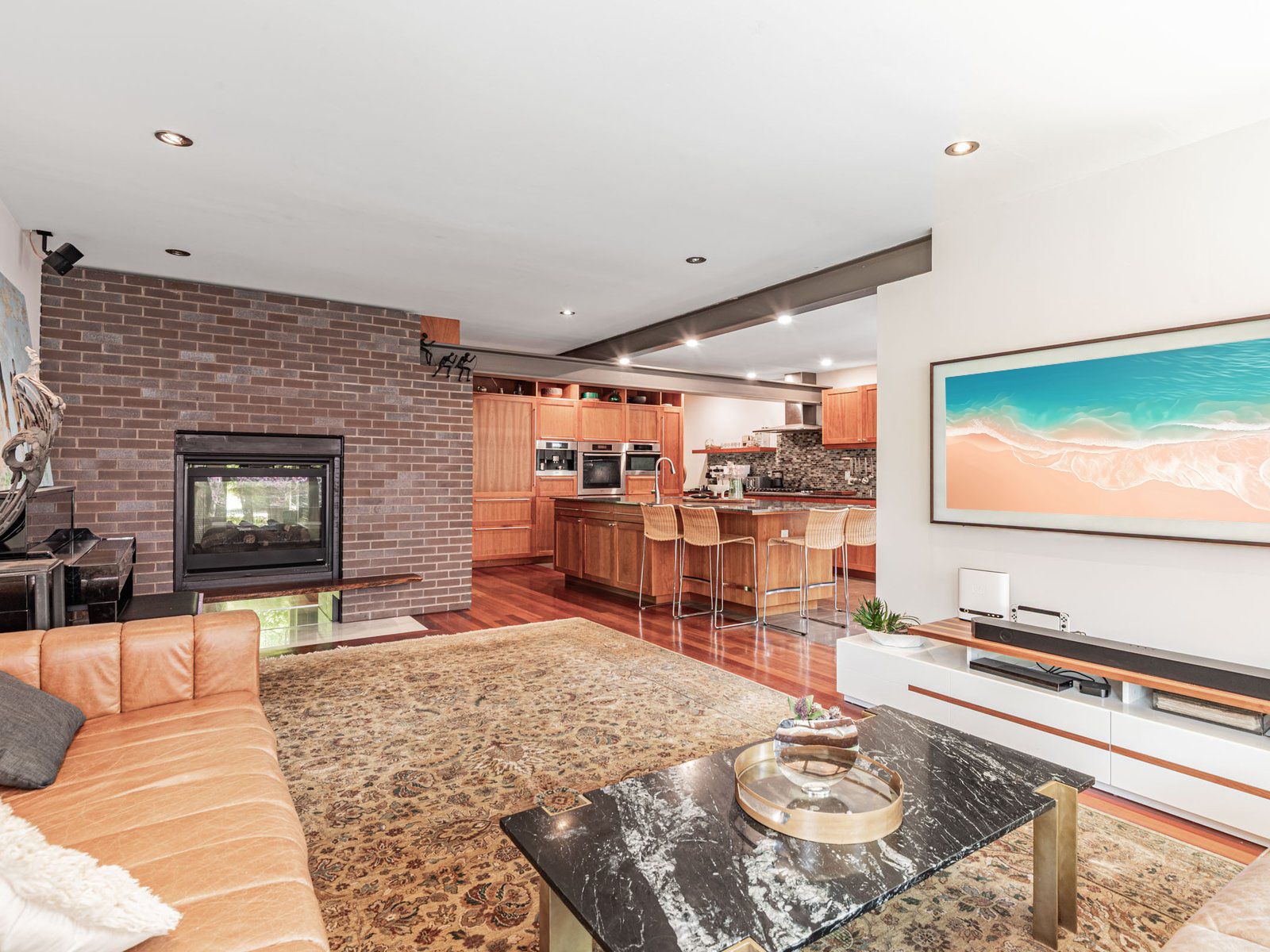 • Unique design featuring exposed beams and rich hardwood floors.