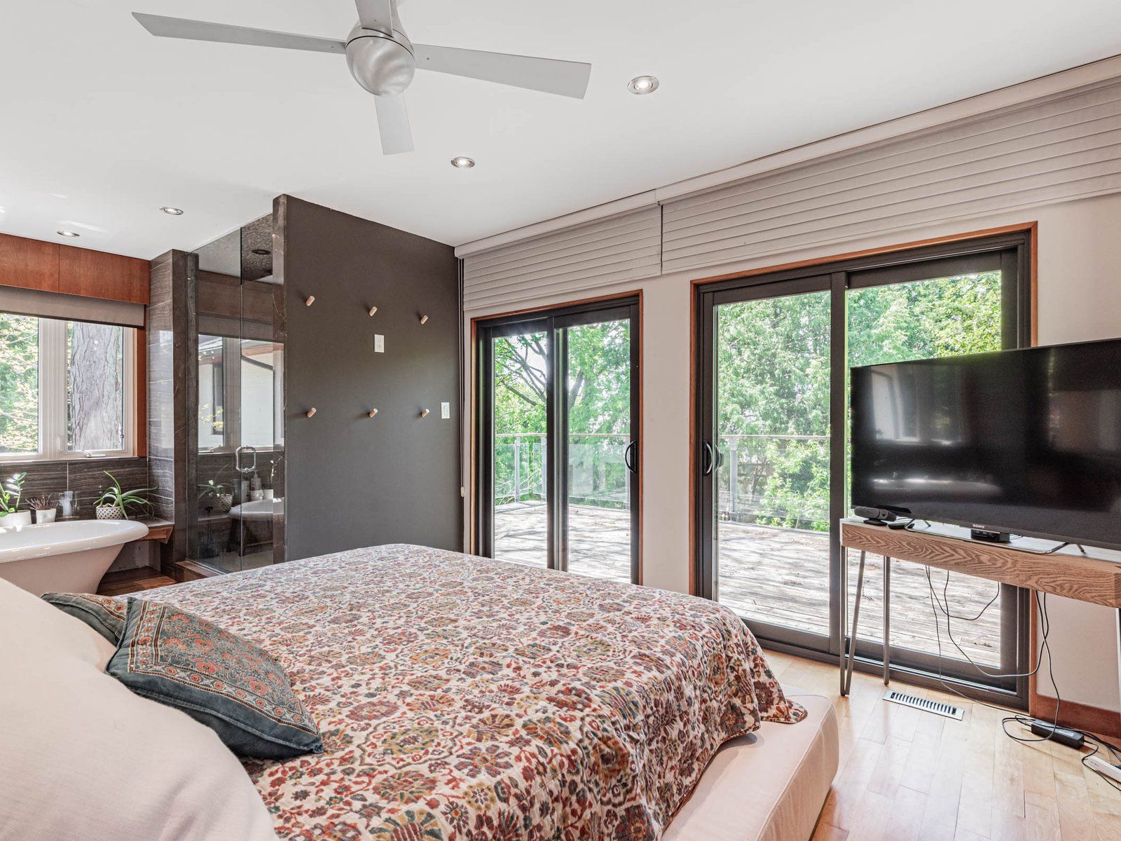 • Private backyard sanctuary with multiple walkouts for relaxation.