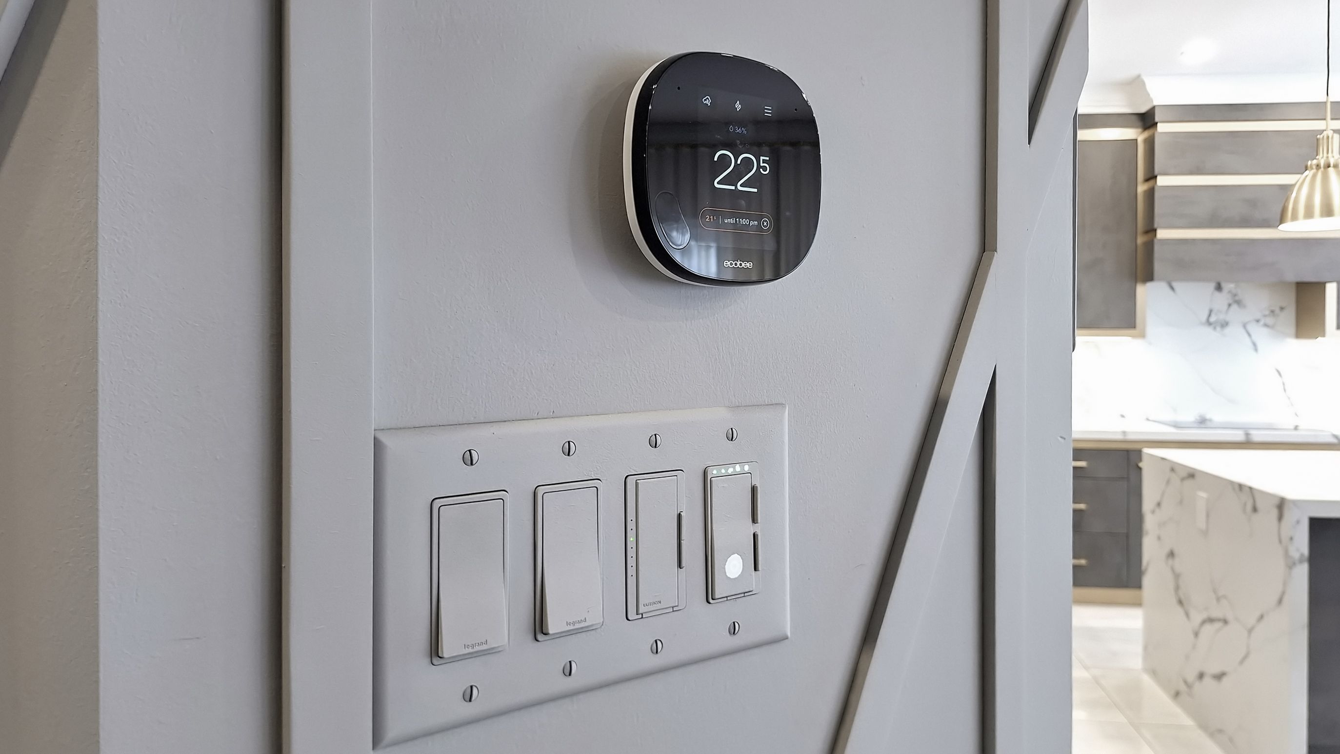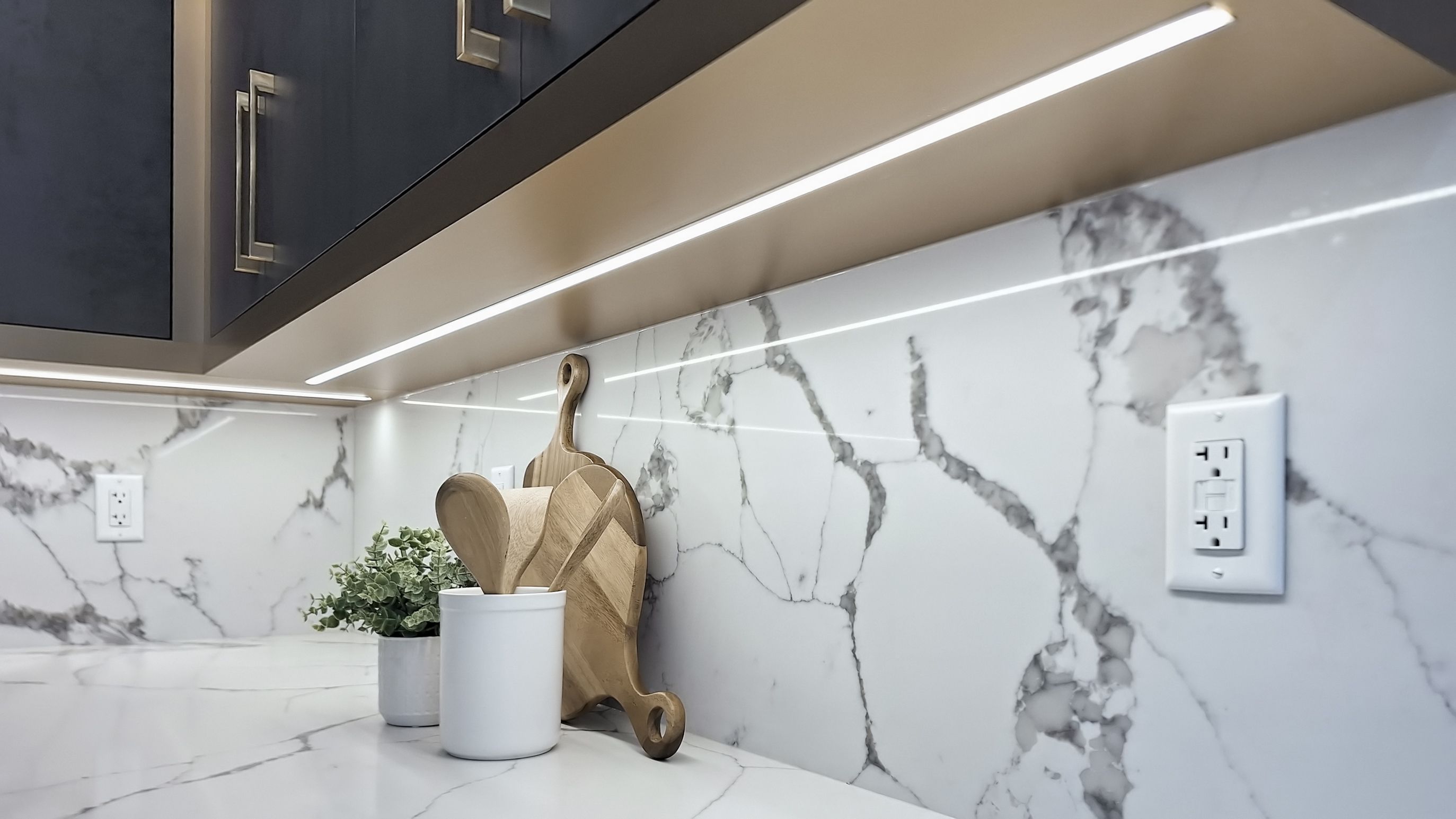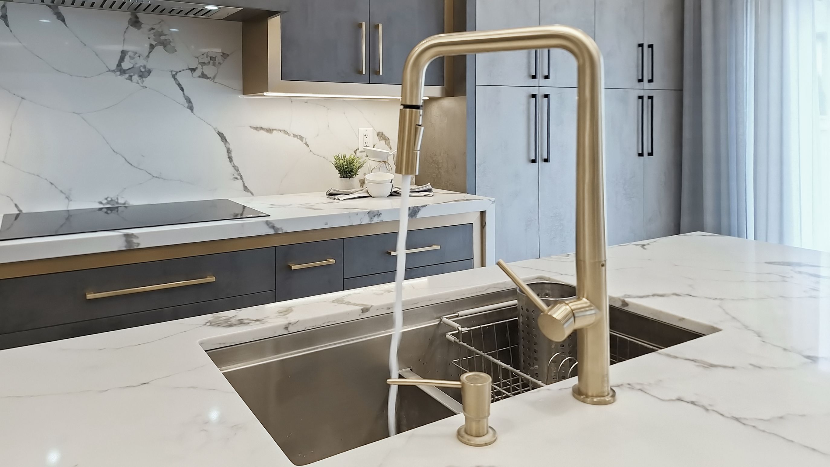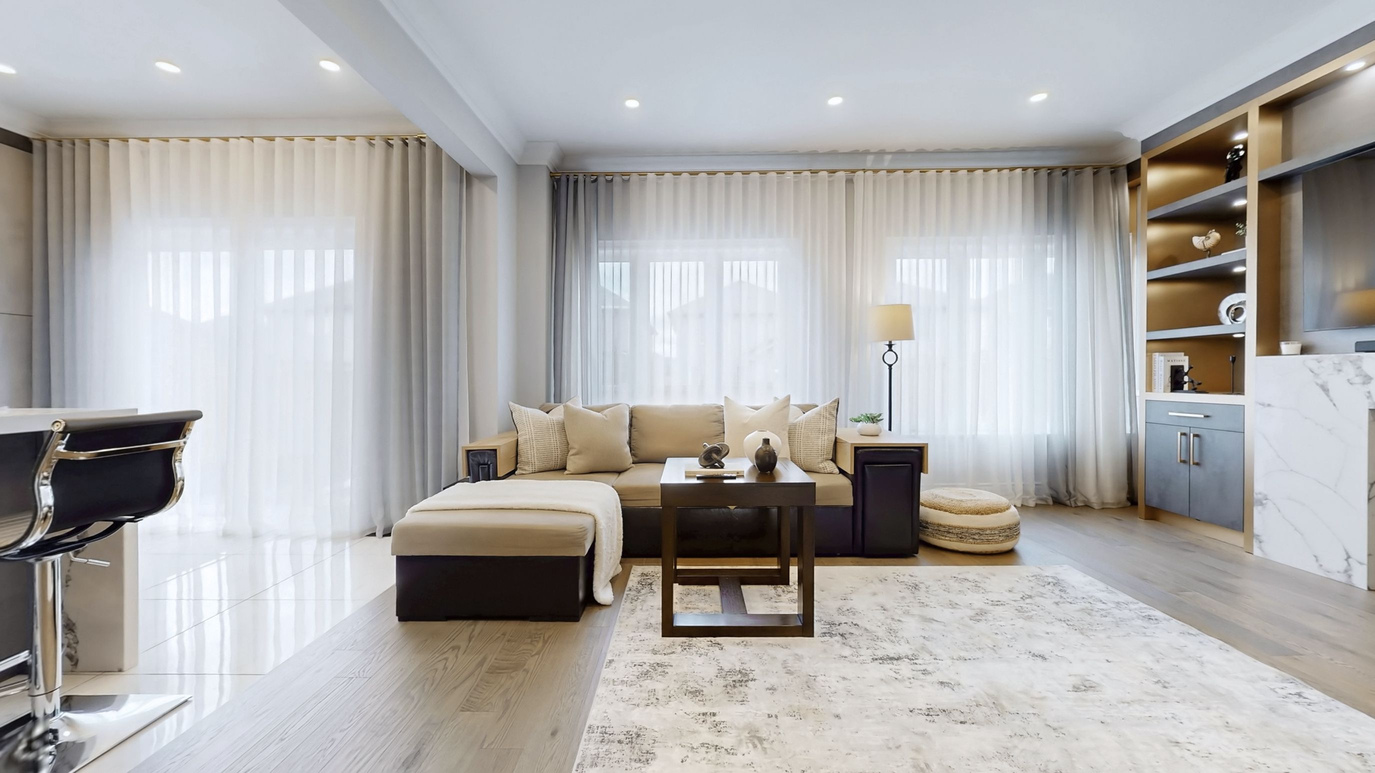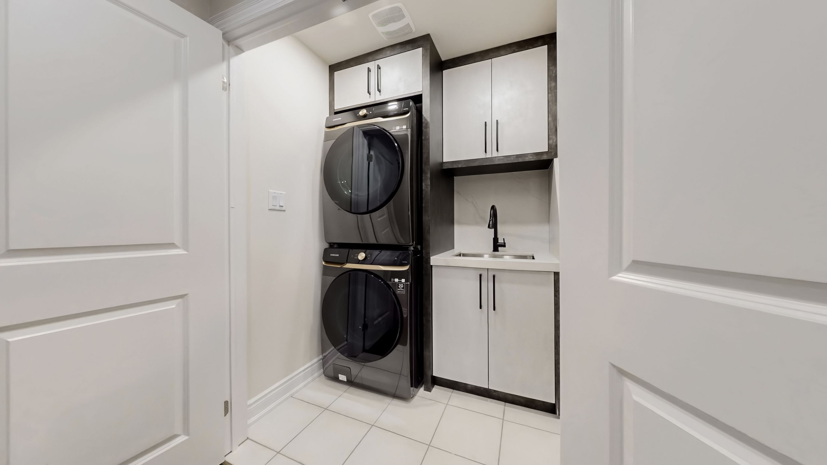 • Chef's kitchen featuring quartz countertops and premium Samsung appliances.