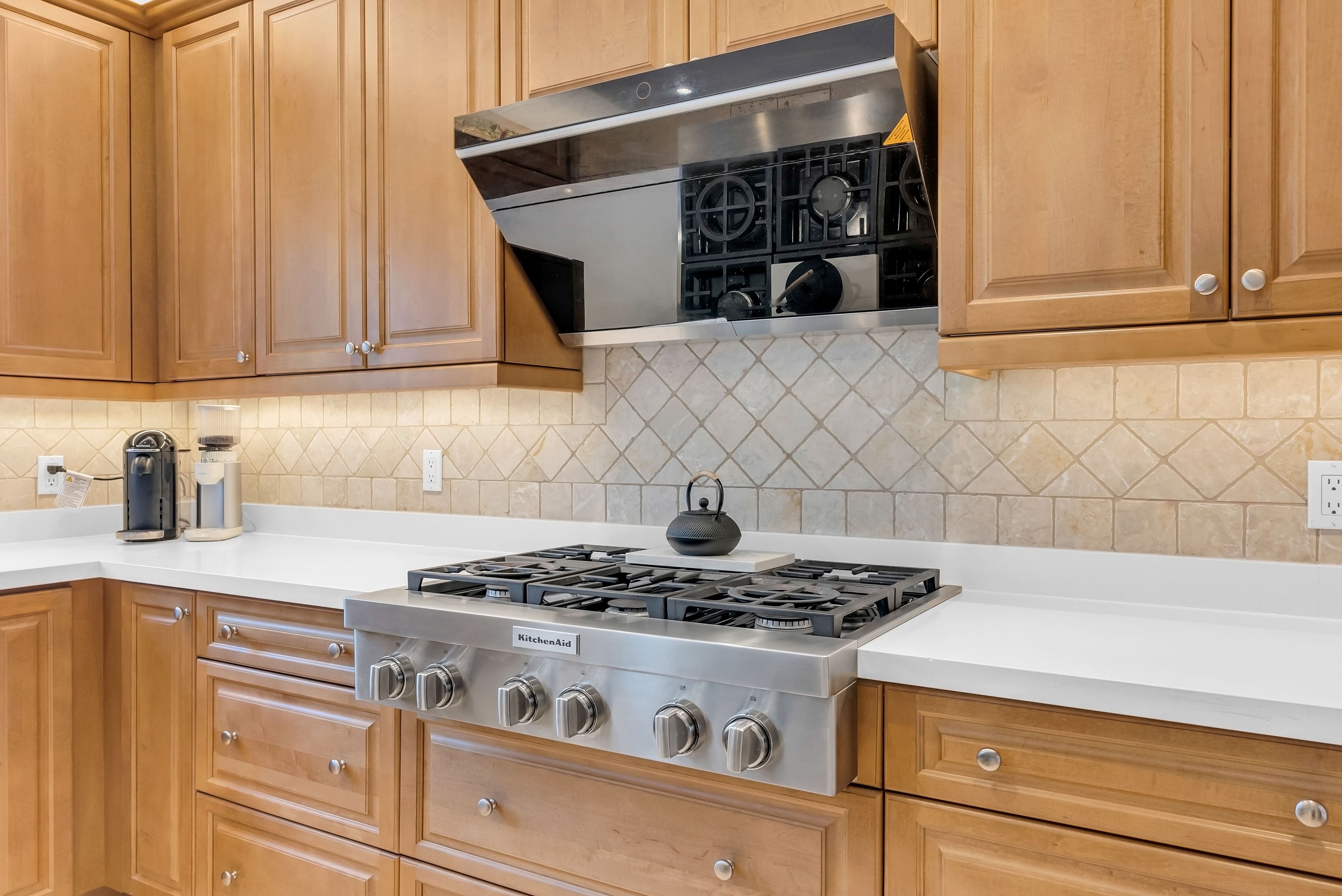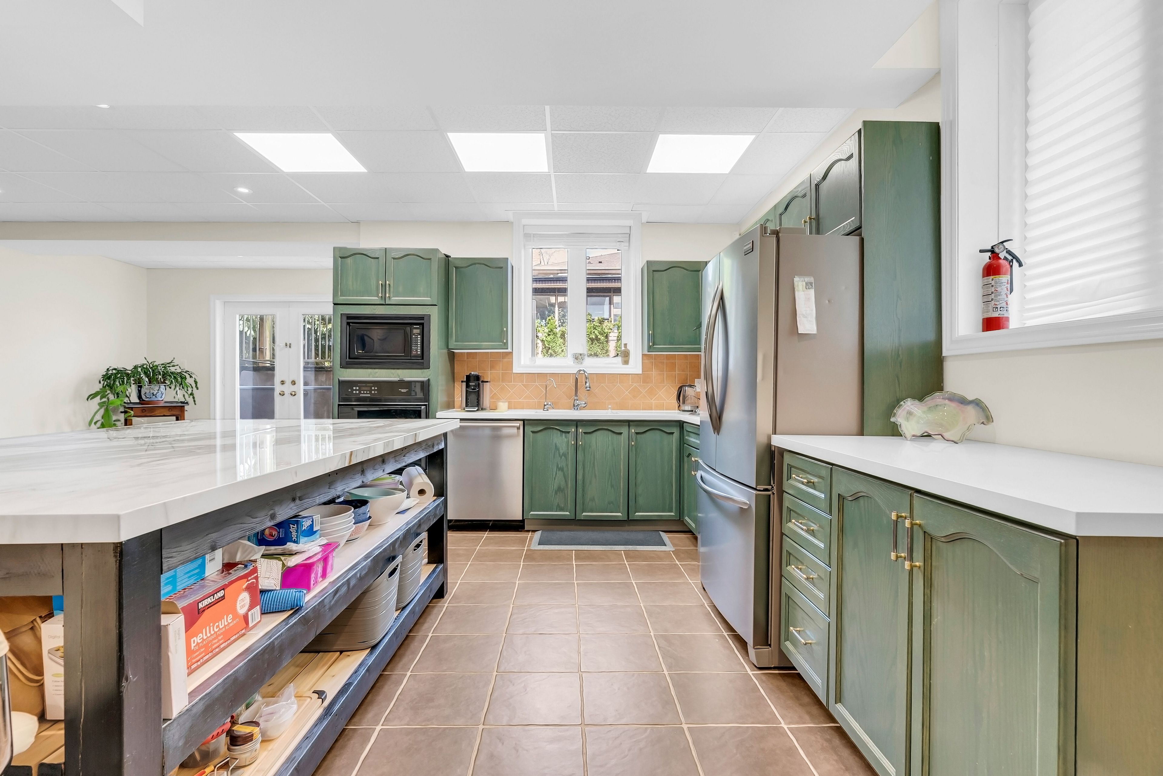 • Gourmet kitchen featuring a quartz island and walkout to a large concrete deck.