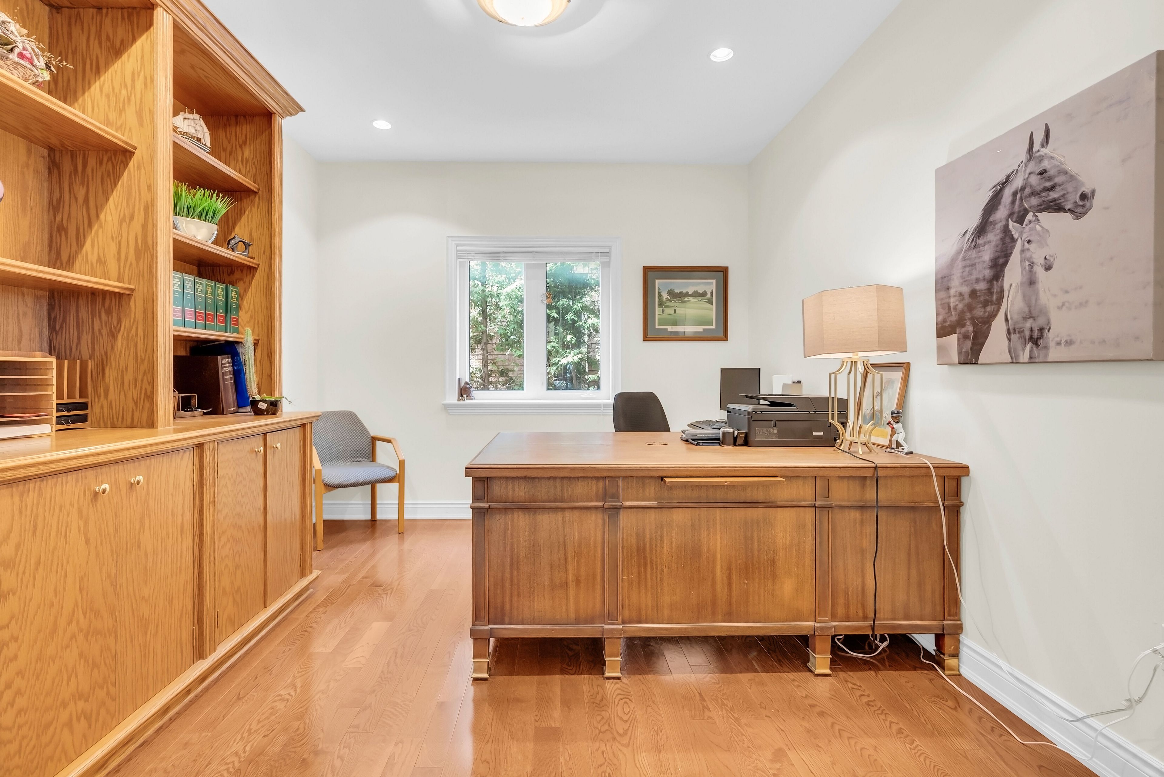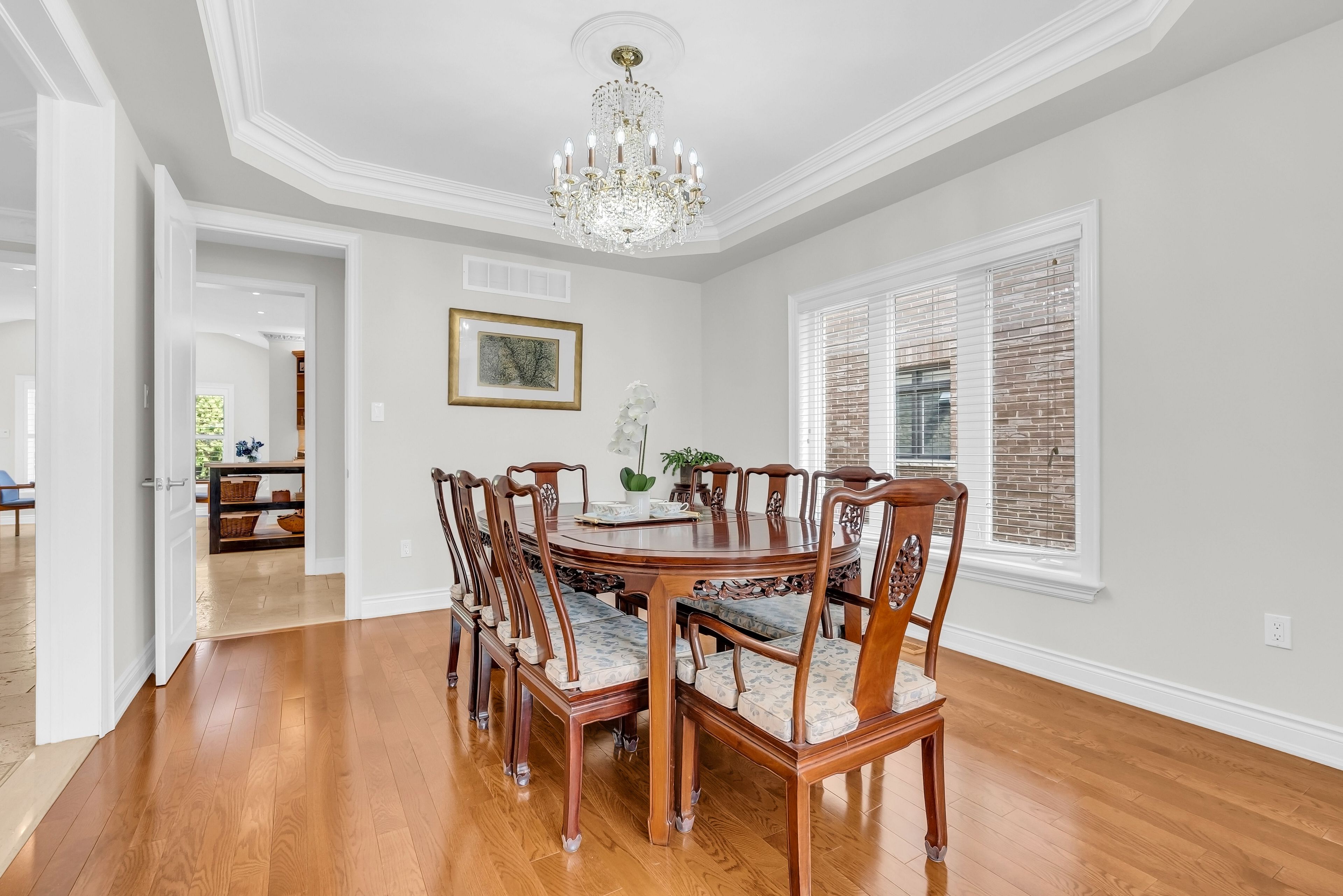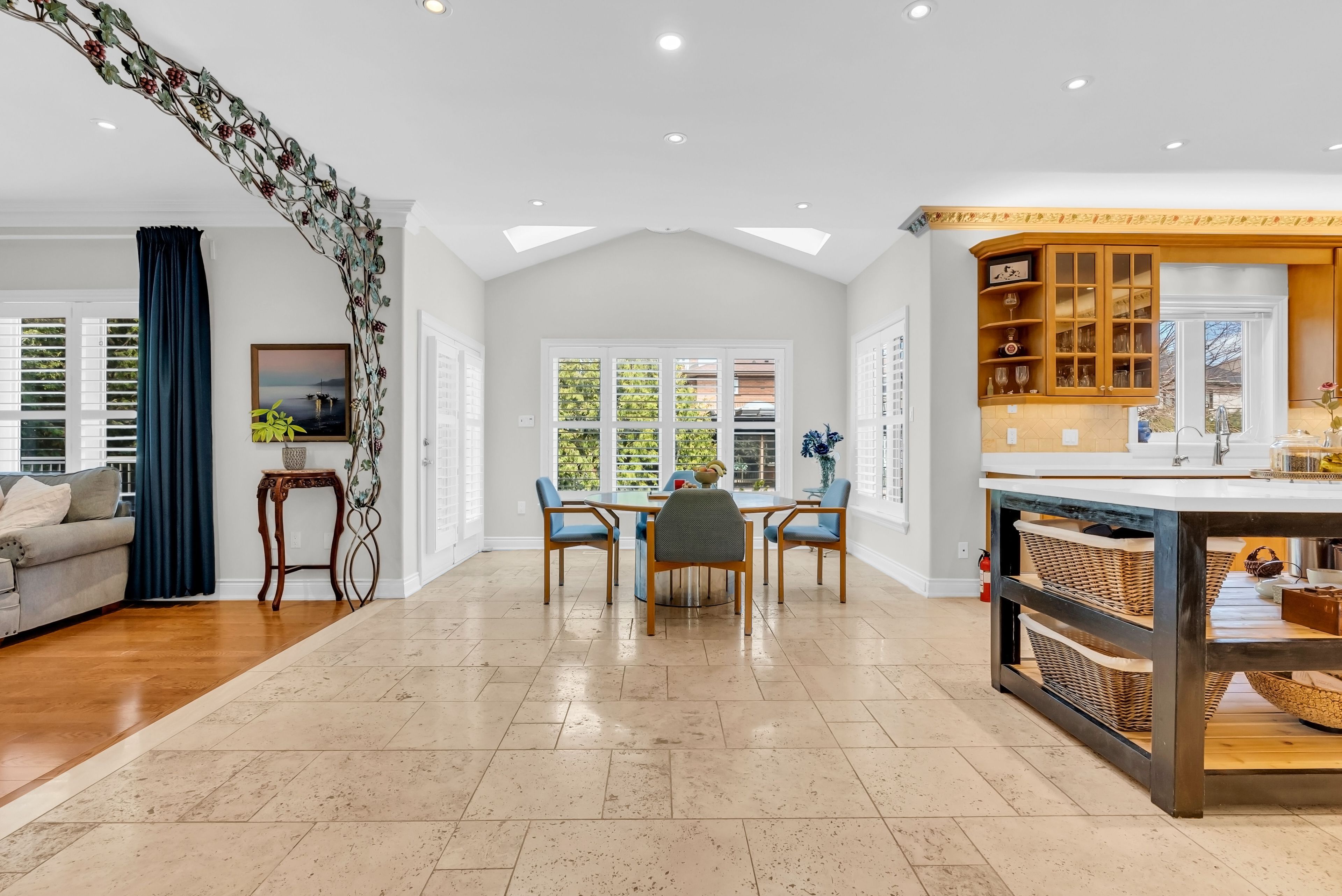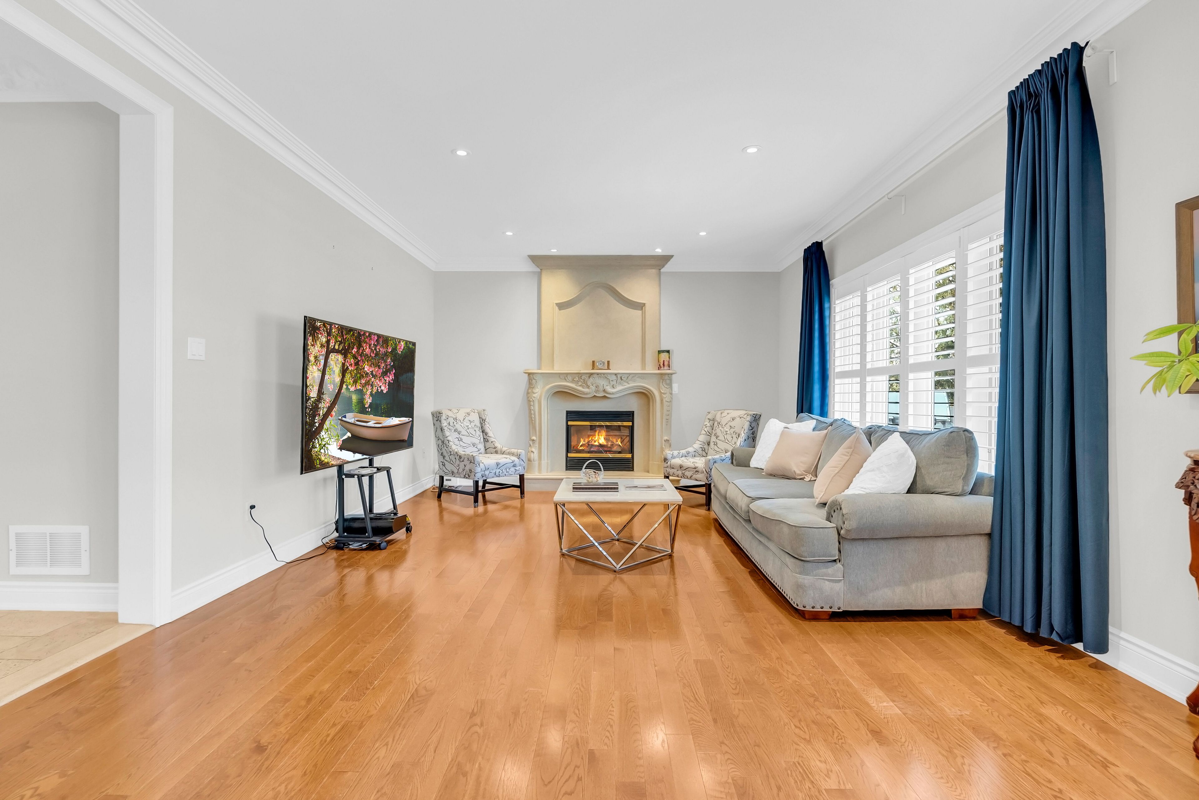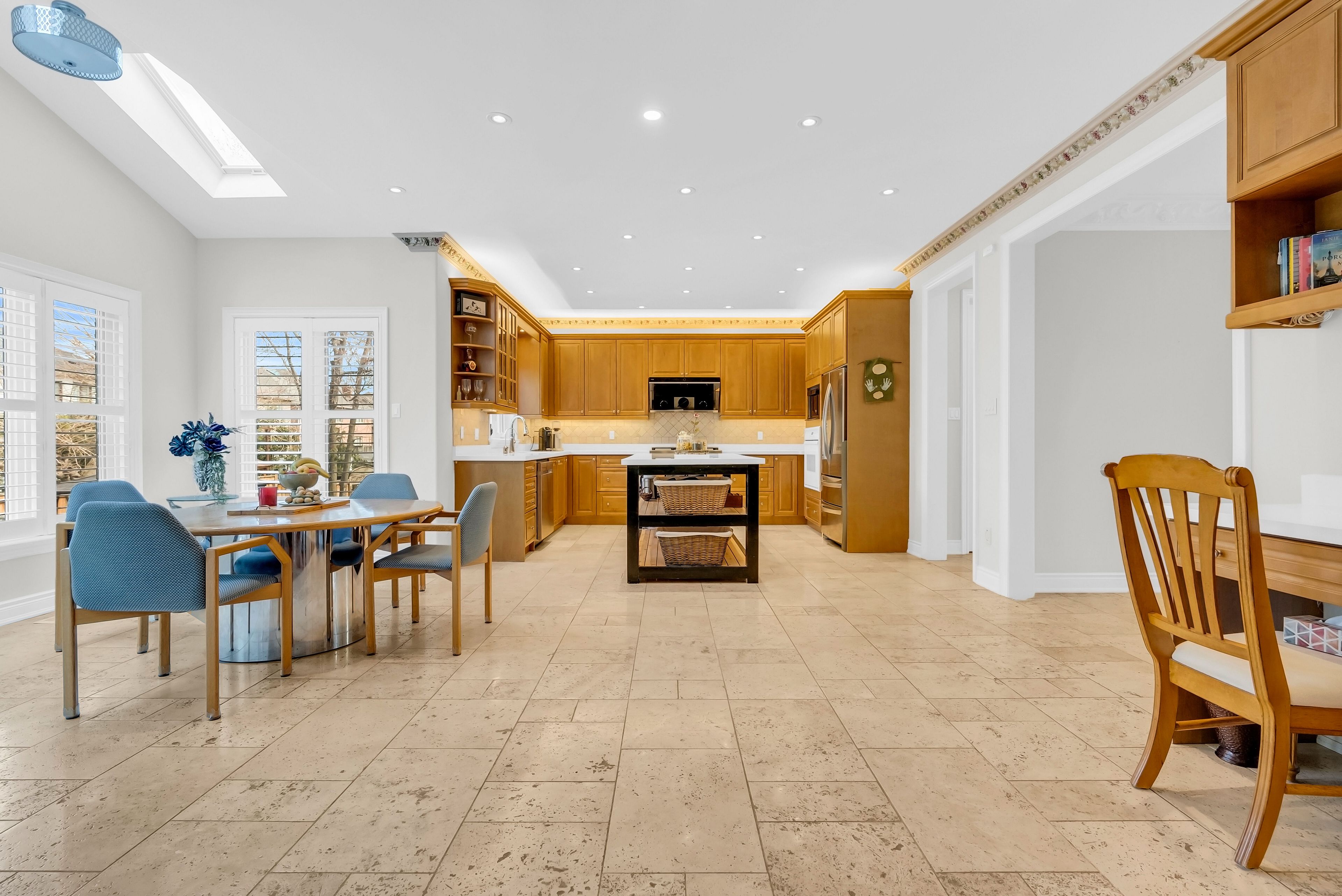 Exceptional custom-built home in prestigious bayview hunt, surrounded by multi-million dollar residences. Offering close to 6,000 sq ft of living space, this meticulously maintained property features 9 ft. Ceilings, crown molding, 3 skylights, smooth ceiling, pot light, travertine tiles, garage doors 1 foot wider than regular size and hardwood flooring throughout, with spacious principal rooms ideal for entertaining. Gourmet kitchen with quartz island, pantry, and breakfast area with walkout to a large concrete deck, open to a cozy family room with fireplace. Main floor office with nearby 3-piece bath ideal for guests or multi-generational living. Upper level offers 5 generous bedrooms and 3 full baths, including a primary retreat with built-in walk-in closet and spa-like ensuite with double sinks, glass shower, and soaker tub. Finished w/o basement with separate access, full kitchen, 2 bedrooms, large rec area with fireplace, 4-piece bath, and laundry rough-in-offering excellent potential for an in-law suite or future apartment. Landscaped yard with stone patio. Close to top schools, parks, shopping, transit and go station.
