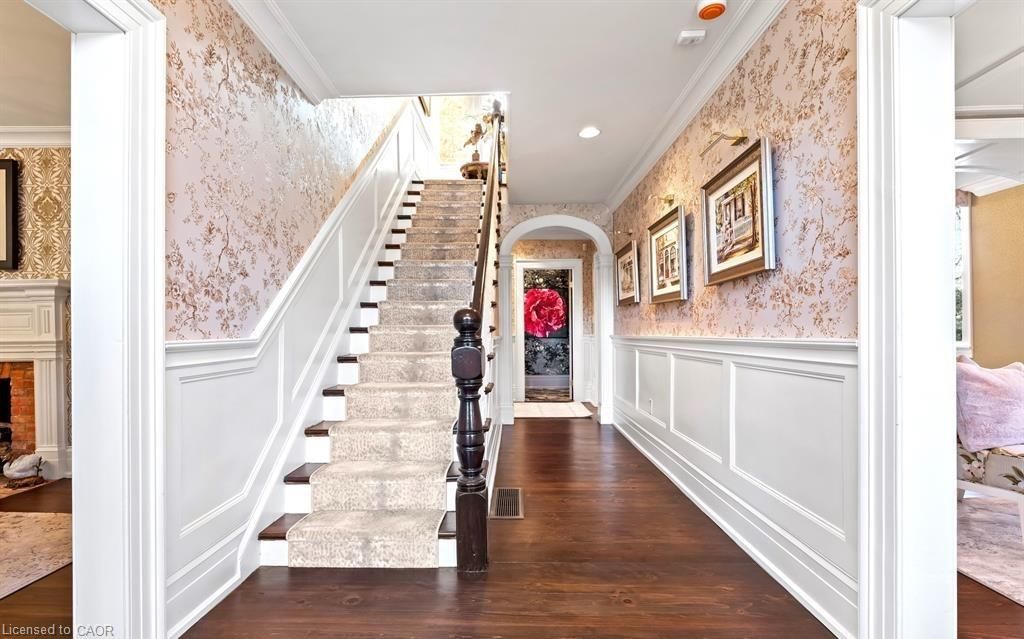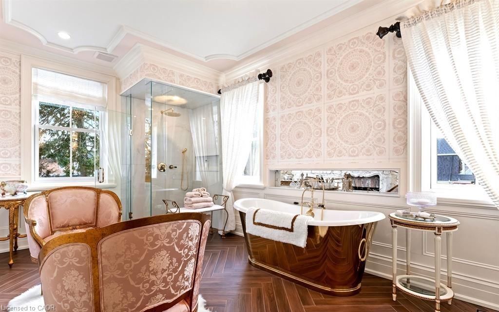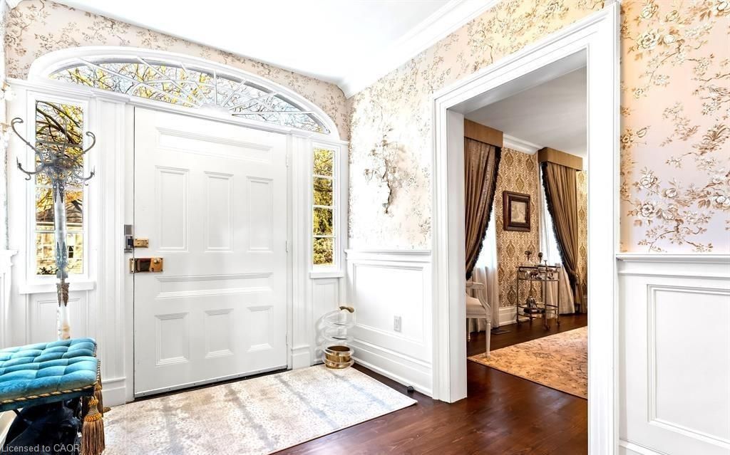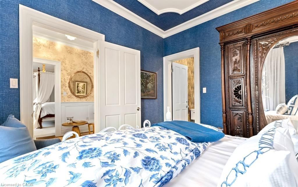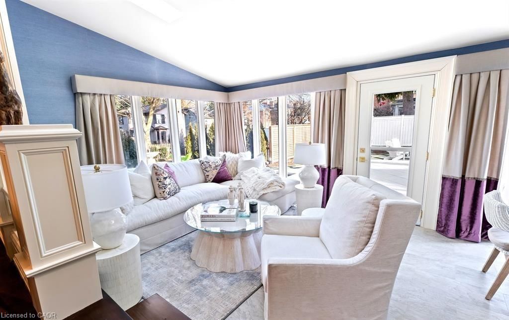 Located in one of the most desirable areas of old town, beautiful marriage of old-world charm and modern upgrades. Walk to iconic queen st. With its boutiques, restaurants and theatres or take a short stroll to the waterfront. Enjoy the serenity of queen's royal park or play a round of golf at canada's oldest golf course. This home showcases stunning decor such as designer light fixtures, custom drapes, valances and luxurious wall coverings. Enter through the antique door into the elegant front entry with gleaming hardwood floors throughout. The formal dining room is sheer opulence with its antique chandelier set in a plaster ceiling medallion, decorative built-in shelving and fireplace with hand-crafted mantle. The grand living room features a beautiful archway with custom millwork set between coffered ceilings with designer brass fixtures, built-in bookcase and buffet with accent mirrored wall. Bright and airy, the kitchen is definitely the heart of the home with 5 stainless steel appliances, center island, quartz countertops, nantucket grey cabinetry, heated floors and cozy fireplace. Spacious family room with its comfortable seating centered around a fireplace with hand-crafted mantle and soaring vaulted ceiling with contemporary bubble chandeliers. A gorgeous sunken sunroom which offers floor-to-ceiling windows and 4 skylights overlooking the jaw-dropping two-tiered yard. Main floor guest retreat with ensuite. The grand victorian staircase features designer runner and custom wainscotting leading to the elegant and spacious landing. Each of the 3 bedrooms have beautiful hardwood flooring, the primary bedroom with private water closet and spa-like ensuite bath with heated herringbone tile, sumptuous soaker tub, walk-in glass rain shower. Second and third bedrooms share a bath with heated marble flooring and custom vanity. A cozy rec-room and 2nd kitchen in the lower level completes this charming home.