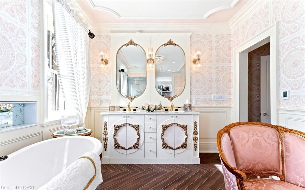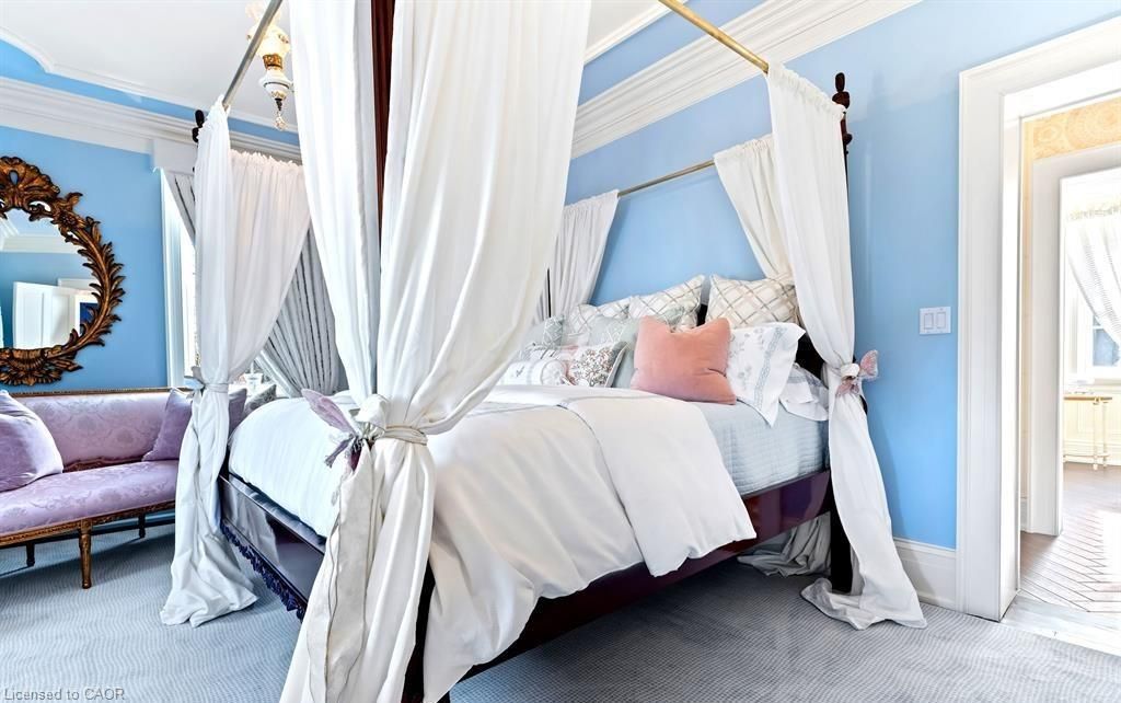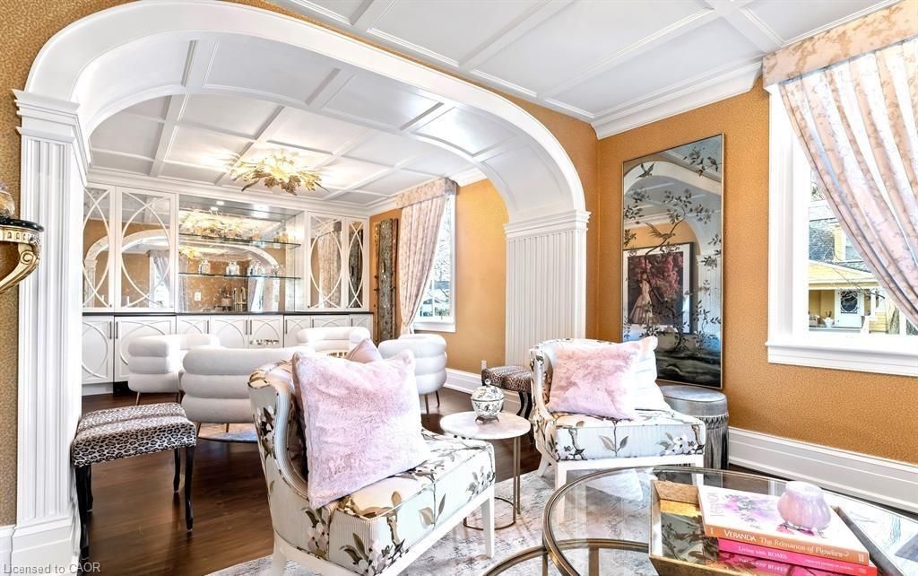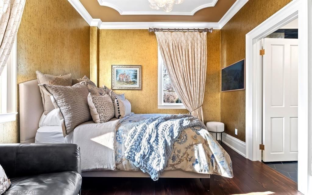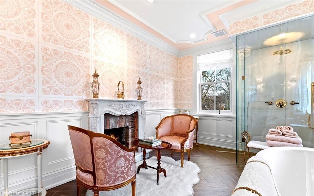 Located in one of the most desirable areas of old town, beautiful marriage of old-world charm and modern upgrades. Walk to iconic queen st. With its boutiques, restaurants and theatres or take a short stroll to the waterfront. Enjoy the serenity of queen's royal park or play a round of golf at canada's oldest golf course. This home showcases stunning decor such as designer light fixtures, custom drapes, valances and luxurious wall coverings. Enter through the antique door into the elegant front entry with gleaming hardwood floors throughout. The formal dining room is sheer opulence with its antique chandelier set in a plaster ceiling medallion, decorative built-in shelving and fireplace with hand-crafted mantle. The grand living room features a beautiful archway with custom millwork set between coffered ceilings with designer brass fixtures, built-in bookcase and buffet with accent mirrored wall. Bright and airy, the kitchen is definitely the heart of the home with 5 stainless steel appliances, center island, quartz countertops, nantucket grey cabinetry, heated floors and cozy fireplace. Spacious family room with its comfortable seating centered around a fireplace with hand-crafted mantle and soaring vaulted ceiling with contemporary bubble chandeliers. A gorgeous sunken sunroom which offers floor-to-ceiling windows and 4 skylights overlooking the jaw-dropping two-tiered yard. Main floor guest retreat with ensuite. The grand victorian staircase features designer runner and custom wainscotting leading to the elegant and spacious landing. Each of the 3 bedrooms have beautiful hardwood flooring, the primary bedroom with private water closet and spa-like ensuite bath with heated herringbone tile, sumptuous soaker tub, walk-in glass rain shower. Second and third bedrooms share a bath with heated marble flooring and custom vanity. A cozy rec-room and 2nd kitchen in the lower level completes this charming home.
