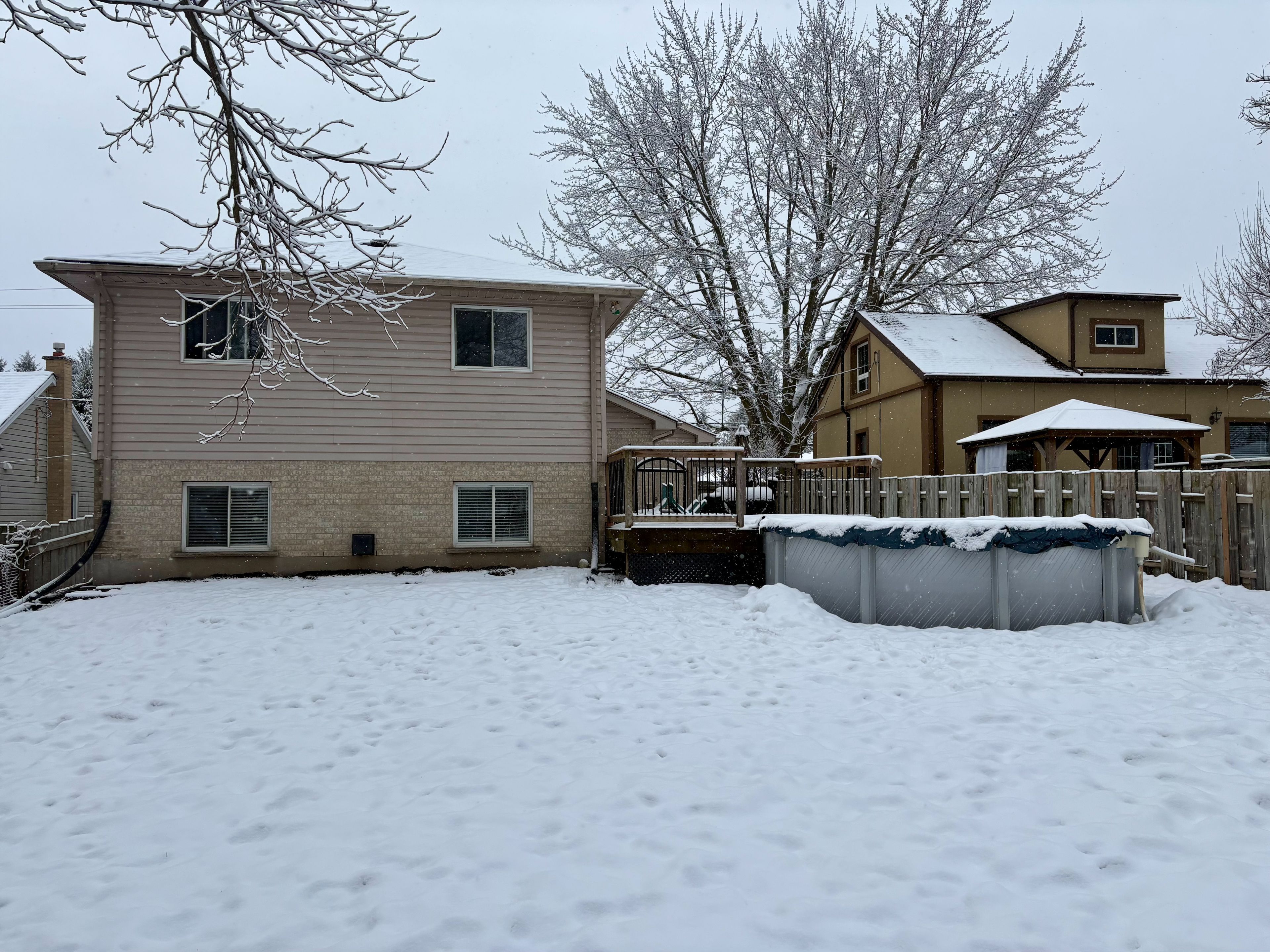 • Large deck, fenced yard, and an above-ground pool outdoors.