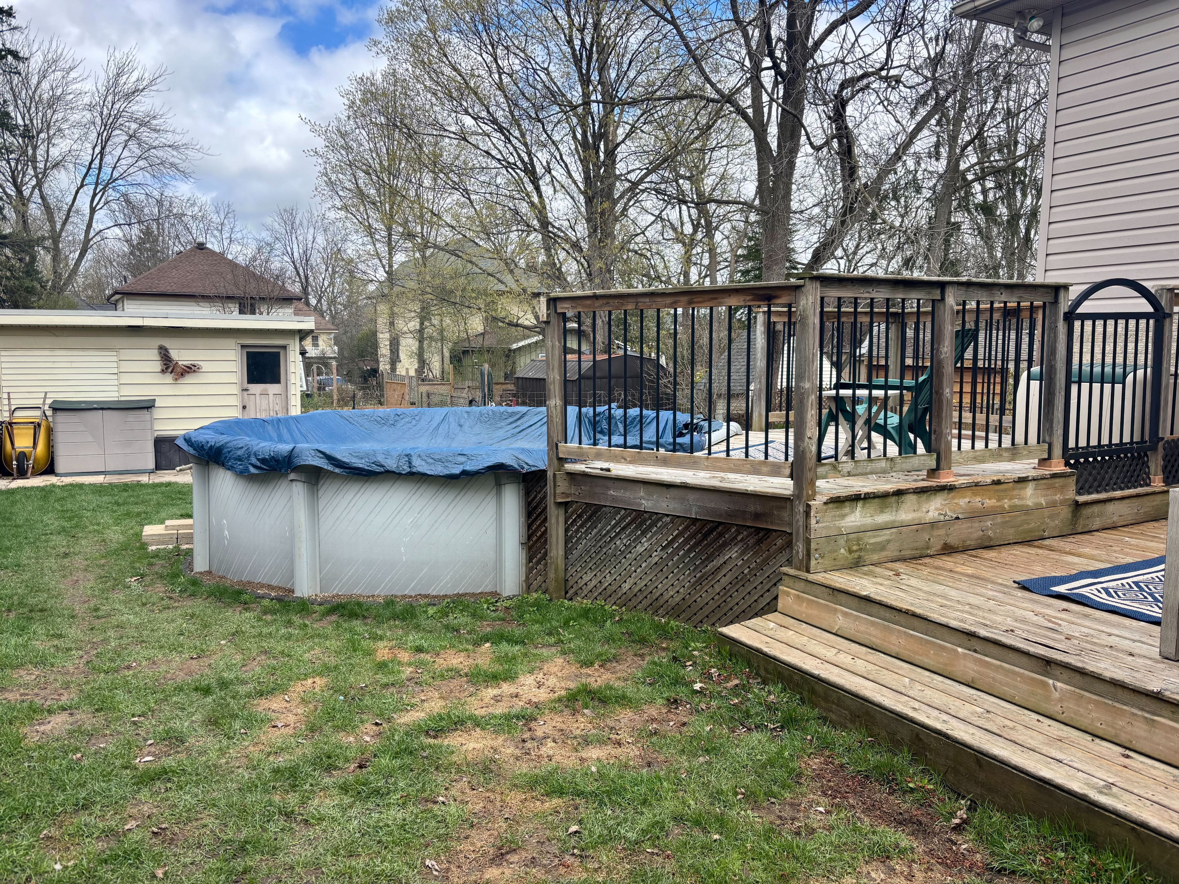 • Large backyard deck, fully fenced yard, and an above-ground pool for outdoor fun.