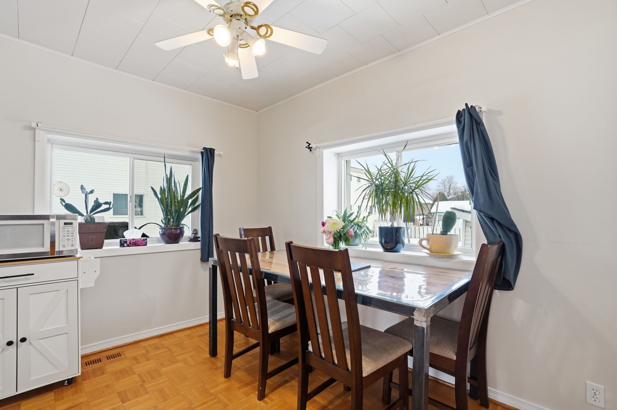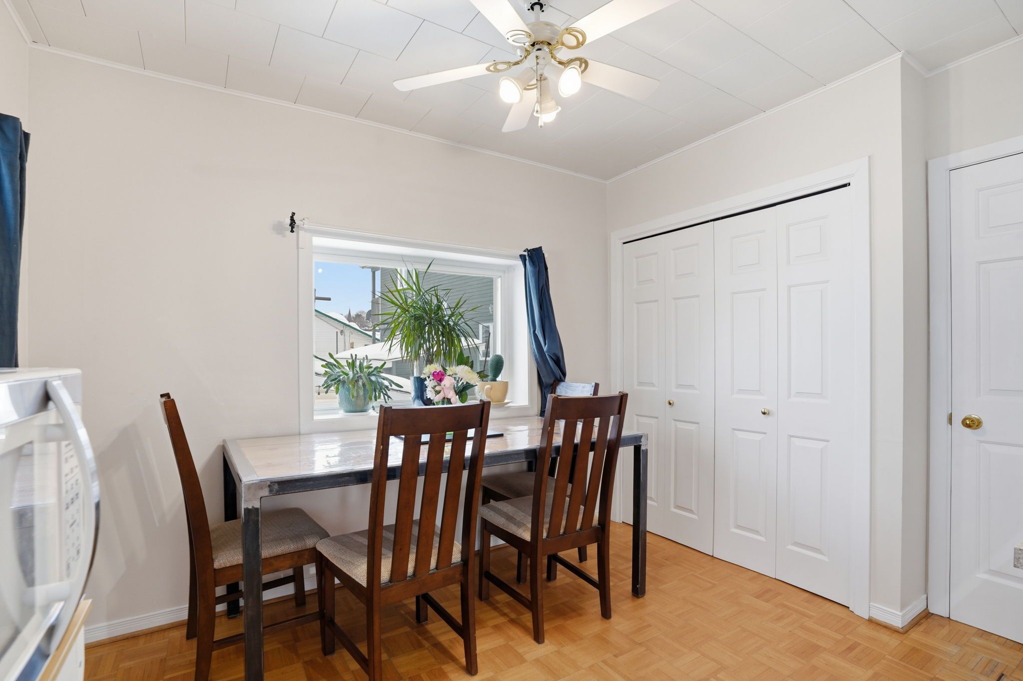 Good old two storey four bedroom home that doesn-t look its age. Solid and straight! Experience the perfect blend of space, comfort and peace of mind. This beautiful maintained older home has been cherished by it's owner, and it shows in every detail. From the warmth of the hardwood floors, shiny parquet floors, the rythmic sound of rain on the durable tin roof, you won't find a better deal in town. The heart of the home has a layout designed for both quiet mornings and grand celebrations. The spacious living room flows into a dedicated dining room. The kitchen is large with a spacious breakfast nook that also hides the laundry closet. 2 full bathrooms one on each floor. Rest easy with the entire house has added insulation 2025. The 2018 efficient natural gas furnace connected to smart thermostat, paired with upstairs windows replaced in 2021,(except primary bed) and all upstairs walls have new blown in insulation as well as the attic has extra insulation and added extra electrical outlets 2012 in bedrooms. The basement is fonctional as well received some care, with 4 support posts, it's interior walls reinsulated, it's an easy access to your organized storage space. Forget the struggle of parking, this property has abundance parking perfect for multi vehicle families, or even a boat, rv. Heating and hydro +/- $2000 per year. Heating ducts for 2nd floor are installed in the attic.