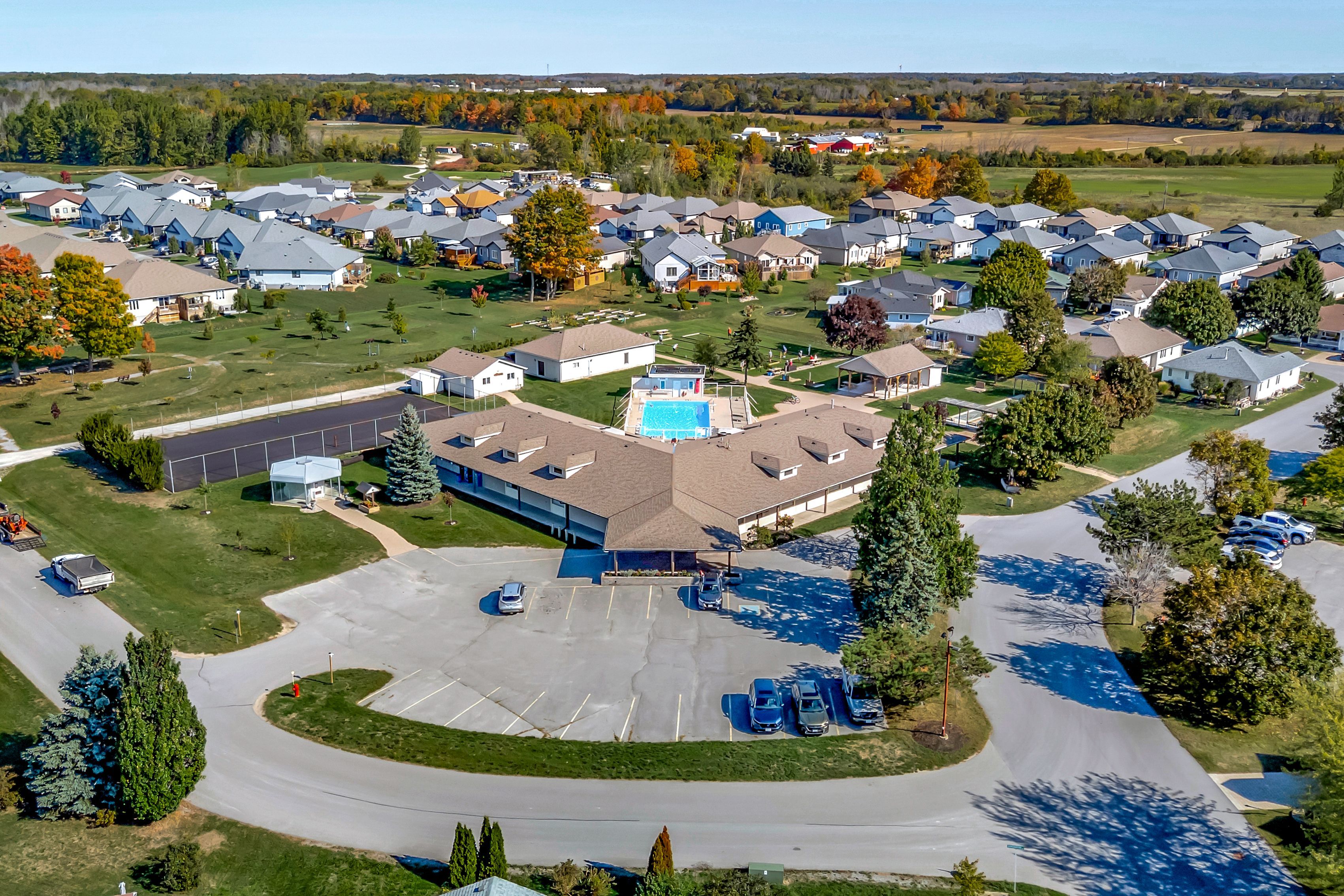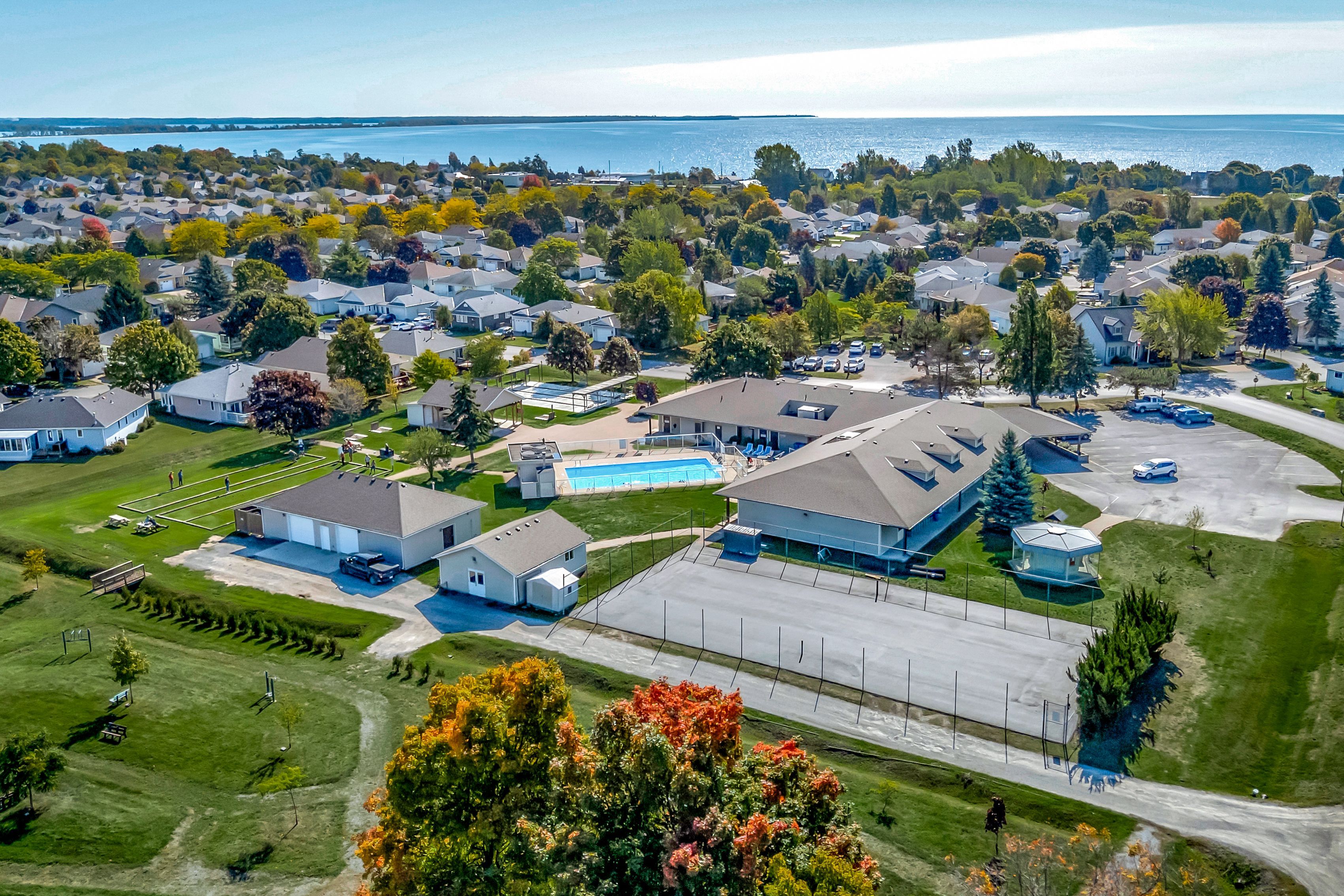 • Community amenities include pool, lawn bowling, and social events.