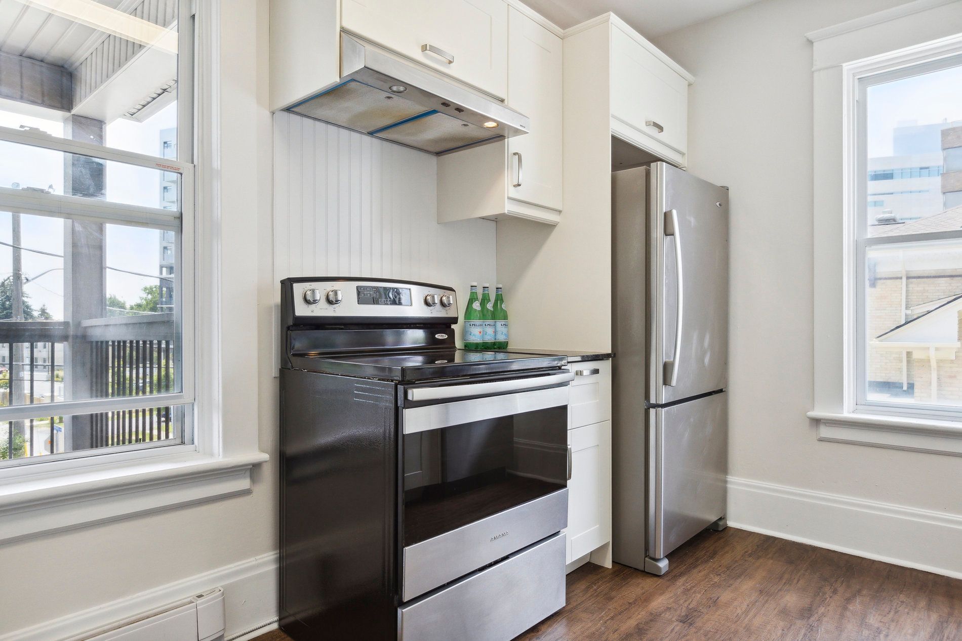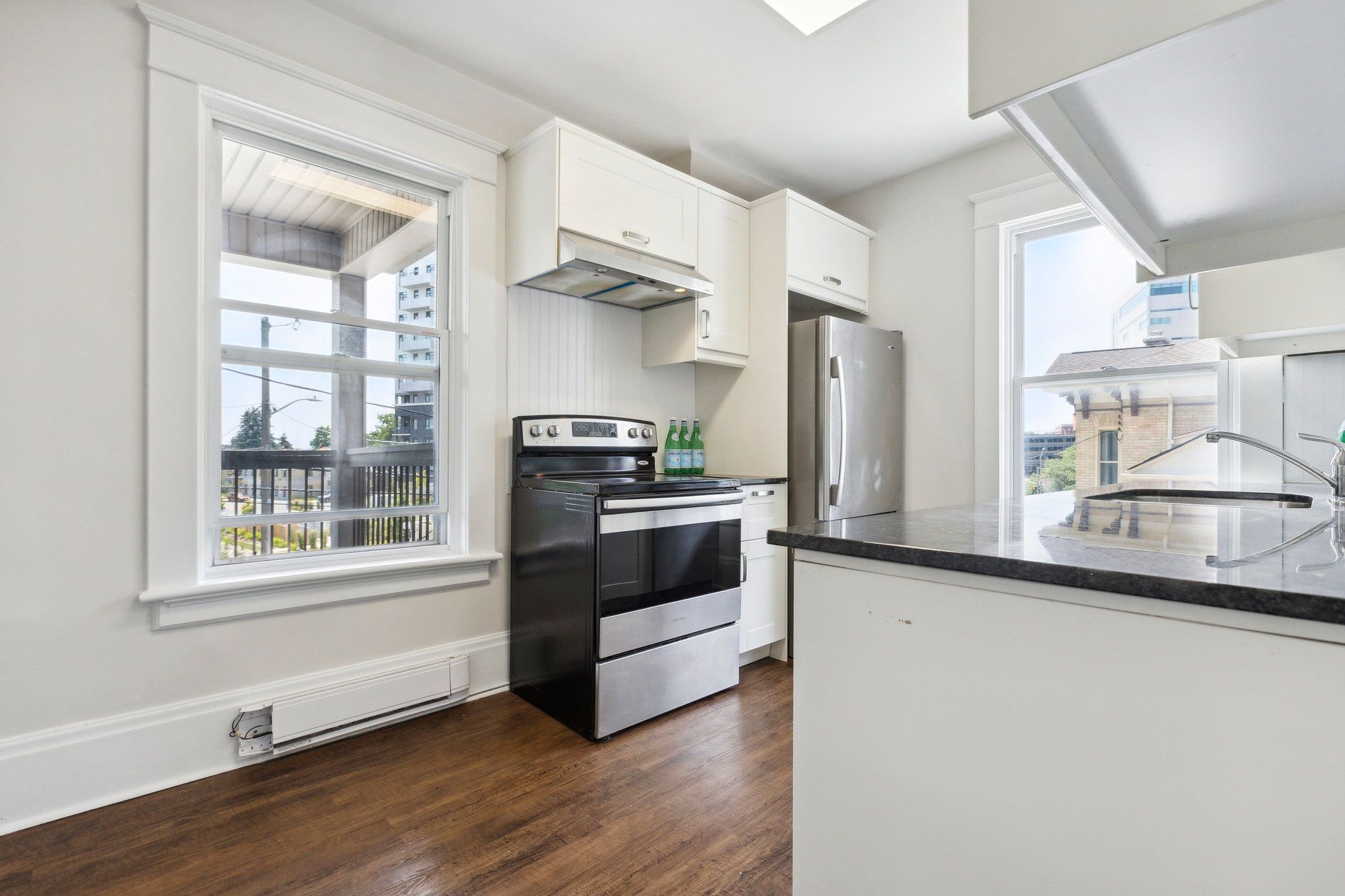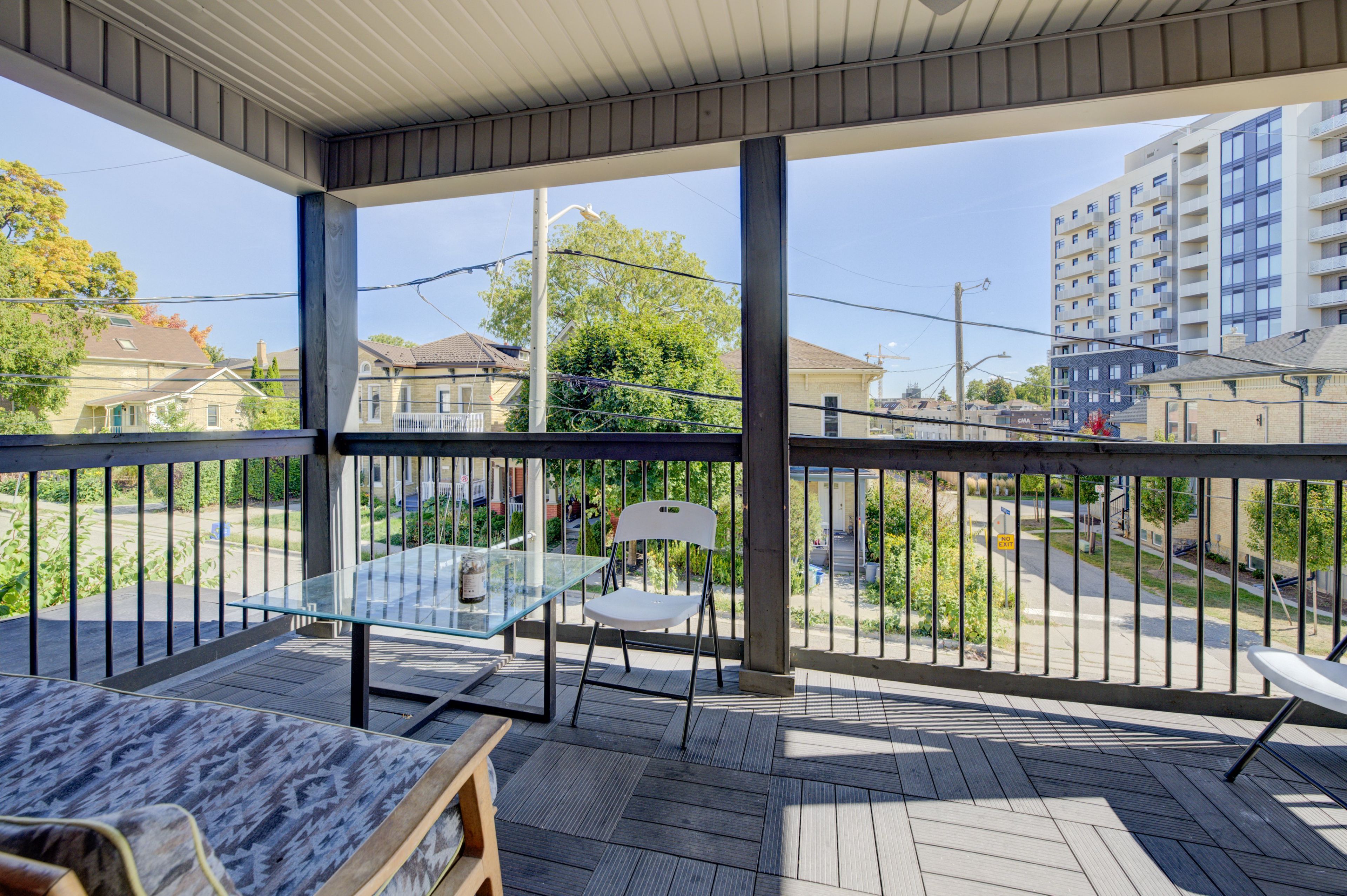 Turnkey legal duplex with prime downtown kitchener location. Welcome to this exceptional income-producing duplex in the sought-after east ward, just steps from the thriving downtown kitchener core. This beautifully renovated century home has been fully modernized from top to bottom while preserving its character, offering the perfect balance of investment and lifestyle opportunity. Extensive updates include: architectural roof (2016), all new windows (2016), separate hydro and gas meters (2016), and high-efficiency heat pumps with ductless ac in each unit (2016). Both units feature fully renovated kitchens and bathrooms with granite countertops, luxury vinyl plank flooring, private covered composite patios with ceiling fans, individual hot water heaters, and dedicated storage lockers. Each also enjoys its own parking space. The location is unmatched-within walking distance to the go station, lrt, u of w school of pharmacy, and conestoga college downtown campus. Just steps from market square, the public library, vibrant nightlife, and some of the city's most exceptional cuisines, this property offers the best of urban living with unbeatable convenience. This is a true turnkey investment-low maintenance, with excellent tenants already in place. The upper unit will be vacant at the end of december, giving new owners the option to move in while enjoying a mortgage-helper income stream from the other unit. Aaa property in one of kitchener's most desirable neighborhoods-don't miss this opportunity.