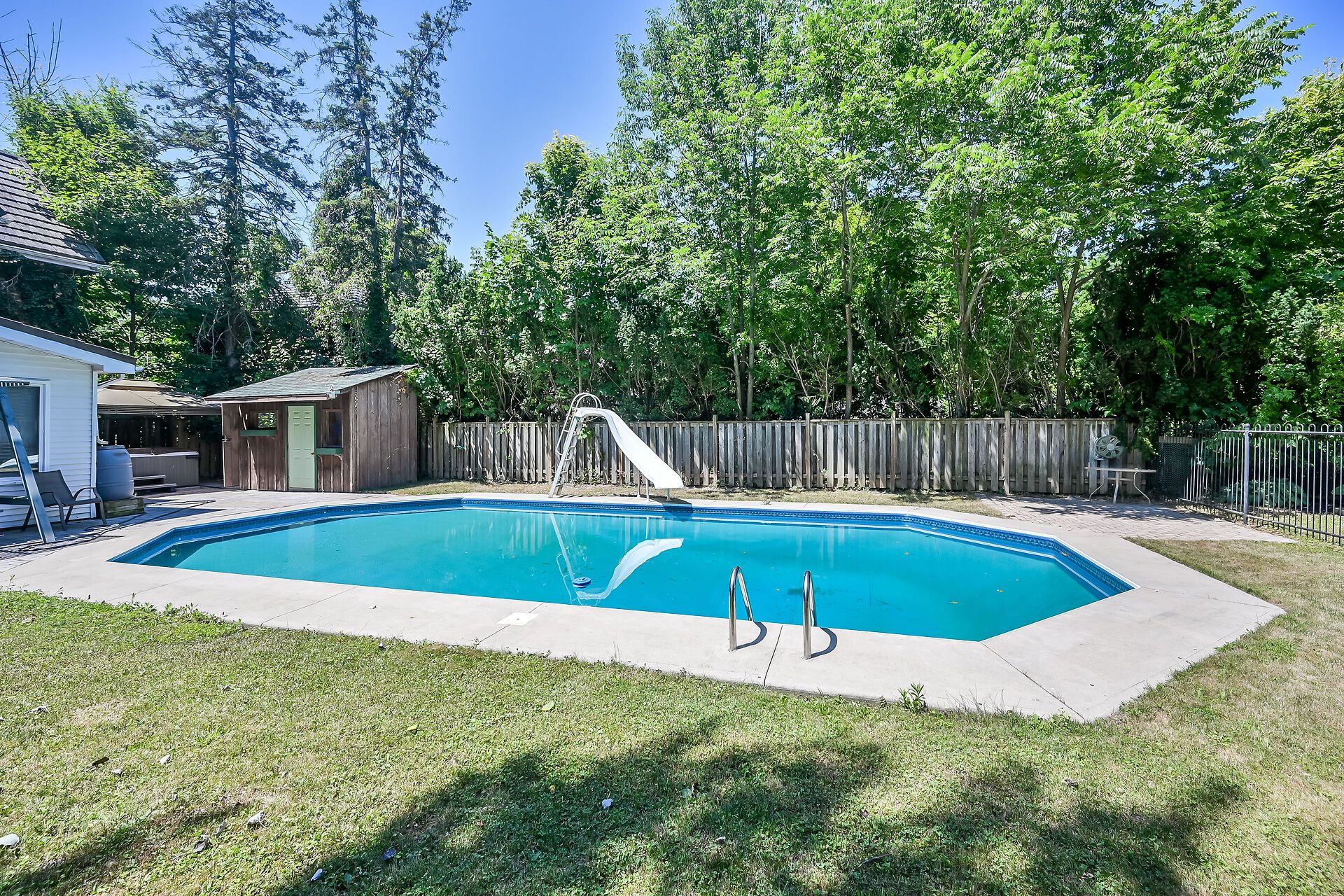 Spacious century home with huge backyard & tons of potential! This 2. 5-storey all-brick century home has loads of original character and plenty of space to grow, with 5+1 bedrooms and a ton of opportunity to make it your own. Sitting on an extra-deep 74 x 305 ft. Lot, the property includes a 24 x 32 ft. Detached double garage with a workshop, plus a big backyard with an inground pool, hot tub, and plenty of room to enjoy the outdoors. You're just a quick walk to downtown caledonia, steps from centennial elementary school, and a short walk to kinsmen park where you'll find a splash pad, outdoor pool, sports fields, and the beautiful grand river. Inside, the main floor features large living and dining room with hardwood floors and beautiful trim. The eat-in kitchen features stainless steel appliances, and at the back of the house you'll find a mudroom with powder room and big pantry closet. Doors off of the mudroom lead out to the back yard retreat with a fully fenced pool (brand new filter just installed), a hot tub under a gazebo, and loads of green space. Upstairs has three bedrooms, one with a laundry facilities, and a nicely updated 3-piece bathroom with a walk-in glass shower. The top floor adds three more bedrooms and a second full bath - great for big families or guests. Additional info: furnace/ac are about 12 years old, roof (12 yrs with 50 yr warranty), garage was built in 2009 with a new roof in 2012. Pool liner is 1 year old, pump is 5 years old. Hot tub is 14 years old and still going strong. The electrical system was recently inspected and certified by esa in 2025. If you're looking for space, charm, and a chance to make a place truly your own, this could be the one!