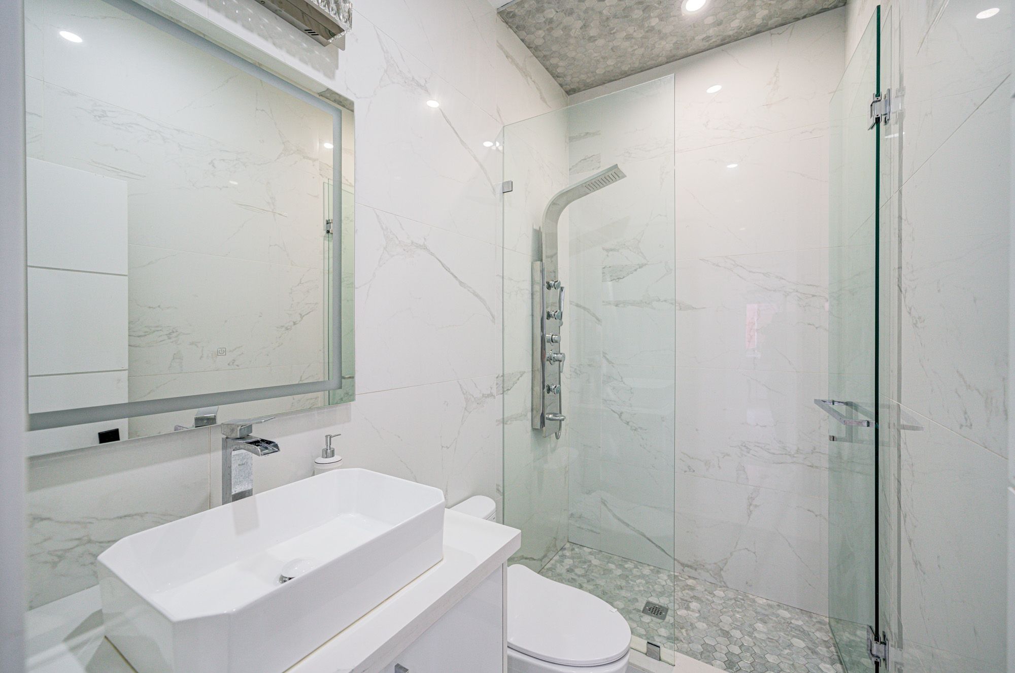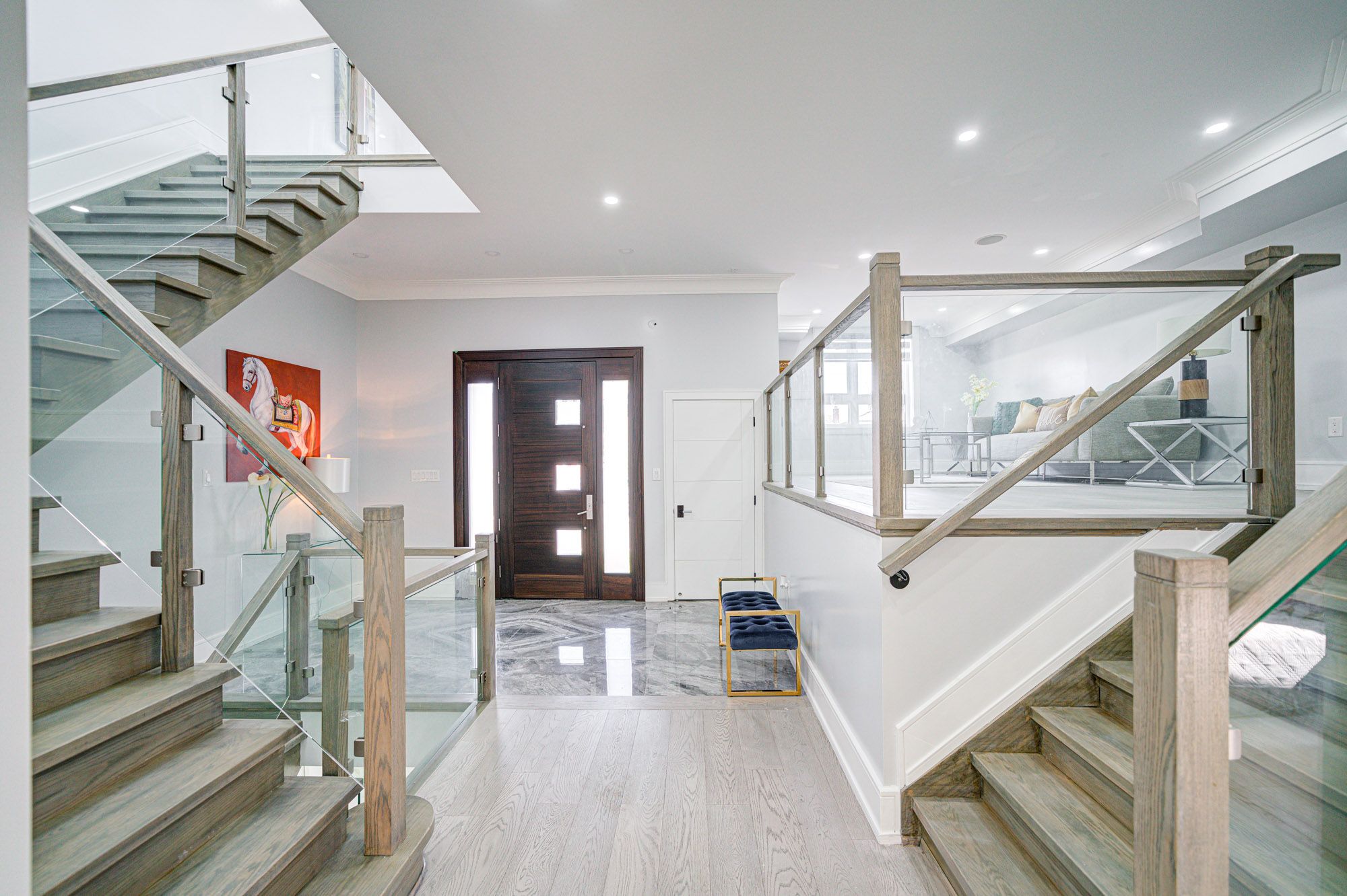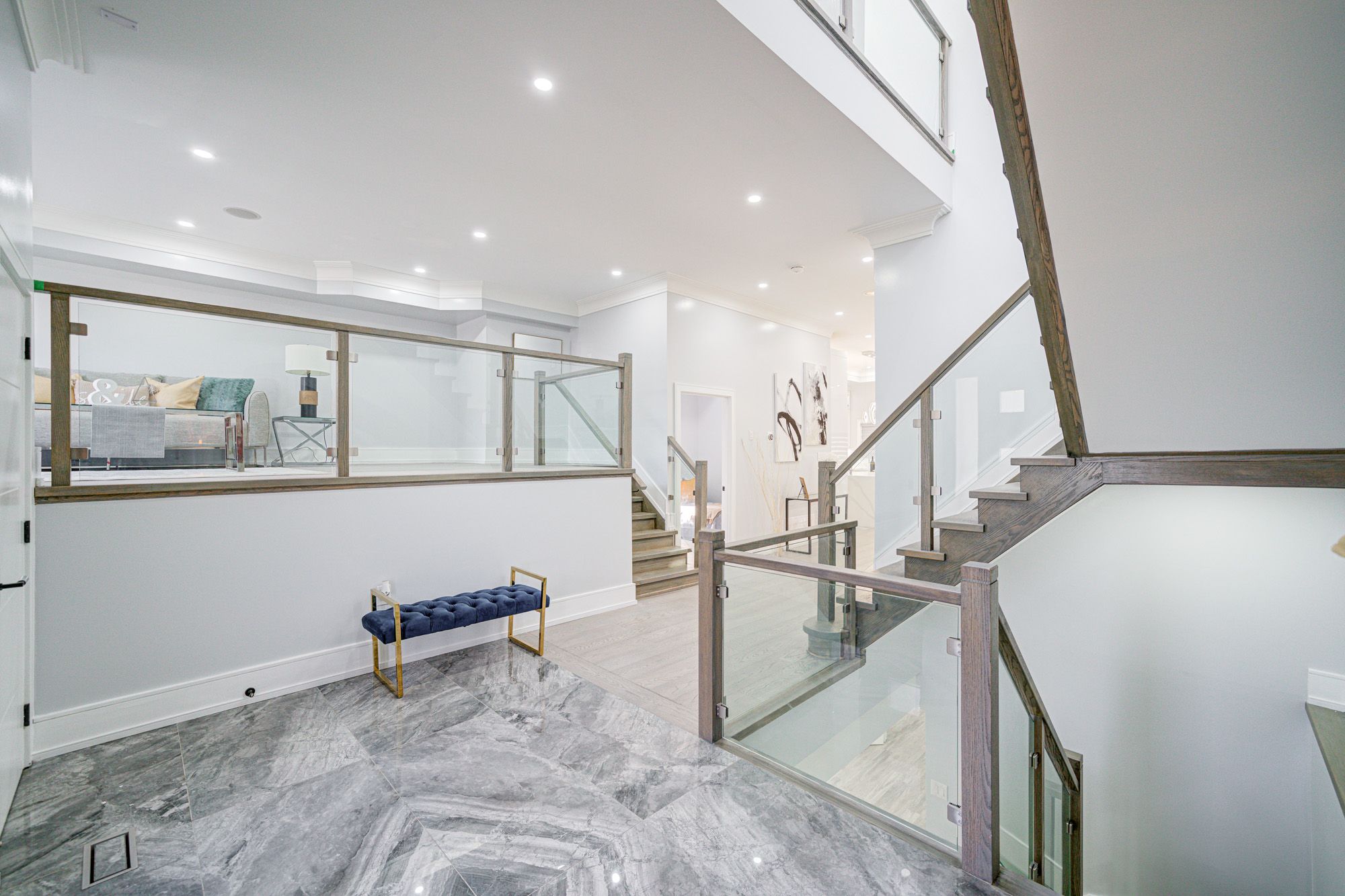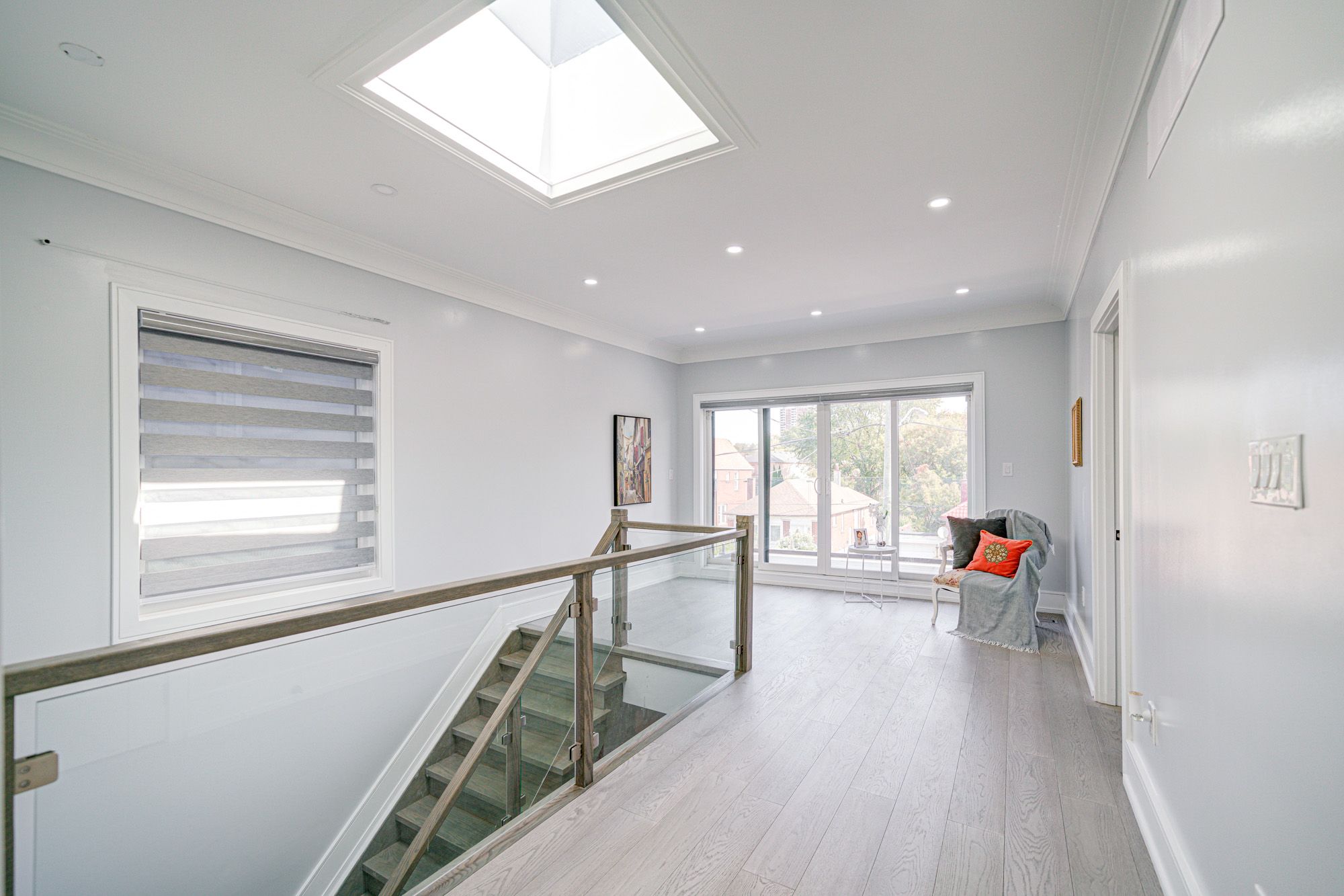 Welcome to 94 wanstead avenue in scarborough, a stunning 4-year-old custom-built luxury home offering over 3,265 sq. Ft. Of above-grade living space plus a 1,418 sq. Ft. Finished walkout basement apartment, featuring 5 spacious bedrooms and 6 bathrooms where every bedroom comes with its own bathroom. The main floor includes a versatile bedroom/office/den with a 3-piece bath, a formal living room, a warm and inviting family room, and an open-concept chefs kitchen equipped with a sub-zero built-in refrigerator, built-in oven and microwave, stainless steel gas range and rangehood, dishwasher, large island with breakfast bar, custom cabinetry, and modern light fixtures, making it ideal for both entertaining and everyday living. Thoughtful details such as wainscoting, coffered ceilings, an elegant staircase with iron pickets, abundant pot lights, skylights, and oversized windows throughout ensure natural light fills the home at all times, highlighting its refined finishes. The luxurious primary suite offers a fully organized walk-in closet and a spa-inspired 6-piece ensuite with a freestanding soaker tub, large glass-enclosed shower, and dual vanities, while the second floor provides access to a walk-out balcony perfect for morning coffee or evening relaxation. The professionally finished walkout basement apartment, with its own kitchen, living space, bedrooms, and private walkout entrance, is ideal for extended family, in-laws, or rental income. Additional features include hardwood flooring throughout, high ceilings, upper-level laundry with cabinetry and sink, energy-efficient windows, a beautifully landscaped exterior, a single-car garage, and a large deck overlooking the backyard. Perfectly situated in a family-friendly neighborhood close to schools, parks, shopping, victoria pk subway stn, ttc transit, and major highways, this home delivers the ultimate combination of comfort, convenience, and modern elegance. 9ft custom-made elegant door