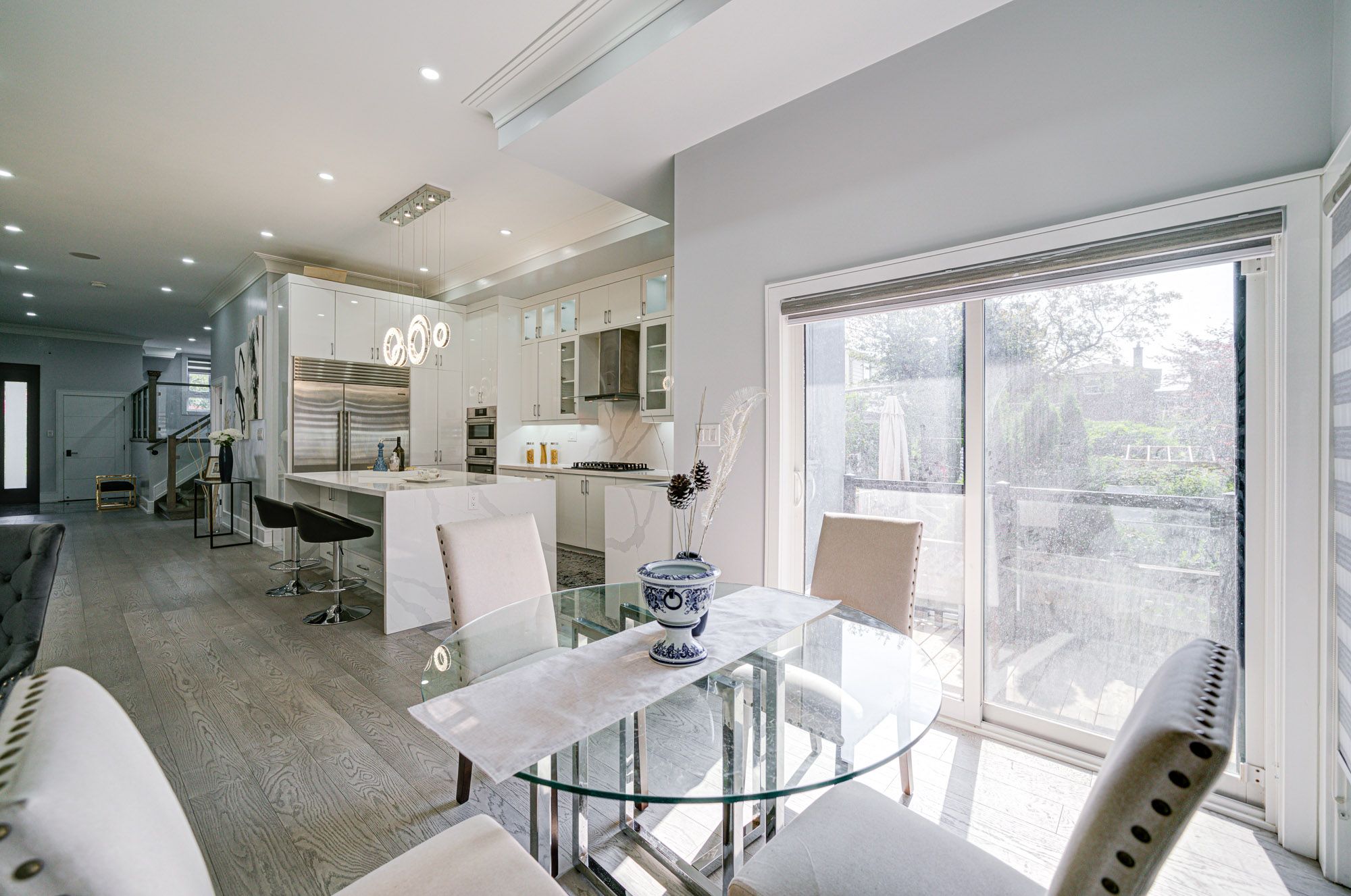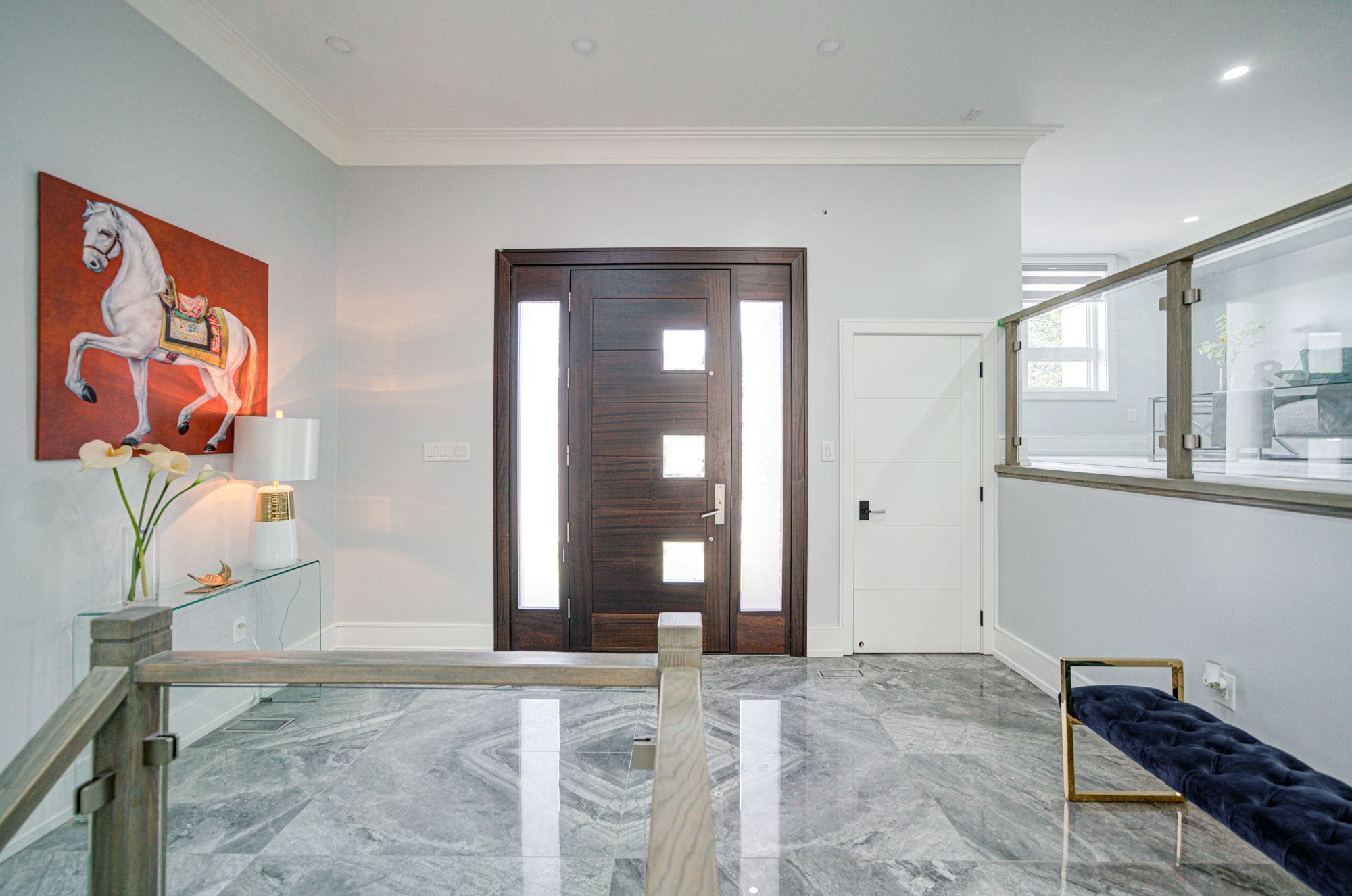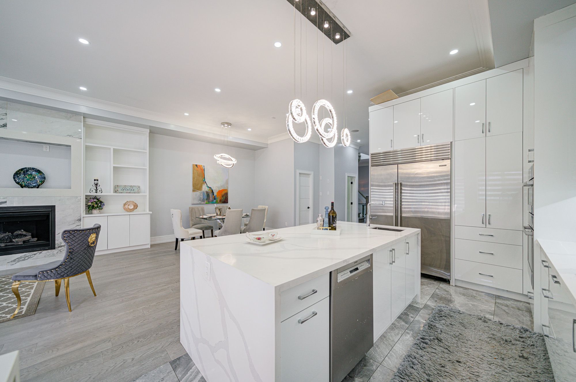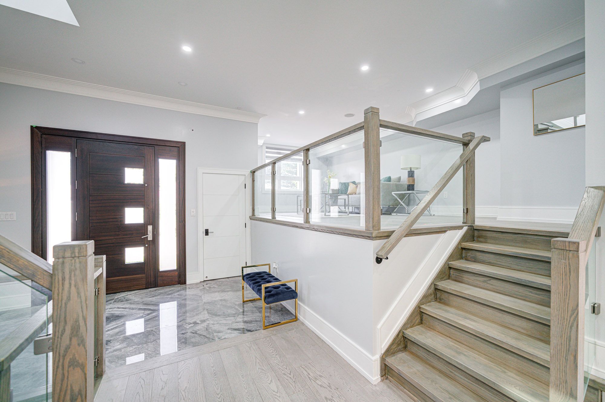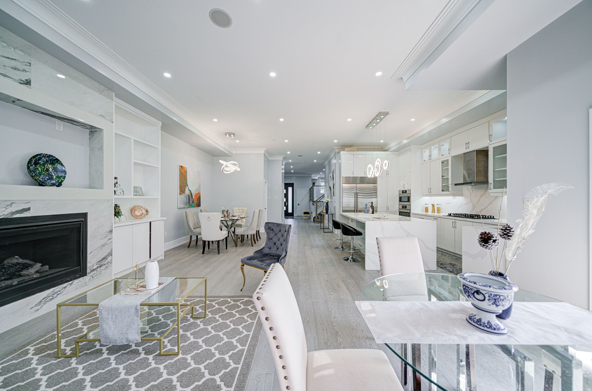 Welcome to 94 wanstead avenue in scarborough, a stunning 4-year-old custom-built luxury home offering over 3,265 sq. Ft. Of above-grade living space plus a 1,418 sq. Ft. Finished walkout basement apartment, featuring 5 spacious bedrooms and 6 bathrooms where every bedroom comes with its own bathroom. The main floor includes a versatile bedroom/office/den with a 3-piece bath, a formal living room, a warm and inviting family room, and an open-concept chefs kitchen equipped with a sub-zero built-in refrigerator, built-in oven and microwave, stainless steel gas range and rangehood, dishwasher, large island with breakfast bar, custom cabinetry, and modern light fixtures, making it ideal for both entertaining and everyday living. Thoughtful details such as wainscoting, coffered ceilings, an elegant staircase with iron pickets, abundant pot lights, skylights, and oversized windows throughout ensure natural light fills the home at all times, highlighting its refined finishes. The luxurious primary suite offers a fully organized walk-in closet and a spa-inspired 6-piece ensuite with a freestanding soaker tub, large glass-enclosed shower, and dual vanities, while the second floor provides access to a walk-out balcony perfect for morning coffee or evening relaxation. The professionally finished walkout basement apartment, with its own kitchen, living space, bedrooms, and private walkout entrance, is ideal for extended family, in-laws, or rental income. Additional features include hardwood flooring throughout, high ceilings, upper-level laundry with cabinetry and sink, energy-efficient windows, a beautifully landscaped exterior, a single-car garage, and a large deck overlooking the backyard. Perfectly situated in a family-friendly neighborhood close to schools, parks, shopping, victoria pk subway stn, ttc transit, and major highways, this home delivers the ultimate combination of comfort, convenience, and modern elegance. 9ft custom-made elegant door