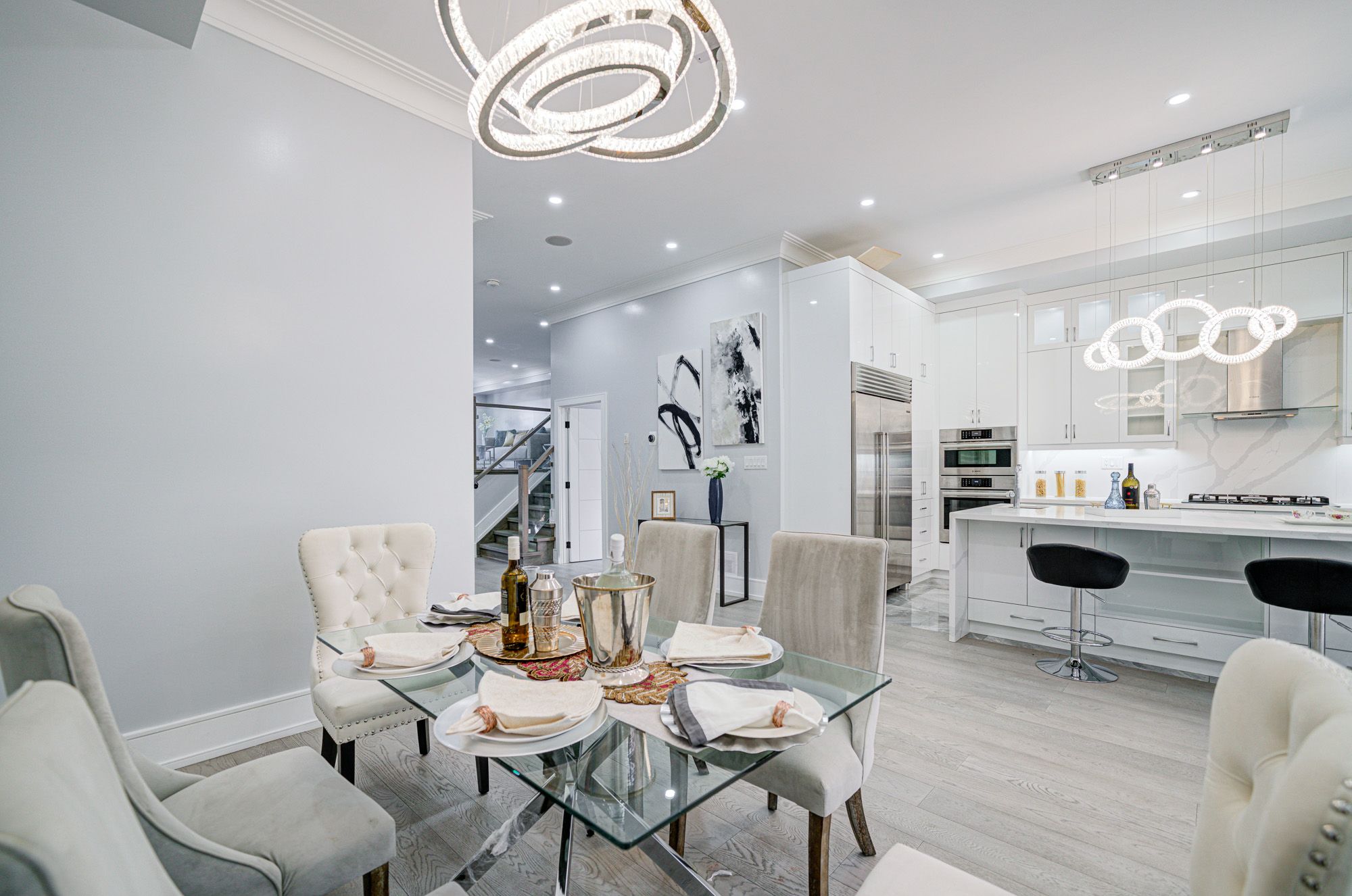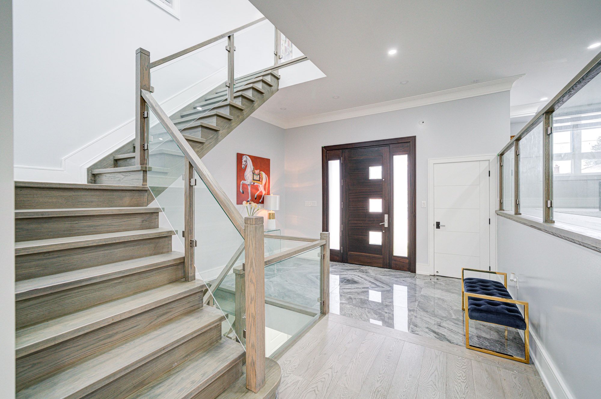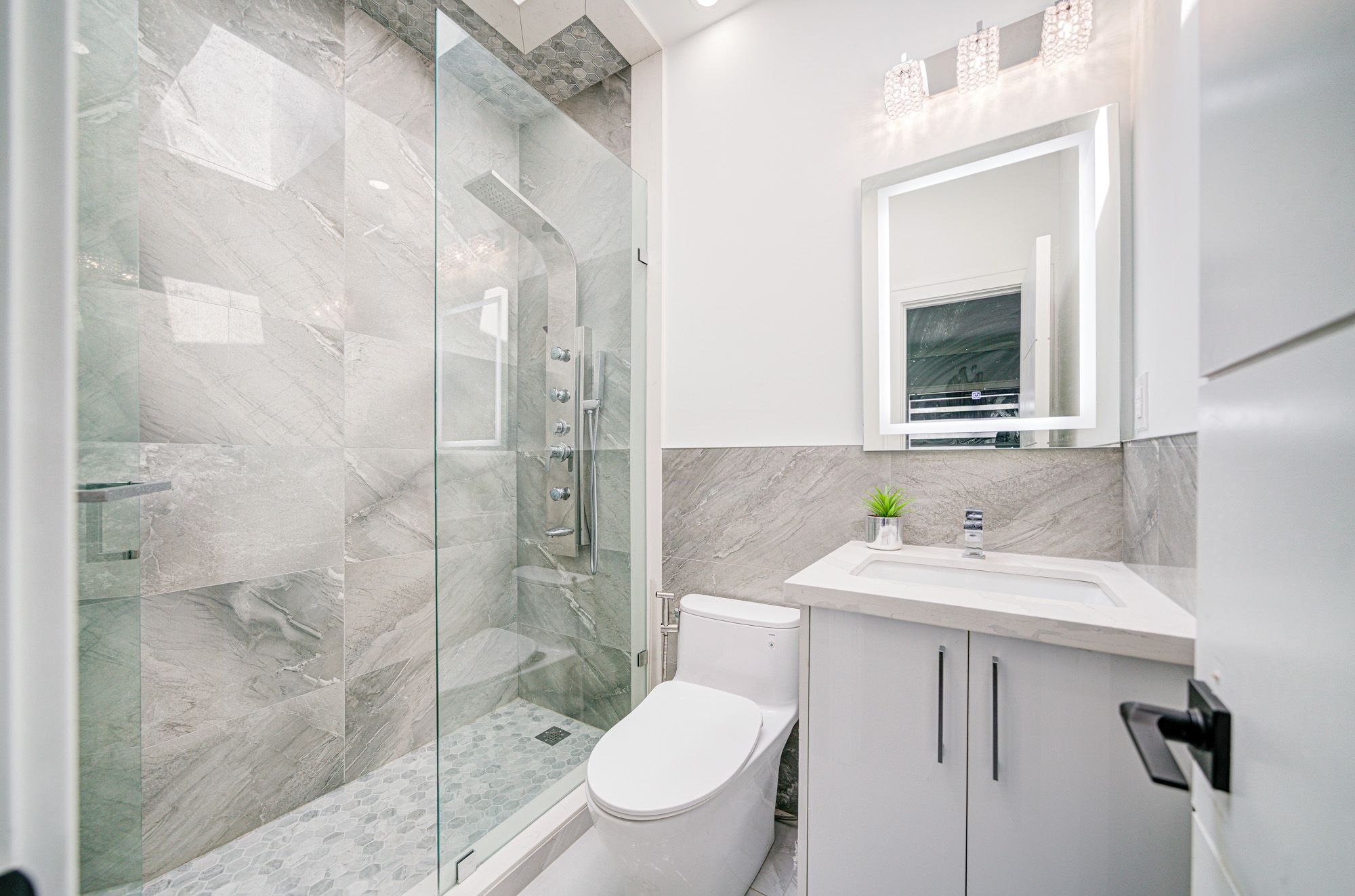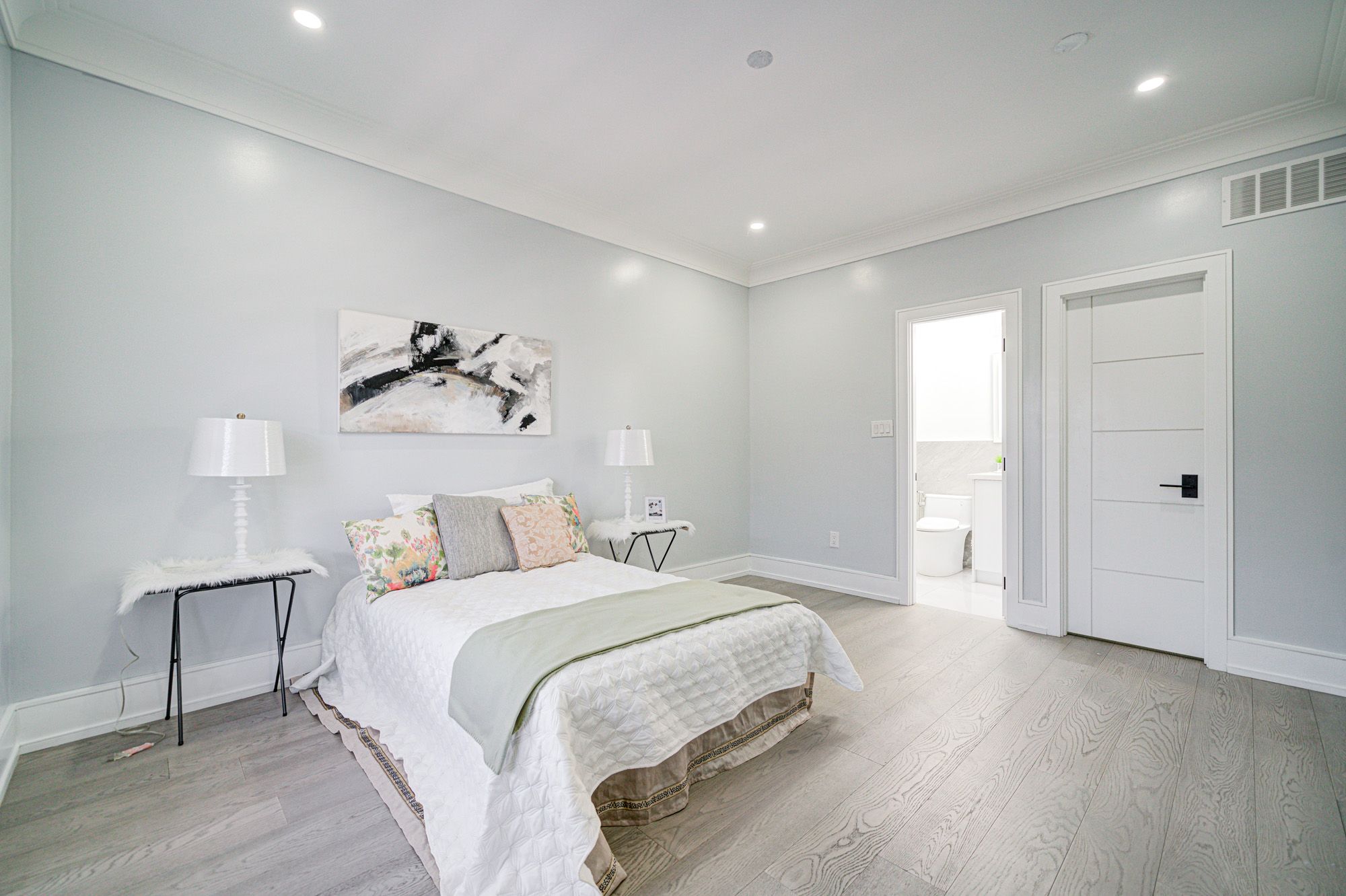 Welcome to 94 wanstead avenue in scarborough, a stunning 4-year-old custom-built luxury home offering over 3,265 sq. Ft. Of above-grade living space plus a 1,418 sq. Ft. Finished walkout basement apartment, featuring 5 spacious bedrooms and 6 bathrooms where every bedroom comes with its own bathroom. The main floor includes a versatile bedroom/office/den with a 3-piece bath, a formal living room, a warm and inviting family room, and an open-concept chefs kitchen equipped with a sub-zero built-in refrigerator, built-in oven and microwave, stainless steel gas range and rangehood, dishwasher, large island with breakfast bar, custom cabinetry, and modern light fixtures, making it ideal for both entertaining and everyday living. Thoughtful details such as wainscoting, coffered ceilings, an elegant staircase with iron pickets, abundant pot lights, skylights, and oversized windows throughout ensure natural light fills the home at all times, highlighting its refined finishes. The luxurious primary suite offers a fully organized walk-in closet and a spa-inspired 6-piece ensuite with a freestanding soaker tub, large glass-enclosed shower, and dual vanities, while the second floor provides access to a walk-out balcony perfect for morning coffee or evening relaxation. The professionally finished walkout basement apartment, with its own kitchen, living space, bedrooms, and private walkout entrance, is ideal for extended family, in-laws, or rental income. Additional features include hardwood flooring throughout, high ceilings, upper-level laundry with cabinetry and sink, energy-efficient windows, a beautifully landscaped exterior, a single-car garage, and a large deck overlooking the backyard. Perfectly situated in a family-friendly neighborhood close to schools, parks, shopping, victoria pk subway stn, ttc transit, and major highways, this home delivers the ultimate combination of comfort, convenience, and modern elegance. 9ft custom-made elegant door