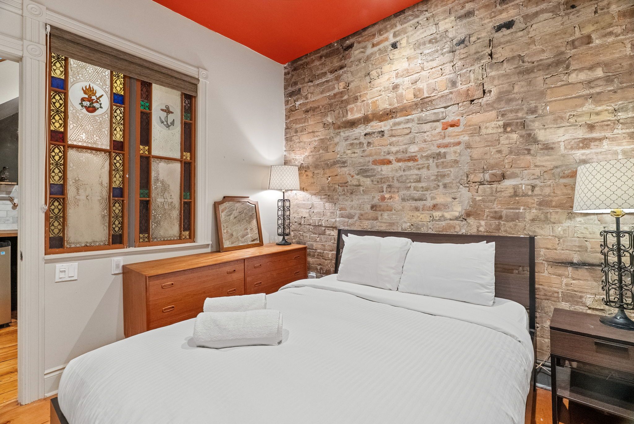 • Exposed brick and charming decor create a unique atmosphere.
