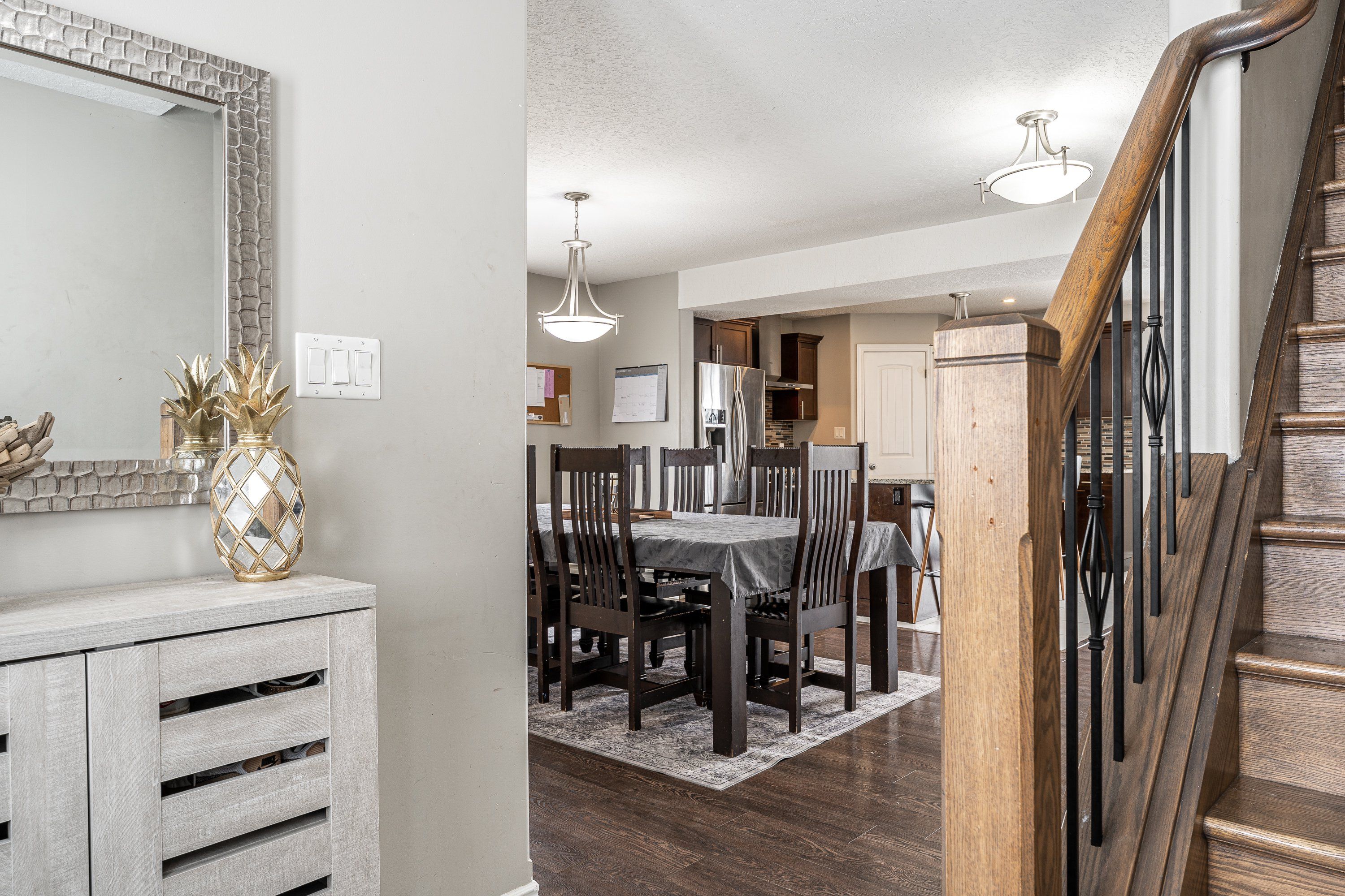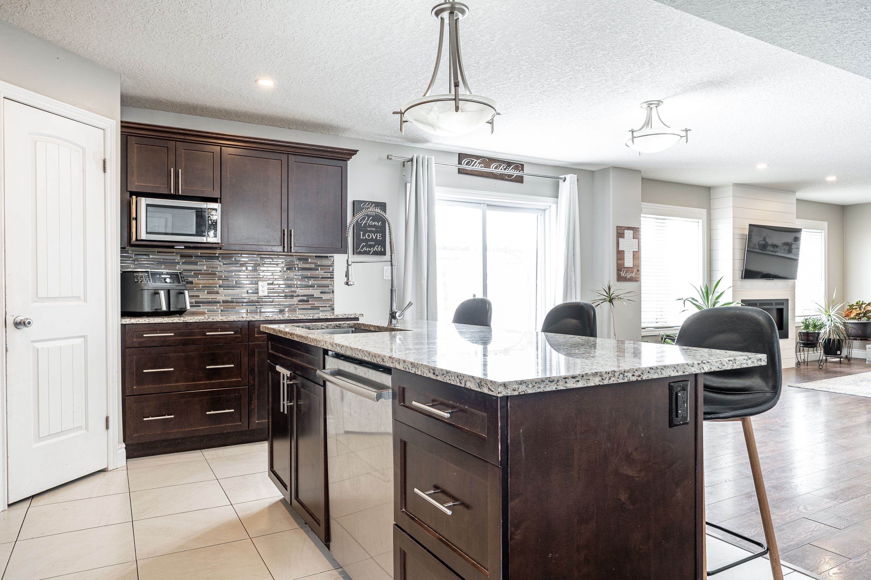 This 4+1 bedroom, two-storey home, built in 2018, is located on a quiet cul-de-sac on wilson court, offering excellent space for family living. The open-concept main floor is ideal for entertaining, featuring a bright kitchen with a large island, granite countertops and a corner pantry. The kitchen flows into the dining area and living room with a fireplace and views of the backyard. Patio doors lead to a private, fully fenced yard with a concrete patio and plenty of space, perfect for a kids play area. Upstairs includes a spacious primary bedroom with ensuite and walk-in closet, three additional bedrooms, a four-piece bath, and second-floor laundry. The fully finished basement offers a rec room, fifth bedroom, three-piece bathroom, and ample storage. Click on the virtual tour link, view the floor plans, photos and youtube link and then call your realtor to schedule your private viewing of this great property!