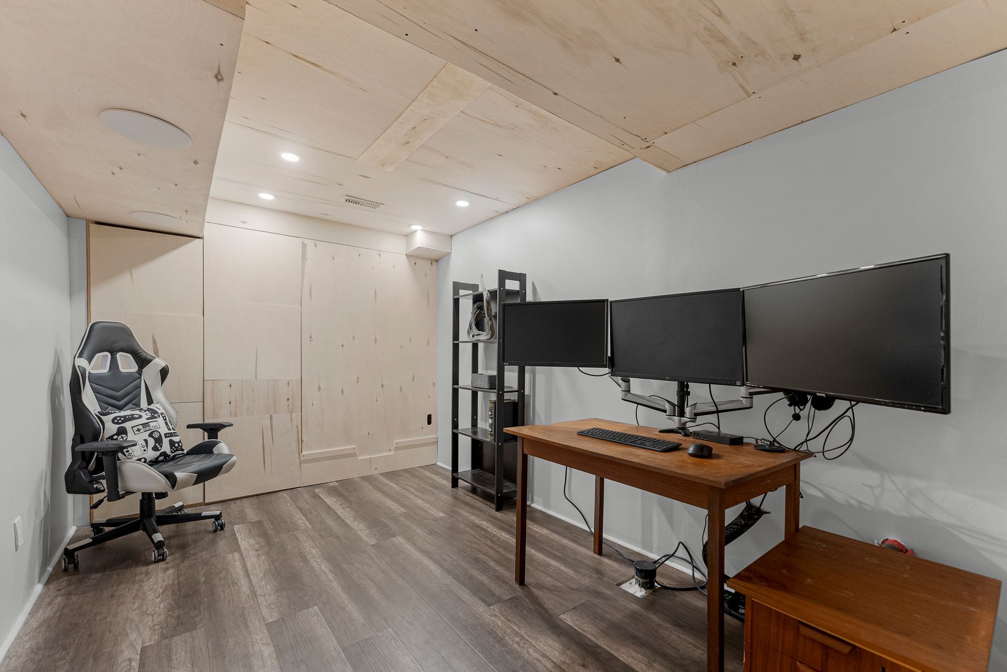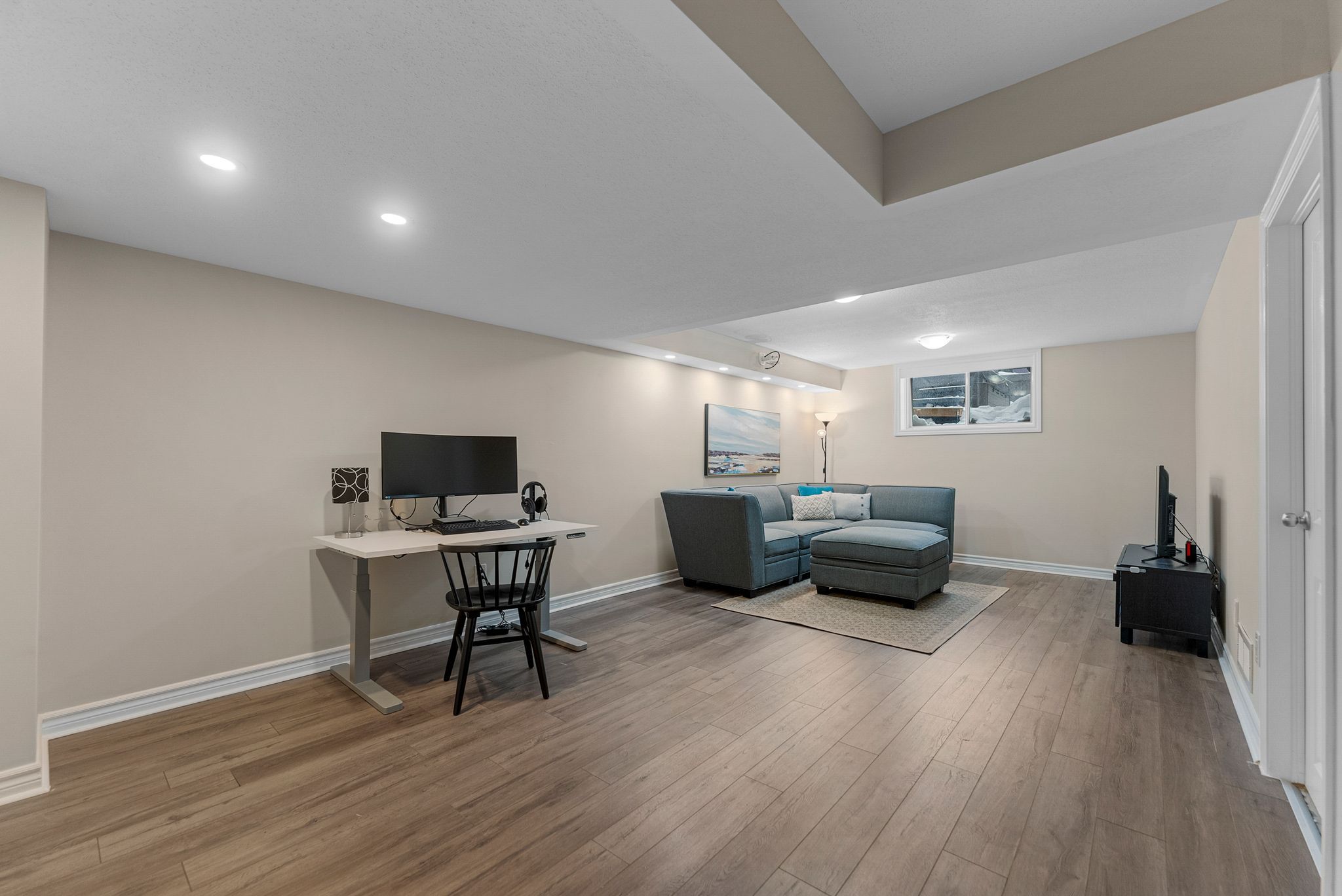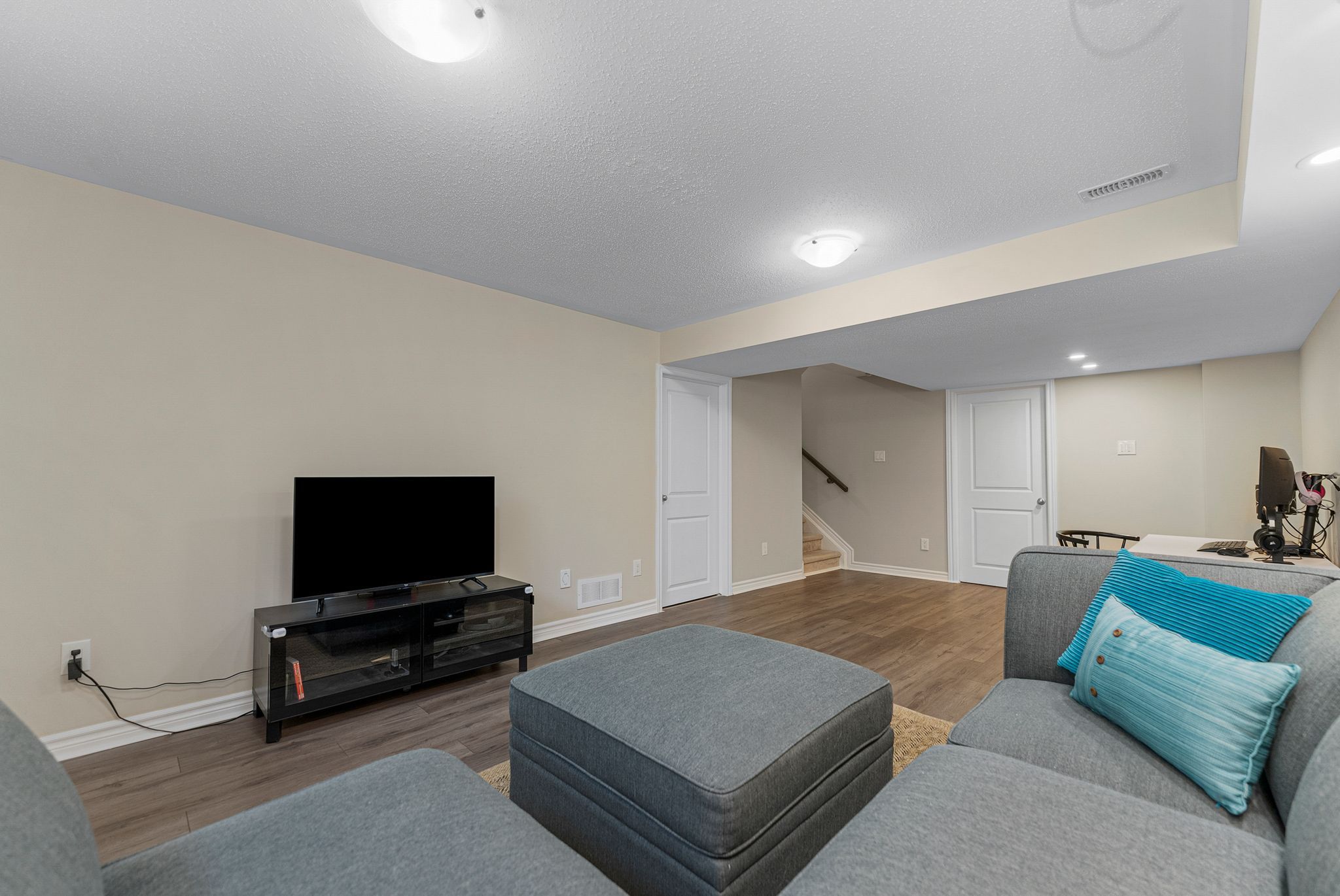• Finished basement ready for entertainment and relaxation with home theatre setup.