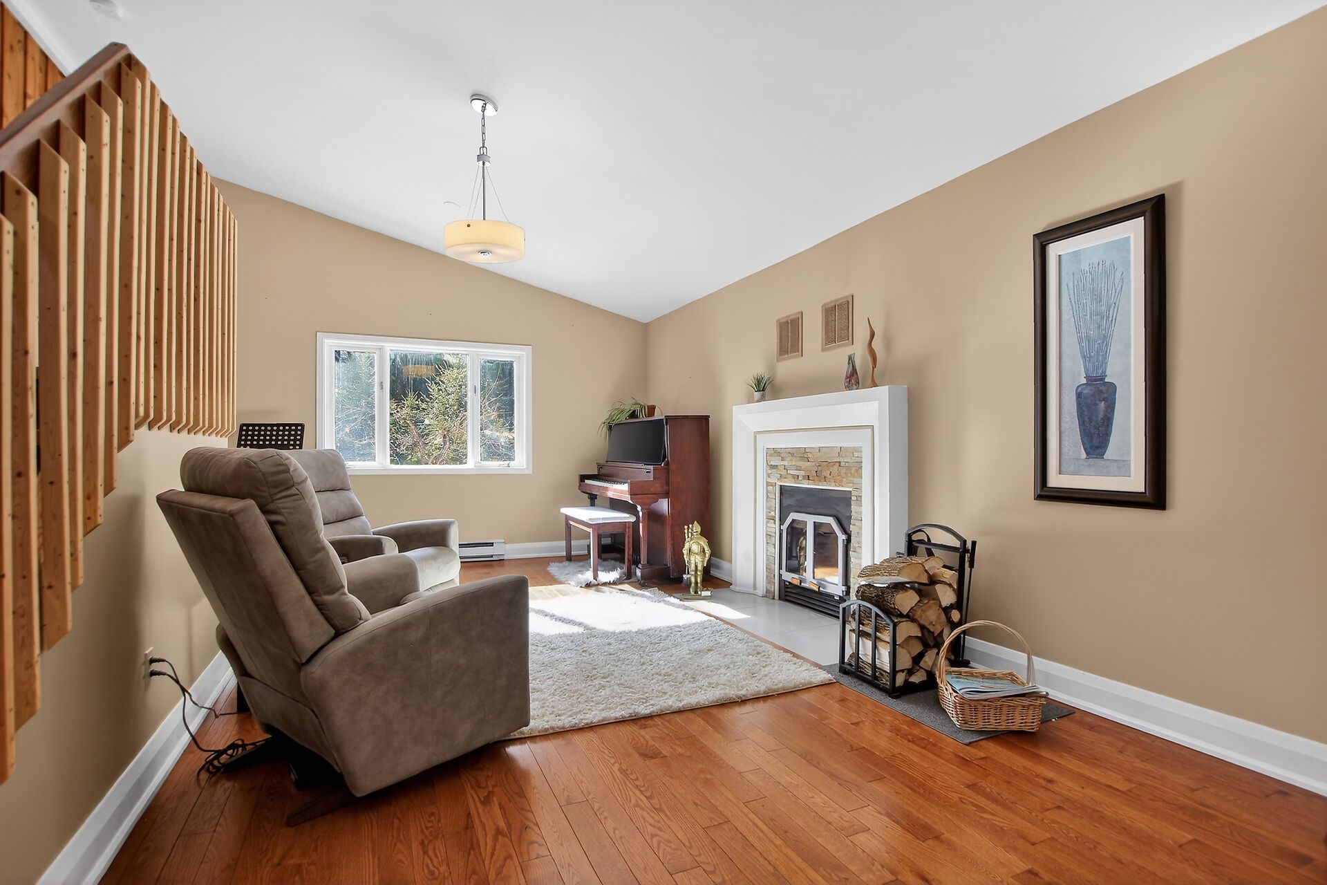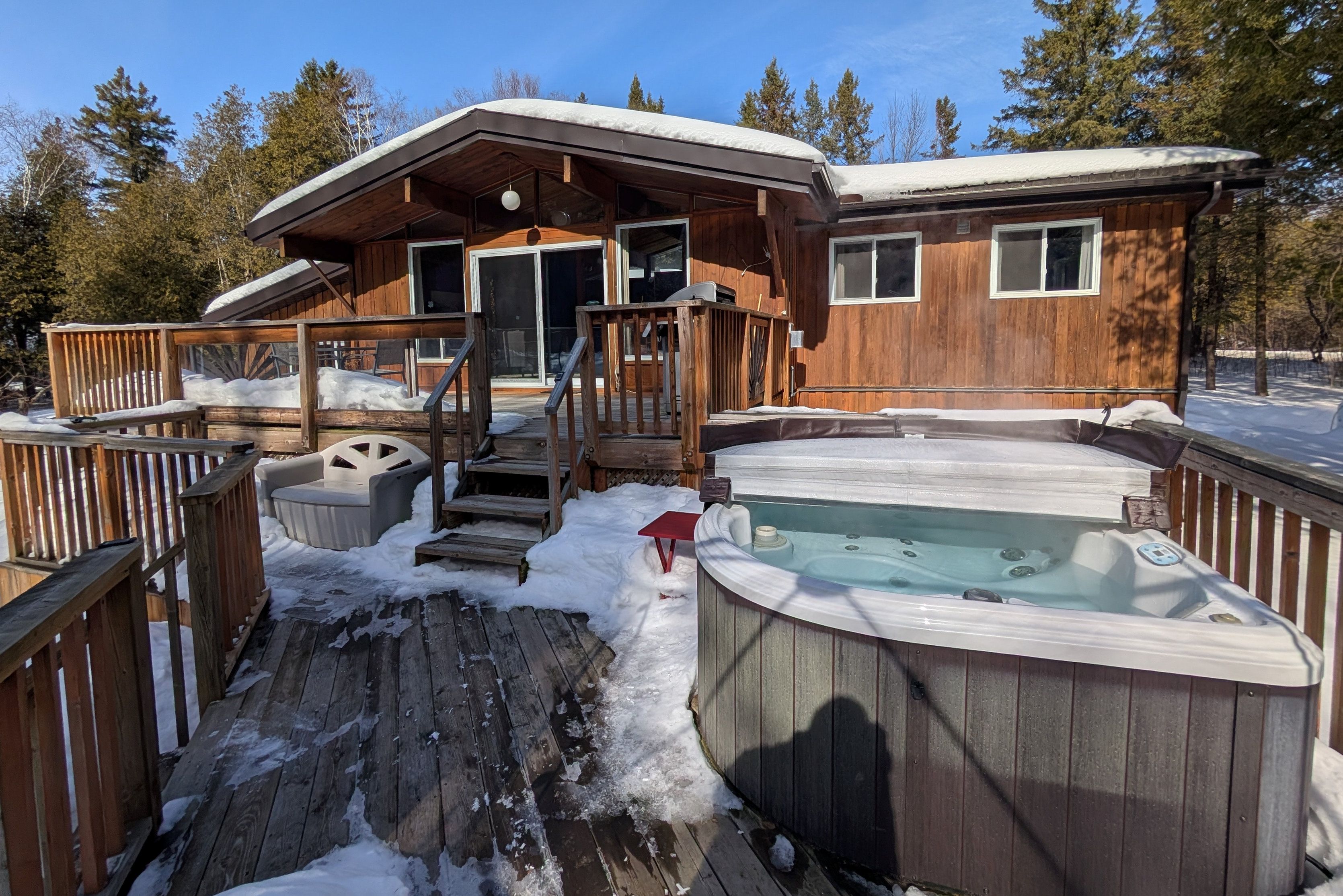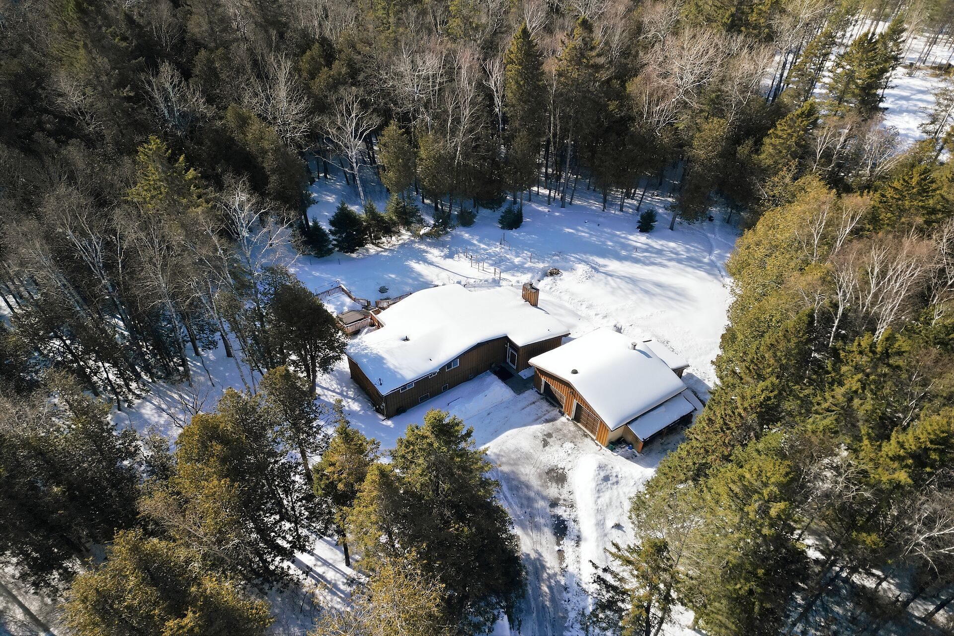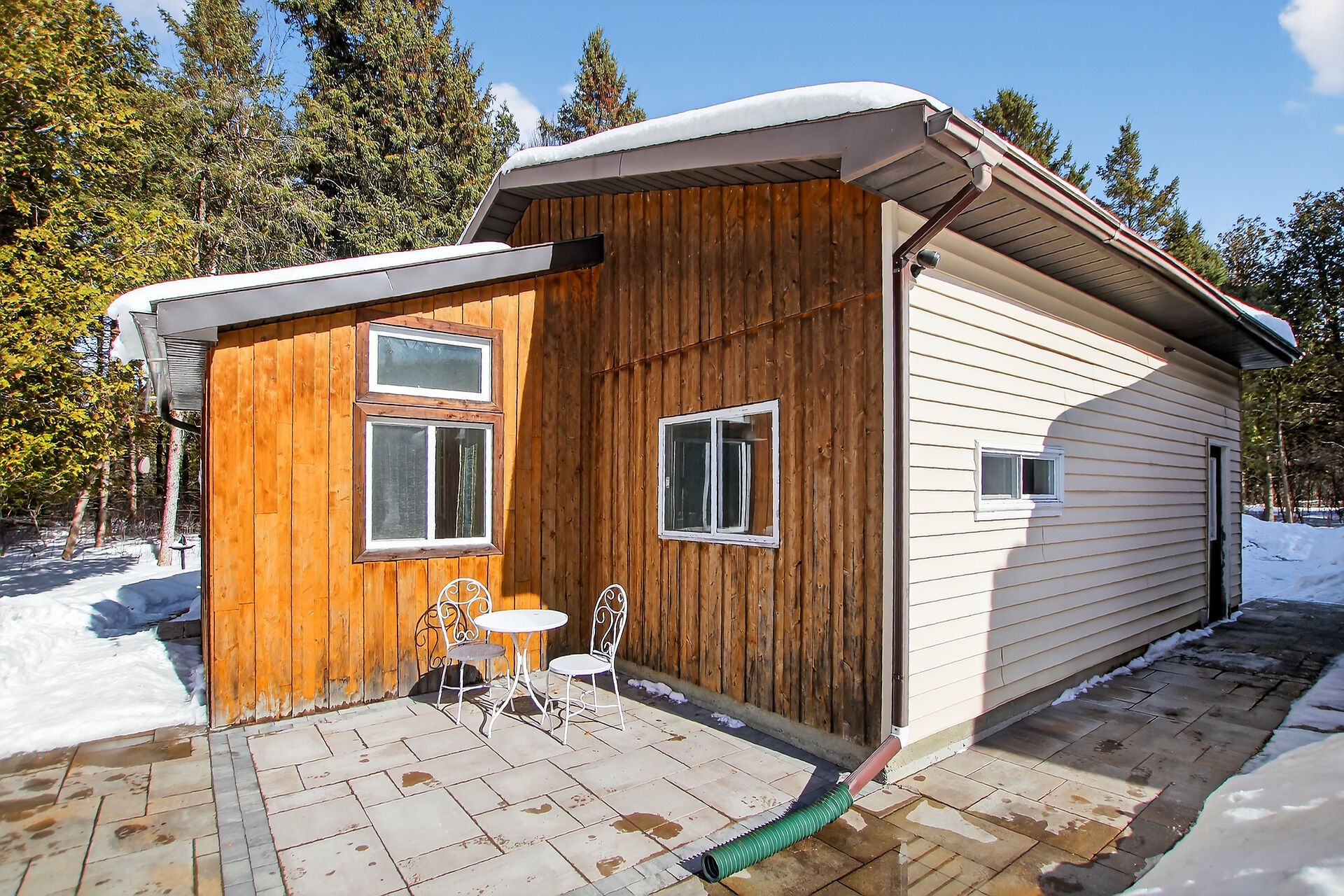 Fantastic chalet style home with 4 bedrooms & 2. 5 half baths on approx. 2. 24 forested acres with a 2 tier deck, hot tub, patio, gardens & trails to enjoy. Plus an oversized double garage & a separate 3 season studio perfect for hobbies or a home office. The home's unique design can accommodate a variety of lifestyles. Cathedral ceilings, exposed beams & wonderful windows brings the outside in. Great room with open plan living, dining & kitchen plus a bedroom & full bath on the upper level. Wider patio door to the deck is great for entertaining & barbecues. Dining area can accommodate a buffet & has space for larger gatherings. A gas stove is fantastic for ambience and efficient heating. Kitchen has tile flooring & many cabinets with pot drawers, wine storage & task lighting. S/s appliances are included. Breakfast bar is great for everyday living. Down the hall is the main bedroom that has been modified to allow for a desk area & an enlarged walk-in closet. Ensuite bath has a new vanity with 2 sinks, new faucets, glass shower enclosure with heated floor & recessed lighting. On the main level there is a family room or separate living area with vaulted ceiling, updated hardwood flooring, a fireplace with mantel, porcelain tiles & a wood stove. Close by is a handy powder room with updated vanity & sink. On the lower level is a rec room with propane stove & 3 bedrooms, all with big windows above grade & a full bath. Vinyl plank flooring and recessed lighting was added. The larger bedroom can accommodate a king size bed & has a double closet with mirrors & track lighting. Main bath is close by & has a new vanity with granite counter, glass bowl sink & faucet. Completing this level is the laundry room with utility & storage. Enjoy the outdoors & forested area of this beautiful property. Short drive to shops & amenities in the almonte, carp, stittsville & kanata & the 417. 24 hours irrevocable on all offers.