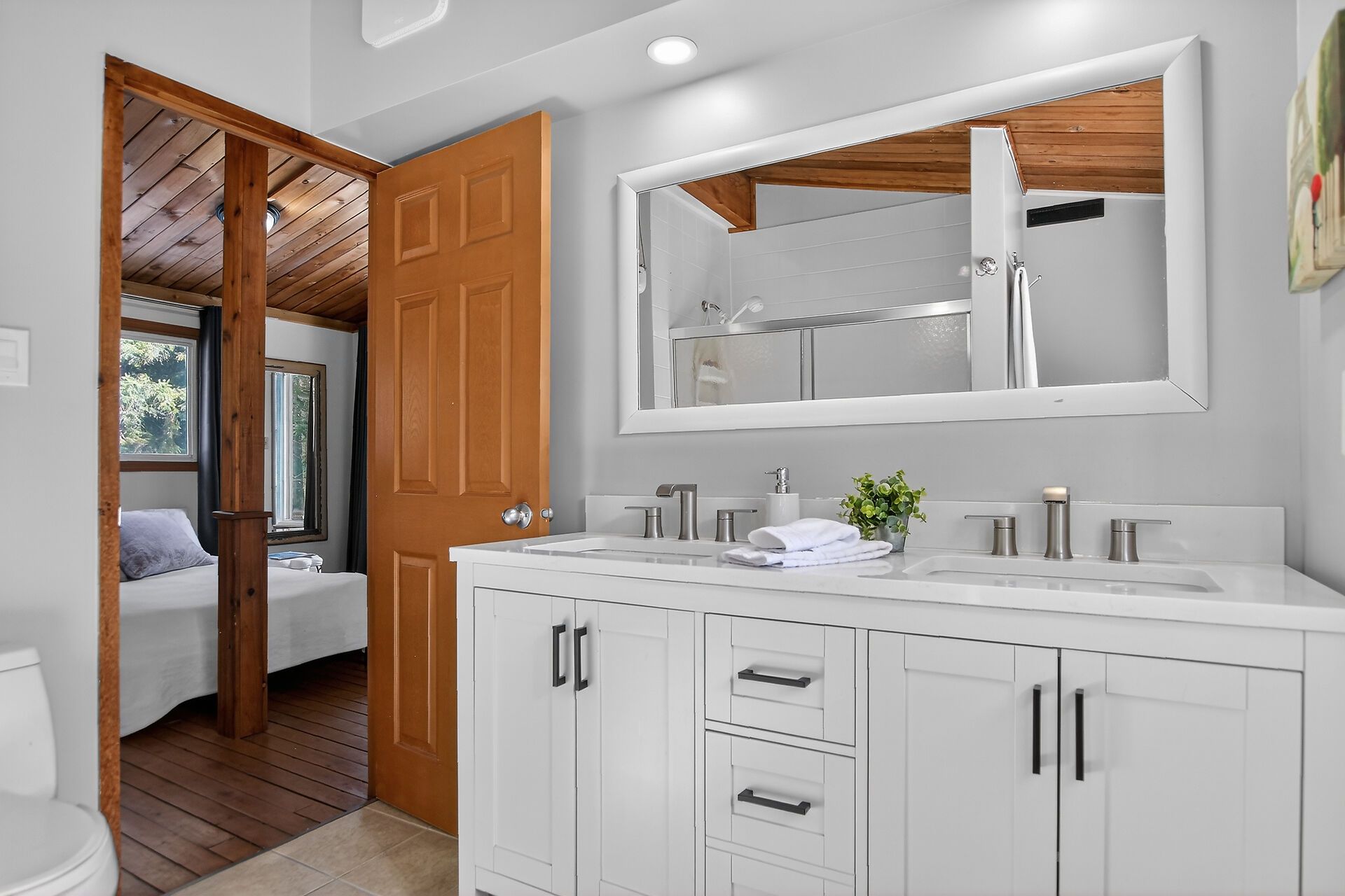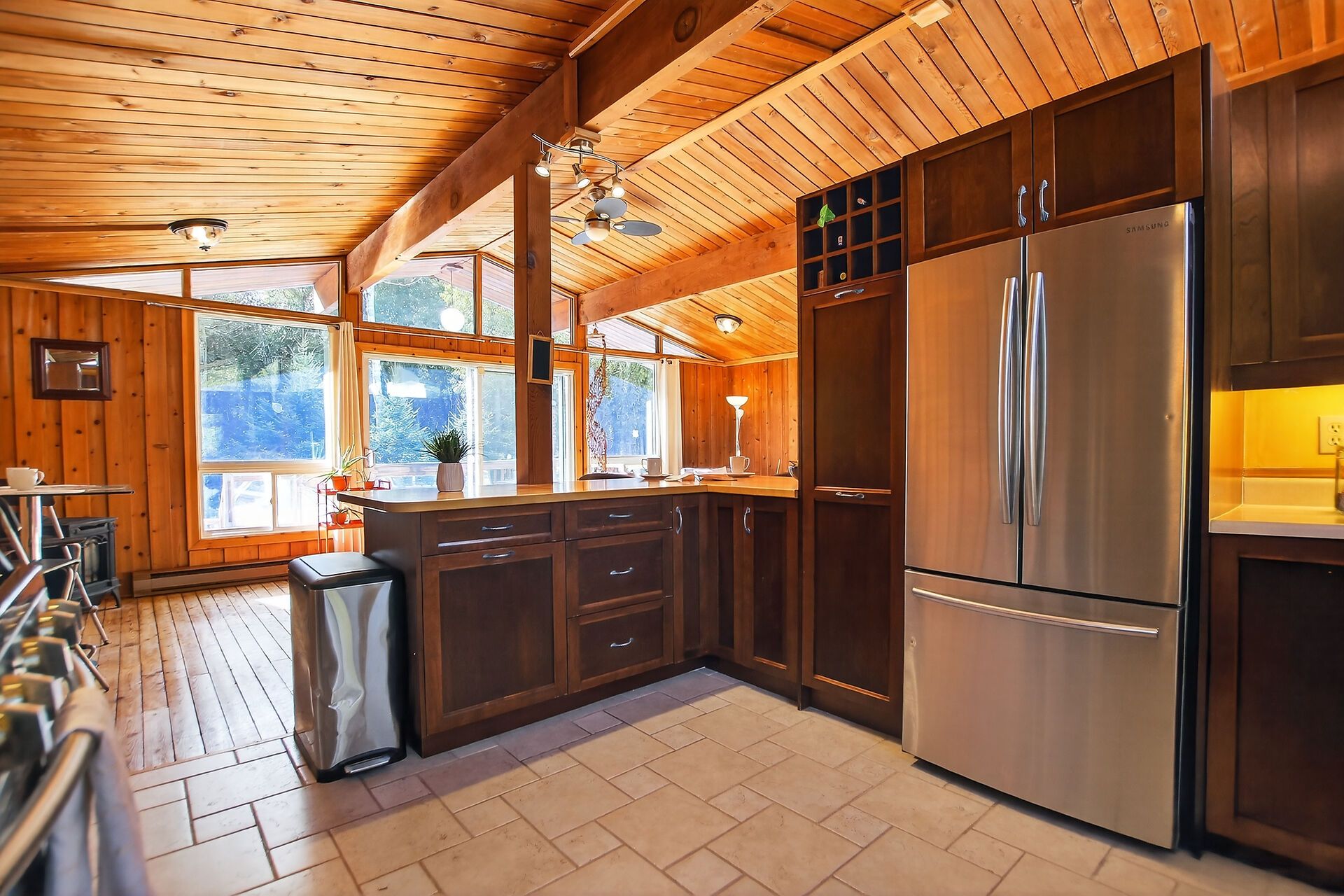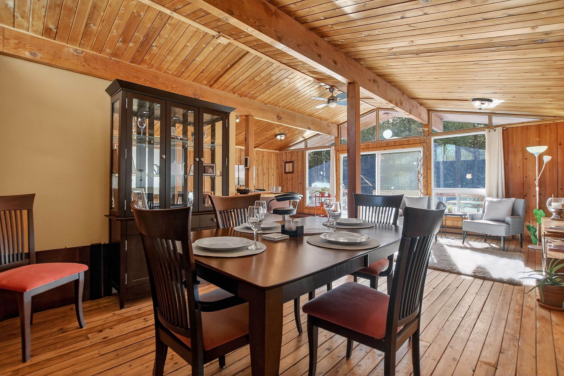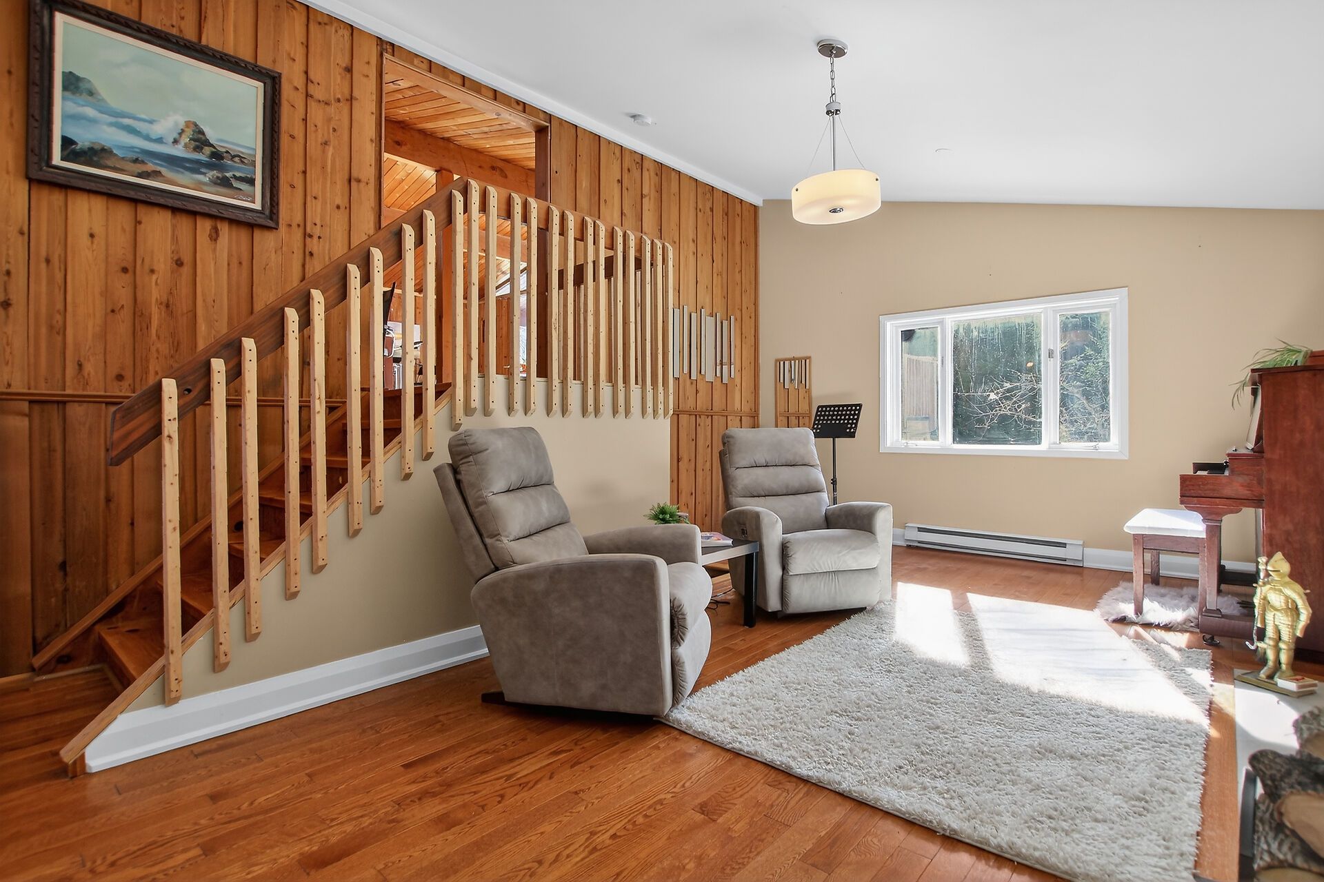 Fantastic chalet style home with 4 bedrooms & 2. 5 half baths on approx. 2. 24 forested acres with a 2 tier deck, hot tub, patio, gardens & trails to enjoy. Plus an oversized double garage & a separate 3 season studio perfect for hobbies or a home office. The home's unique design can accommodate a variety of lifestyles. Cathedral ceilings, exposed beams & wonderful windows brings the outside in. Great room with open plan living, dining & kitchen plus a bedroom & full bath on the upper level. Wider patio door to the deck is great for entertaining & barbecues. Dining area can accommodate a buffet & has space for larger gatherings. A gas stove is fantastic for ambience and efficient heating. Kitchen has tile flooring & many cabinets with pot drawers, wine storage & task lighting. S/s appliances are included. Breakfast bar is great for everyday living. Down the hall is the main bedroom that has been modified to allow for a desk area & an enlarged walk-in closet. Ensuite bath has a new vanity with 2 sinks, new faucets, glass shower enclosure with heated floor & recessed lighting. On the main level there is a family room or separate living area with vaulted ceiling, updated hardwood flooring, a fireplace with mantel, porcelain tiles & a wood stove. Close by is a handy powder room with updated vanity & sink. On the lower level is a rec room with propane stove & 3 bedrooms, all with big windows above grade & a full bath. Vinyl plank flooring and recessed lighting was added. The larger bedroom can accommodate a king size bed & has a double closet with mirrors & track lighting. Main bath is close by & has a new vanity with granite counter, glass bowl sink & faucet. Completing this level is the laundry room with utility & storage. Enjoy the outdoors & forested area of this beautiful property. Short drive to shops & amenities in the almonte, carp, stittsville & kanata & the 417. 24 hours irrevocable on all offers.