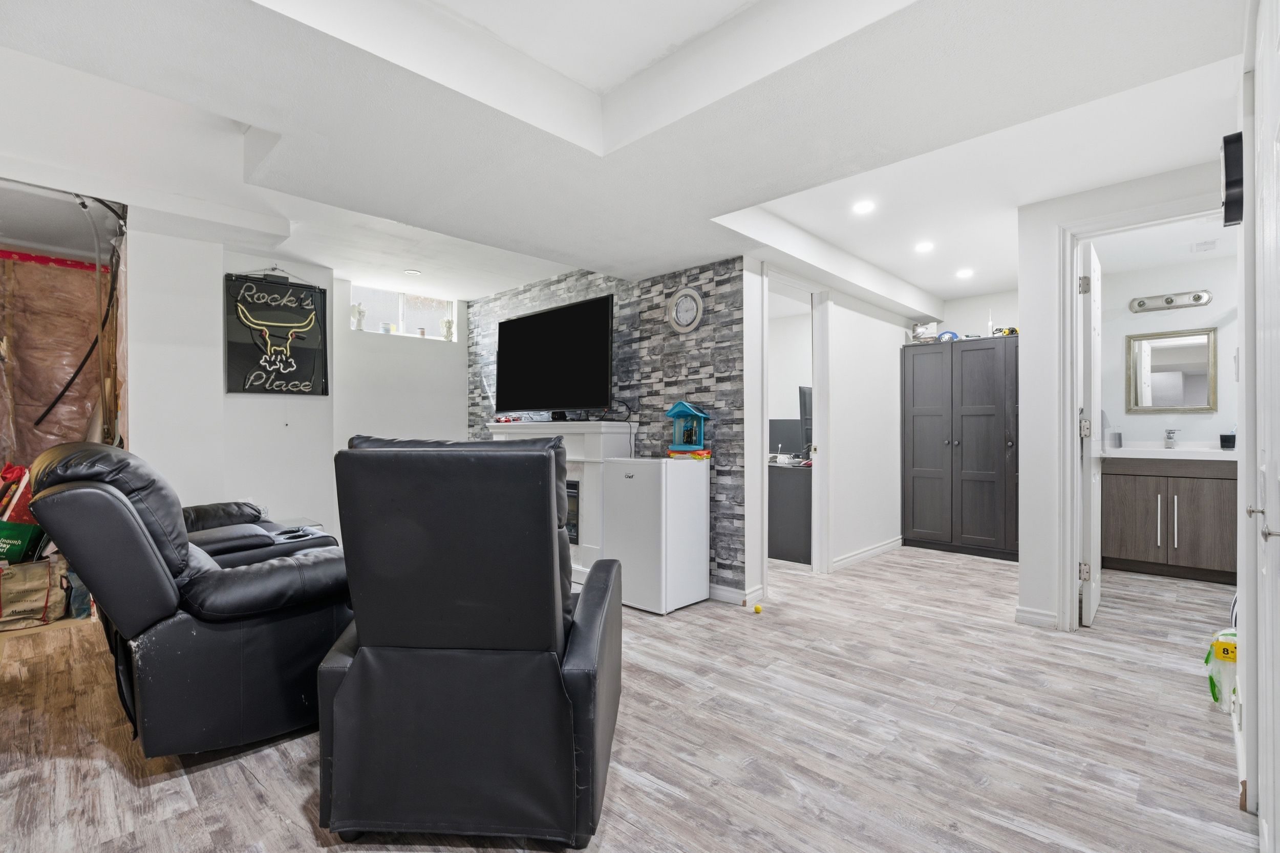 Welcome to parc place, where peaceful living meets convenience. This rear-facing unit offers exceptional privacy with mature trees creating a true backyard oasis just steps away from yewholme park and the university of guelph. Inside, the home is in excellent condition with engineered hardwood throughout, an updated kitchen featuring quartz countertops, gas stove, stainless steel sink and fridge, and an island overlooking the dining area. The spacious living room includes a gas fireplace and opens to an oversized deck (2017) through updated patio doors (2025), perfect for outdoor living and bird watching. This unit features 3 updated bathrooms, one of which includes a jacuzzi tub. The newly finished basement offers a private bedroom and bathroom as well as additional storage. The well-managed condo corporation covers exterior maintenance including roof, windows, doors, deck, landscaping, and snow removal. Enjoy great amenities including a concrete pool, tennis/pickleball court, and dry sauna. Incredible location just steps away from the university of guelph, parks, transit, hardware store, gas station and restaurants. A rare combination of privacy, lifestyle, and location.