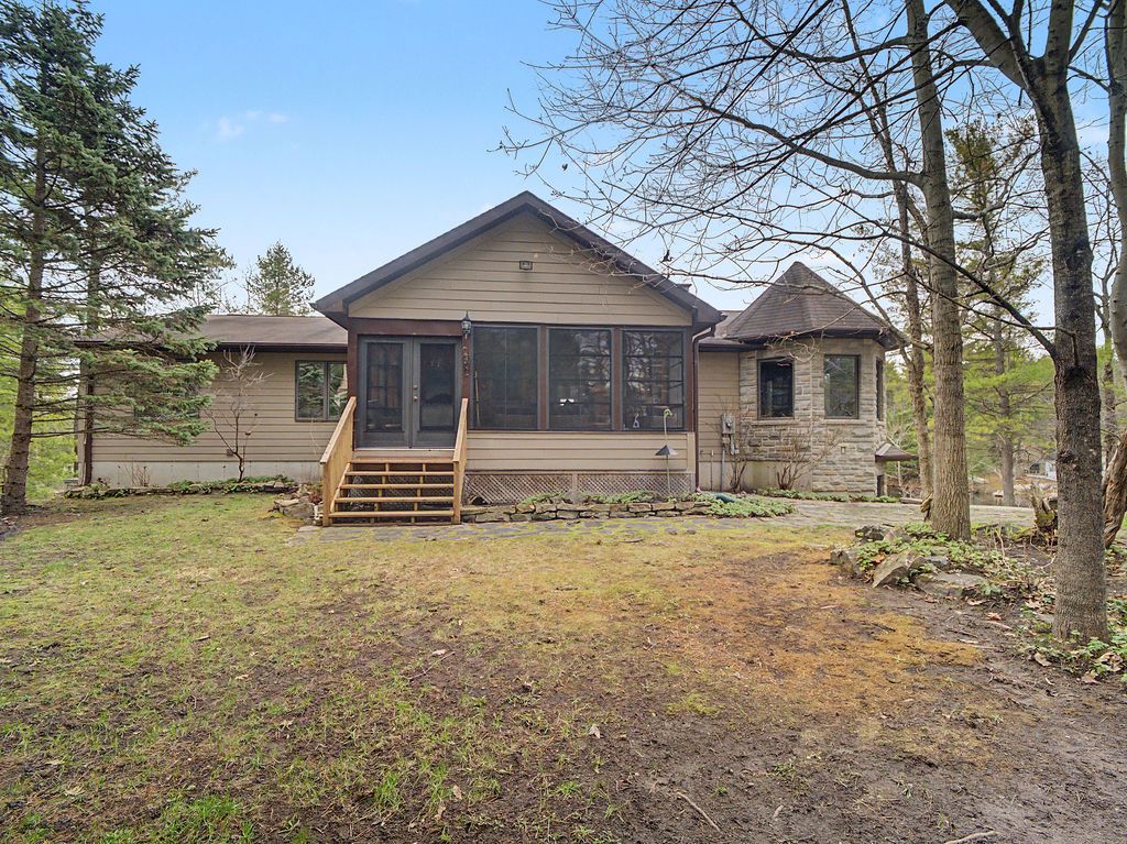 Welcome to 941 jones falls road ... A spectacular private waterfront oasis located on a huge treed lot on sand lake next to jones falls locks. A short distance from the historic 1831 great stone arch dam. This newly (2006) built raised bungalow boasts 3 +1 bedrooms with optional family room and 2 full bathrooms. Enjoy the 270 degree view of your very own 510 ft of waterfront nestled amongst mature trees on a tranquil private point. This maintenace free stone clad home with open concept living boasts a floor to ceiling stone propane fireplace in the great room as well as a second gas fireplace in the lower level family room. The cathedral ceilings with custom woodwork and trim throughout create a quaint cottage feel with all the modern amenities of today's upscale living. A massive 60 ft deck with portable gazebo extends the entire lakeside front of this home with numerous access points off the primary bedroom, great room and kitchen. Enjoy deep crystal clear water for swimming, boating and fishing. The custom stairs from your private dock allows for safe easy access to and from the water. The landscaping is truly picturesque with a handy watering system pulling water from the lake for watering the numerous gardens. When the flowers are in full bloom the scenic gardens are right out of a magazine. The oversized double car garage allows for 3 large vehicles or storage for your water toys. The entertaining gourmet kitchen with custom cabinetry and pull out drawers is an absolute dream for the aspiring chef. A cozy octagonal kitchen breakfast nook surrounded in floor to ceiling windows is a favorite place to enjoy a peaceful morning coffee. One of the main features of this home are the oversized windows... Every room comes with an unforgetable view of nature at its finest... Floor to ceiling windows allow an abundance of natural light throughout this home all day long. This home is a must see for the discriminating waterfront enthusiast... Book your private viewing today