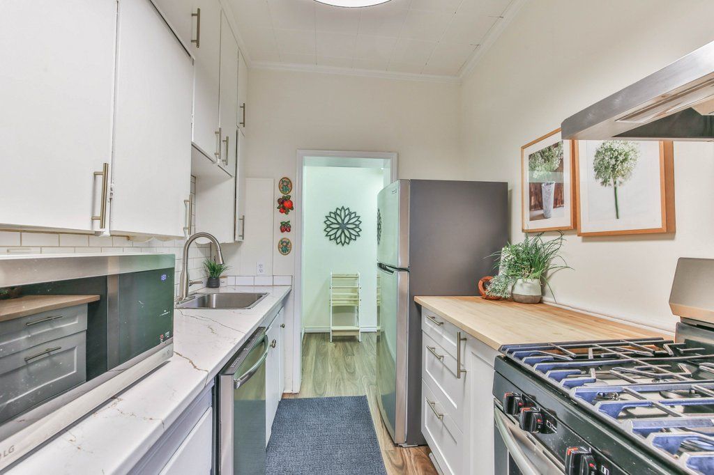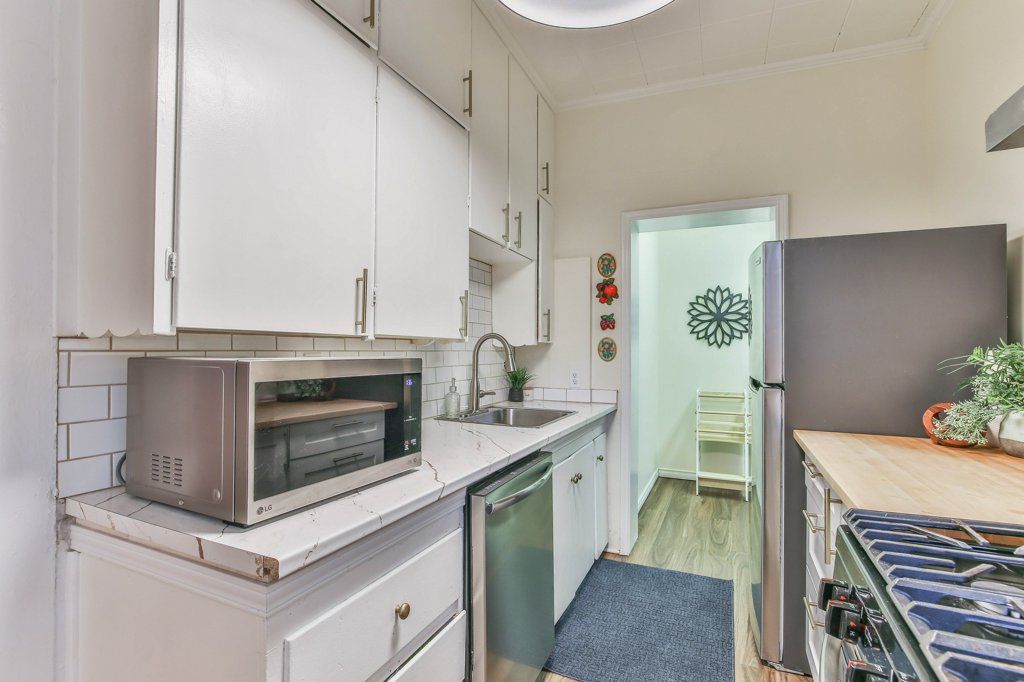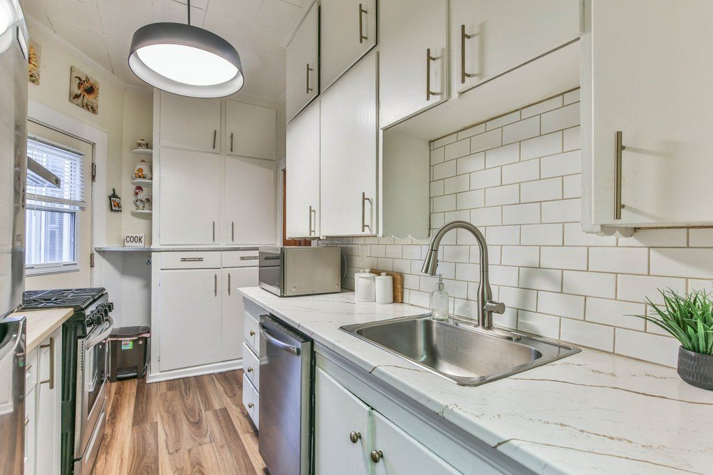 • Convenient two entrances and updated kitchen appliances for easy living.