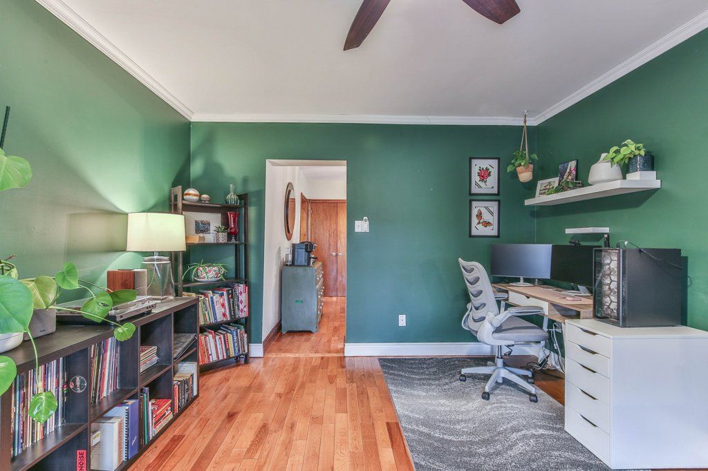 • High ceilings and hardwood flooring throughout add charm.