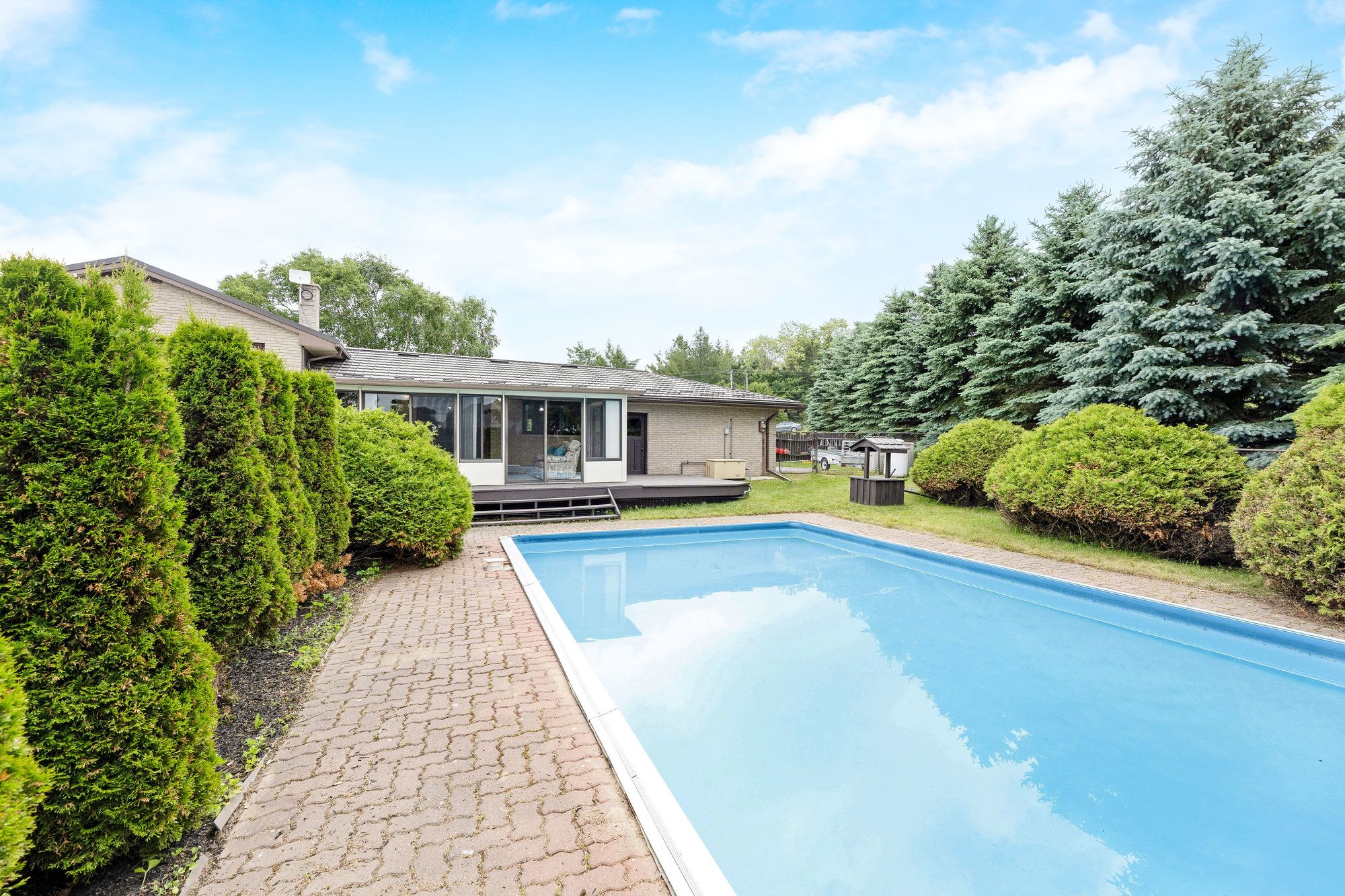Enjoy peaceful country living in this well-cared-for side split, owned by the same family since it was built and set on a beautiful 1. 38-acre property complete with an artesian-fed pond. A durable metal roof adds long-term value, while the main floor offers a bright, open living and dining area with a large picture window overlooking the lush front landscaping. The kitchen provides plenty of storage and opens into a sunny florida room, where you can take in views of the sprawling backyard and heated in-ground pool. The upper level features three spacious bedrooms, including a primary with a walkout to a raised deck, plus a full bathroom. The lower level offers a comfortable family room with above-grade windows, an extra bedroom, and a combined laundry/2-piece bathroom, along with a separate rear entrance-perfect for guests or potential in-law use. The unfinished basement delivers extra storage or future space to customize. From swimming in the summer to skating on your very own pond in the winter, this property offers year-round enjoyment in a stunning country setting.