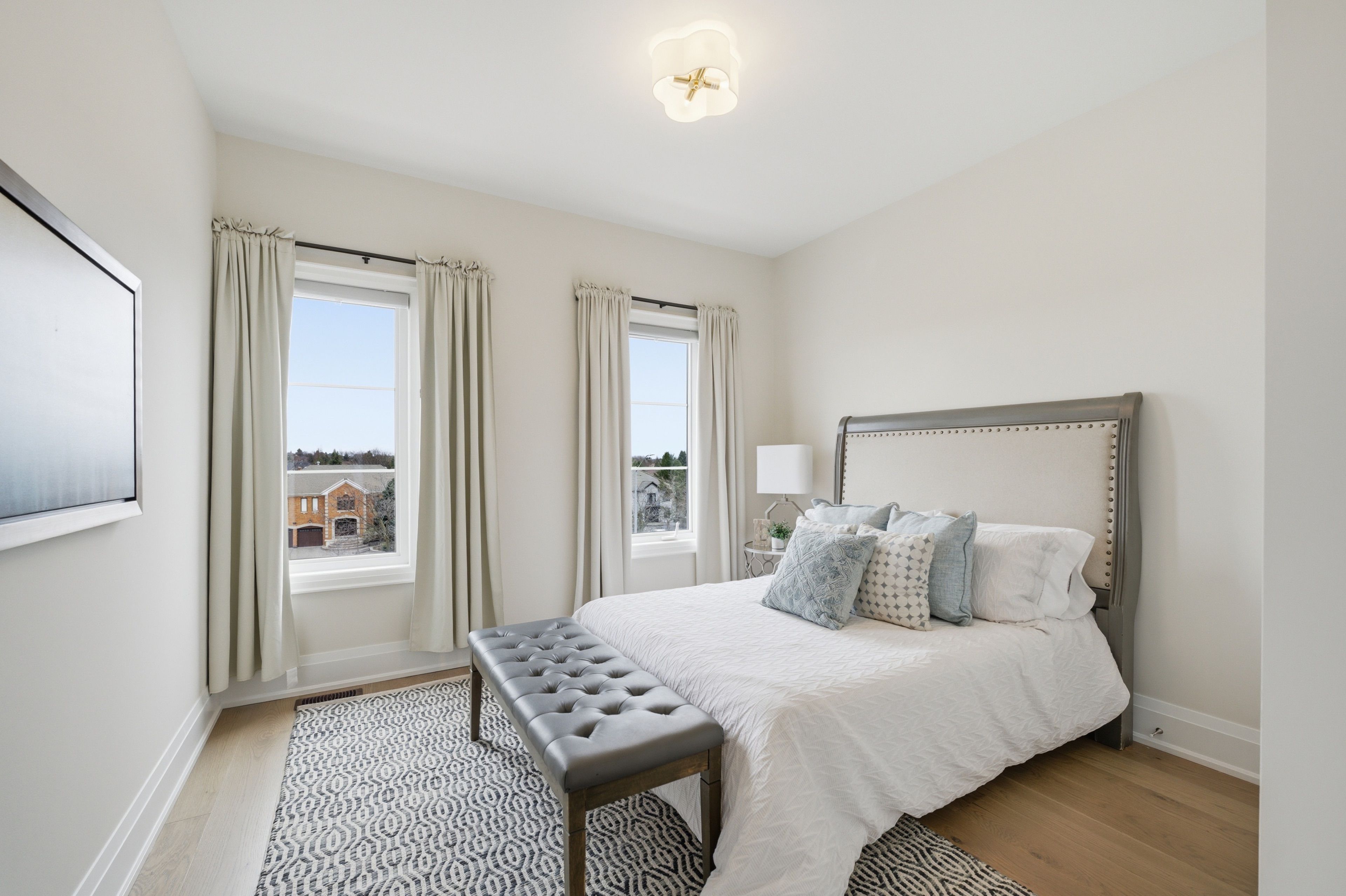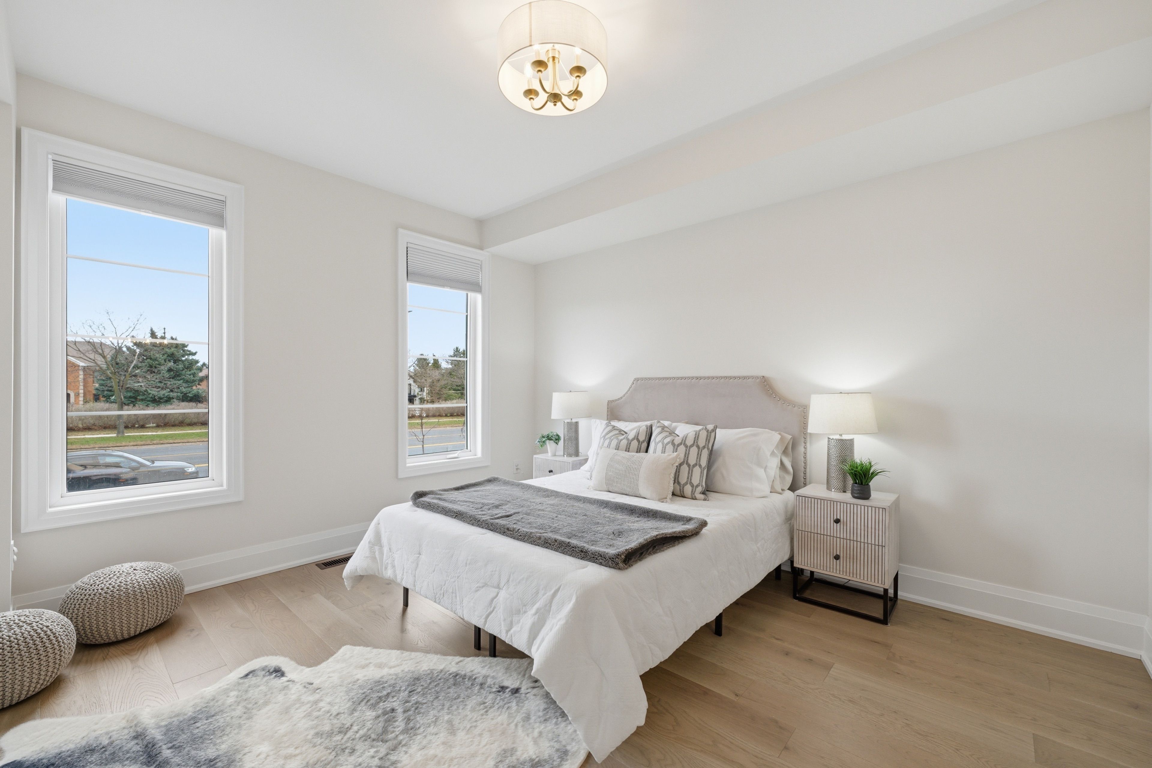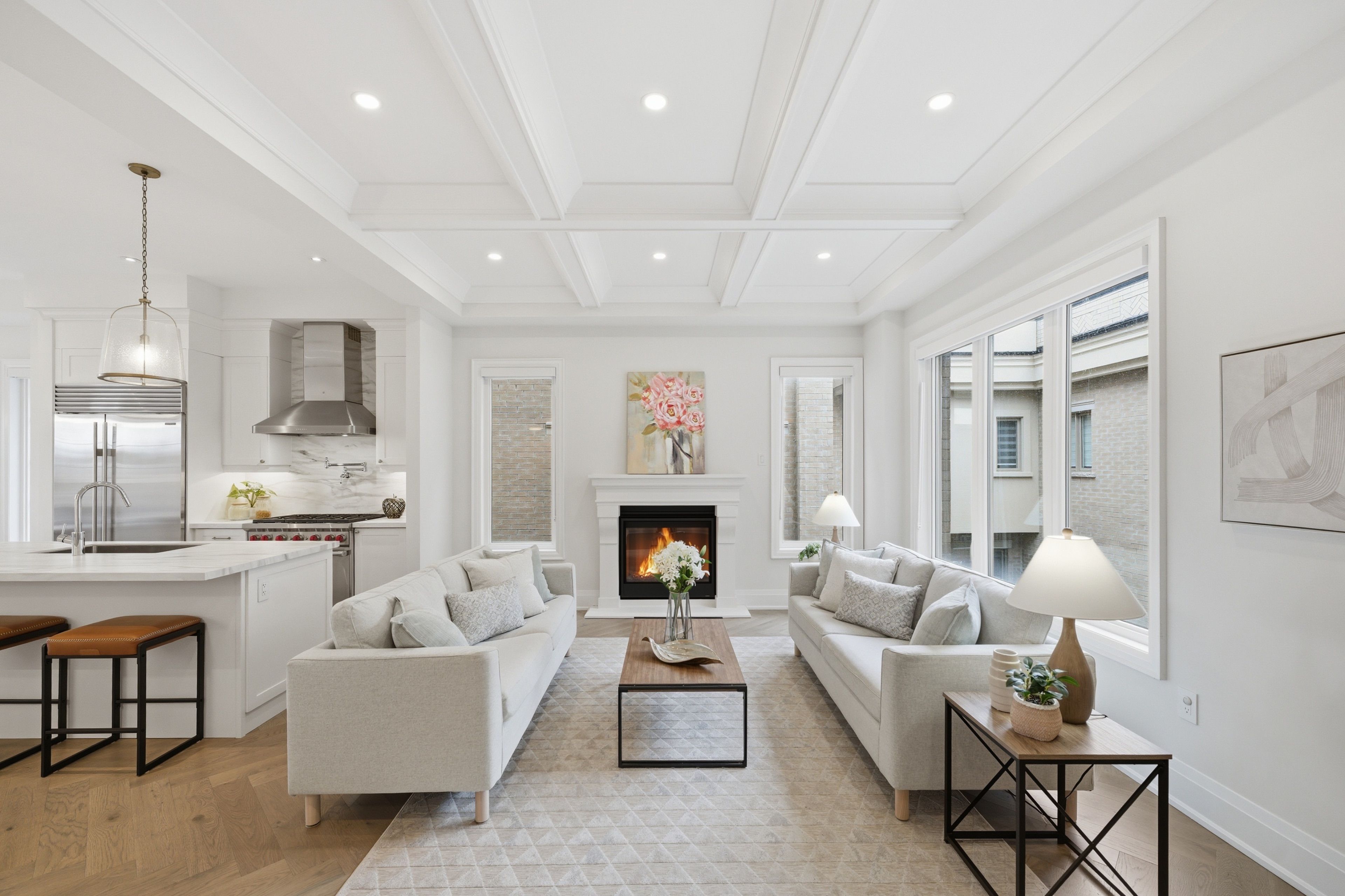 A rare offering that blends sophisticated design with unmatched versatility-this sun-filled end-unit townhome lives like a semi-detached residence and offers the rare convenience of a two-car garage. Inside, you'll find approximately 3,470 sq. Ft. Of refined living space, complemented by a beautifully finished, fully detached one-bedroom, 584 sq. Ft. Coach house. Inside, elevated design meets everyday comfort. The main level showcases 10-foot ceilings and rich herringbone white oak flooring, paired with a striking waffle ceiling that creates a refined architectural statement within the open-concept living space. At the heart of the home, a true chef's kitchen features premium appliances, including a sub-zero refrigerator, a wolf six-burner gas stove, and an asko dishwasher-crafted for both intimate dinners and grand entertaining. The upper level retreat is nothing short of spectacular. The primary suite features soaring ceilings, a spacious walk-in closet, and a spa-inspired five-piece ensuite with a deep soaker tub-your private escape at the end of the day. Two additional bedrooms, a beautifully appointed main bath, and a thoughtfully designed laundry room with quartz surfaces complete the space. What truly sets this property apart is the detached coach house - fully self-contained with its own entrance. At 584 sq. Ft., it is ideal for extended family, a live-in nanny, guest accommodations, or income potential. Located within the highly sought-after bayview secondary school catchment and close to richmond hill montessori, as well as hillcrest mall, highways 404 and 407, parks, transit, and everyday amenities, this property offers an exceptional balance of luxury and convenience. This is luxury living-reimagined.