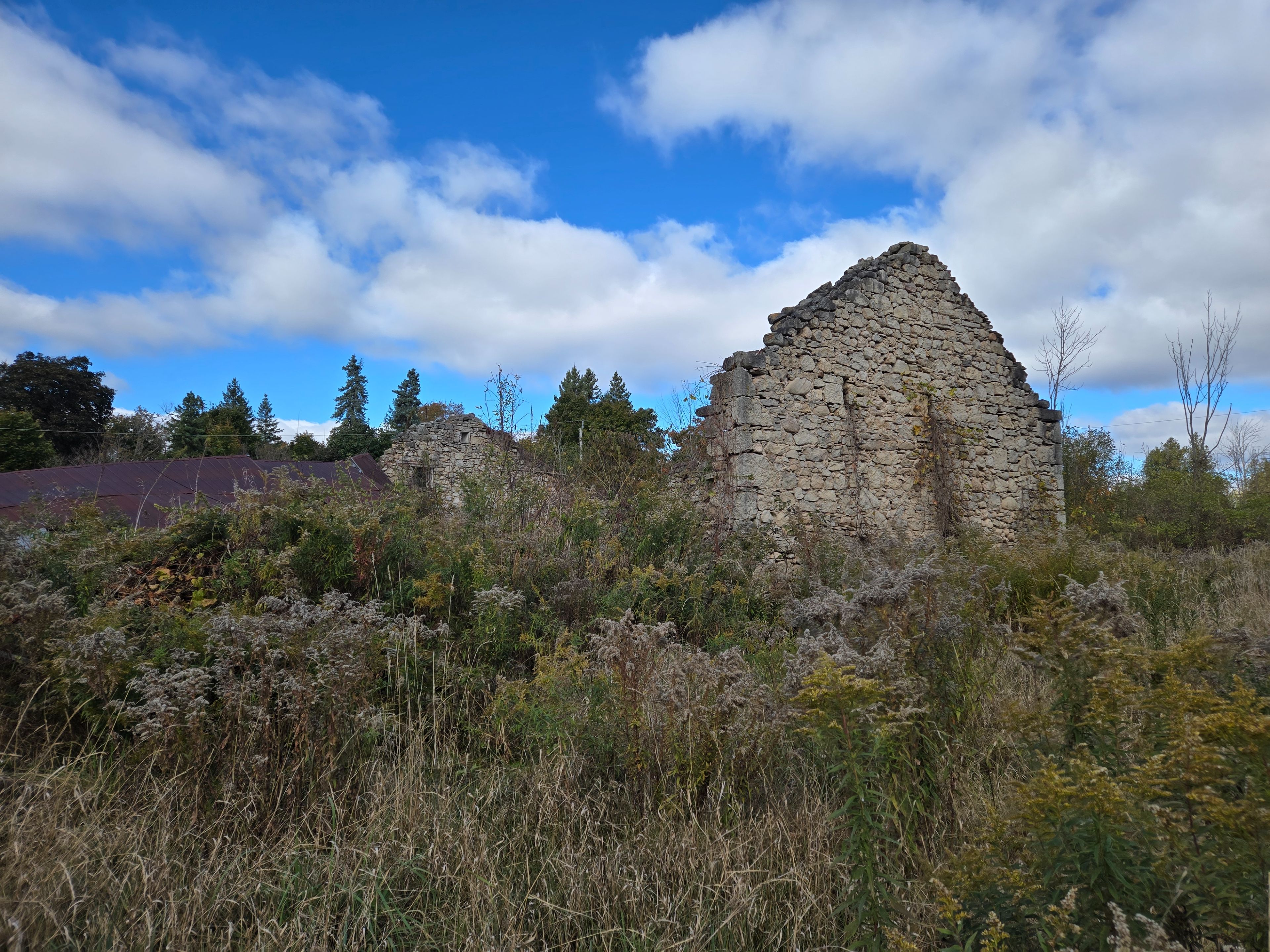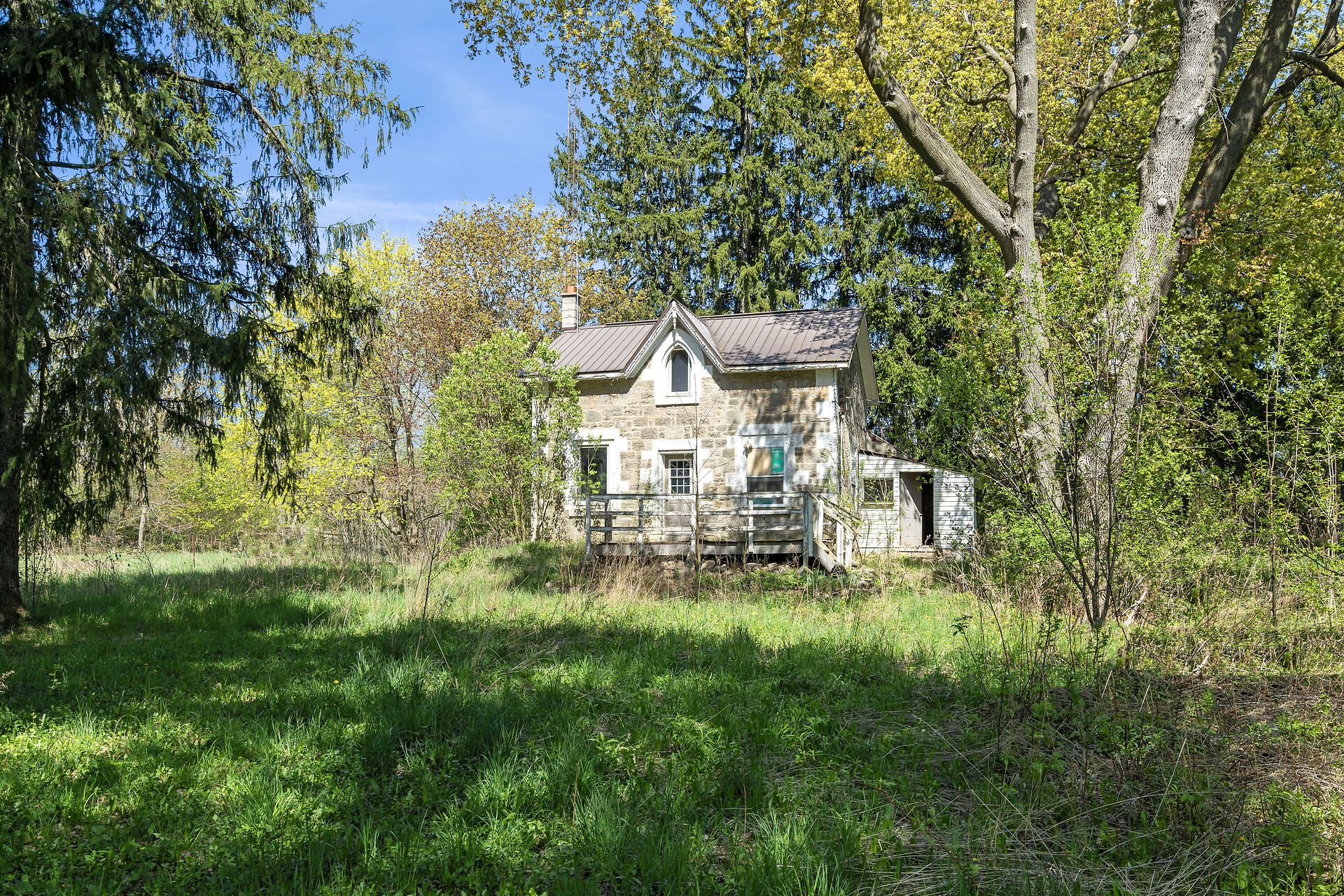 83 acre farm land opportunity - iconic stone farmhouse, forest & fields. This 83-acre-property - located just south of hwy 401 and north of campbellville on a paved road - offers a compelling blend of open fields and mature forest. It creates an idyllic setting for a private estate, retreat, or the revival of a working homestead farm. Many years ago, the fields were in crops and pasture where horses once roamed. Padlocks existed in 2022. With vision and care, this former farmstead can be brought back to life - for crops or equestrian uses. At the heart of the property stands an 1890 ashlar stone, 1 1/2 storey farmhouse that has withstood the test of time, proudly retaining the timeless beauty of its original stone exterior. Renovated in the 1950's, it presents an exceptional opportunity to restore, renovate or incorporate its impressive facade into a truly magnificent custom estate home feature. Also on the property are the distinctive ruins of a grand 1890's stone bank barn. The barn's enduring footprint offers lots of options. Zoned a2, the property includes a very small portion of wetland in the northern area and killbride creek running through the northwest corner, bordering the pioneer creek trail. The land is not within the nec mapping, offering fewer building restrictions. This is a once-in-a-lifetime opportunity to own legacy farmland rich in history, natural beauty and endless future potential. Zoned residential and a2 with no farm credit applied. The property may be subject to hst. The property has not been farmed for a long term. Two lots have been previously severed from the property. Frontage calculated by property width to the north and southern lot lines. Centrally located near milton, campbellville, highway 6 and the 401, this rare offering combines natural beauty, rich history, and the potential to restore a working farm or develop a showpiece country estate.