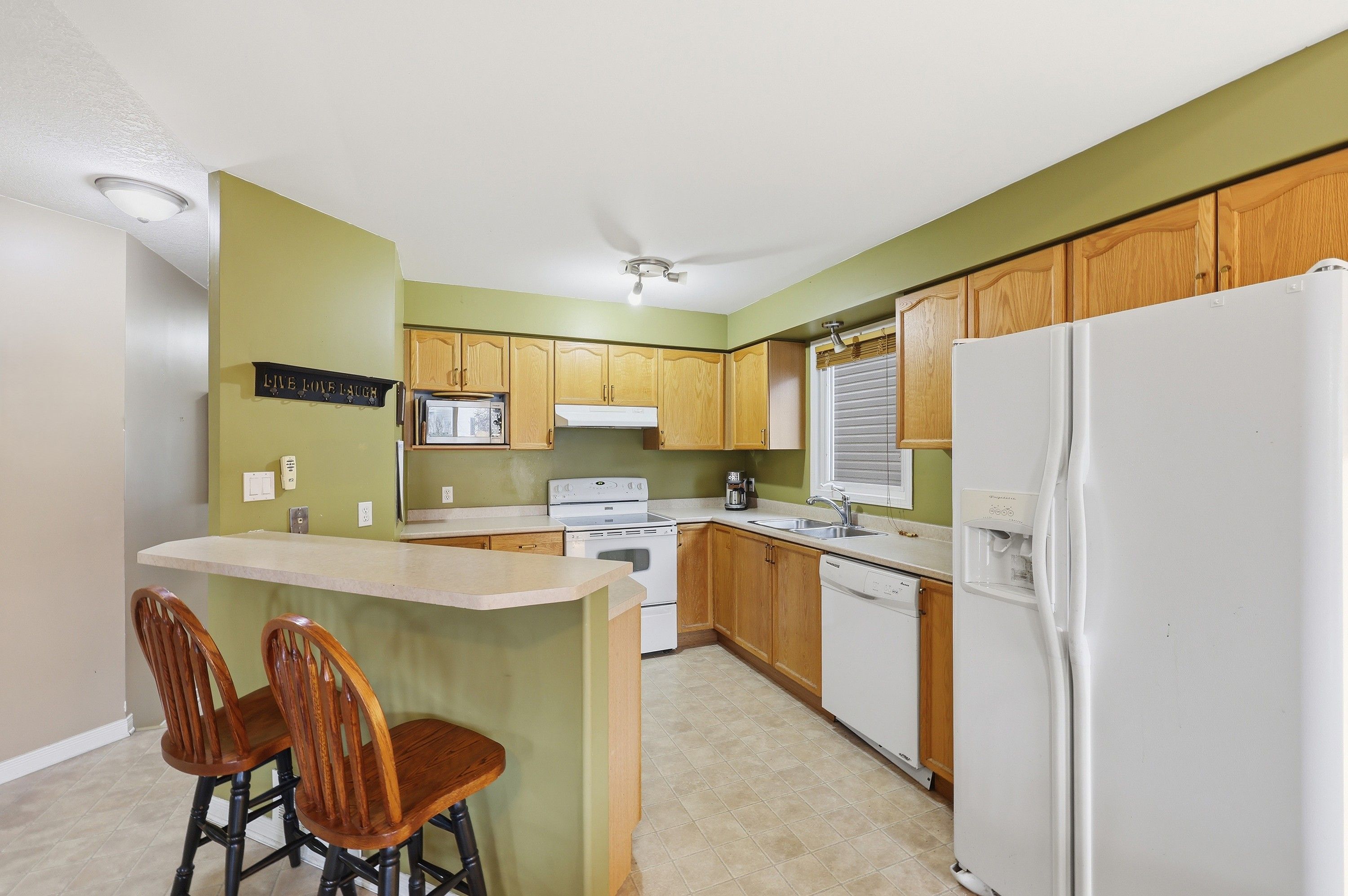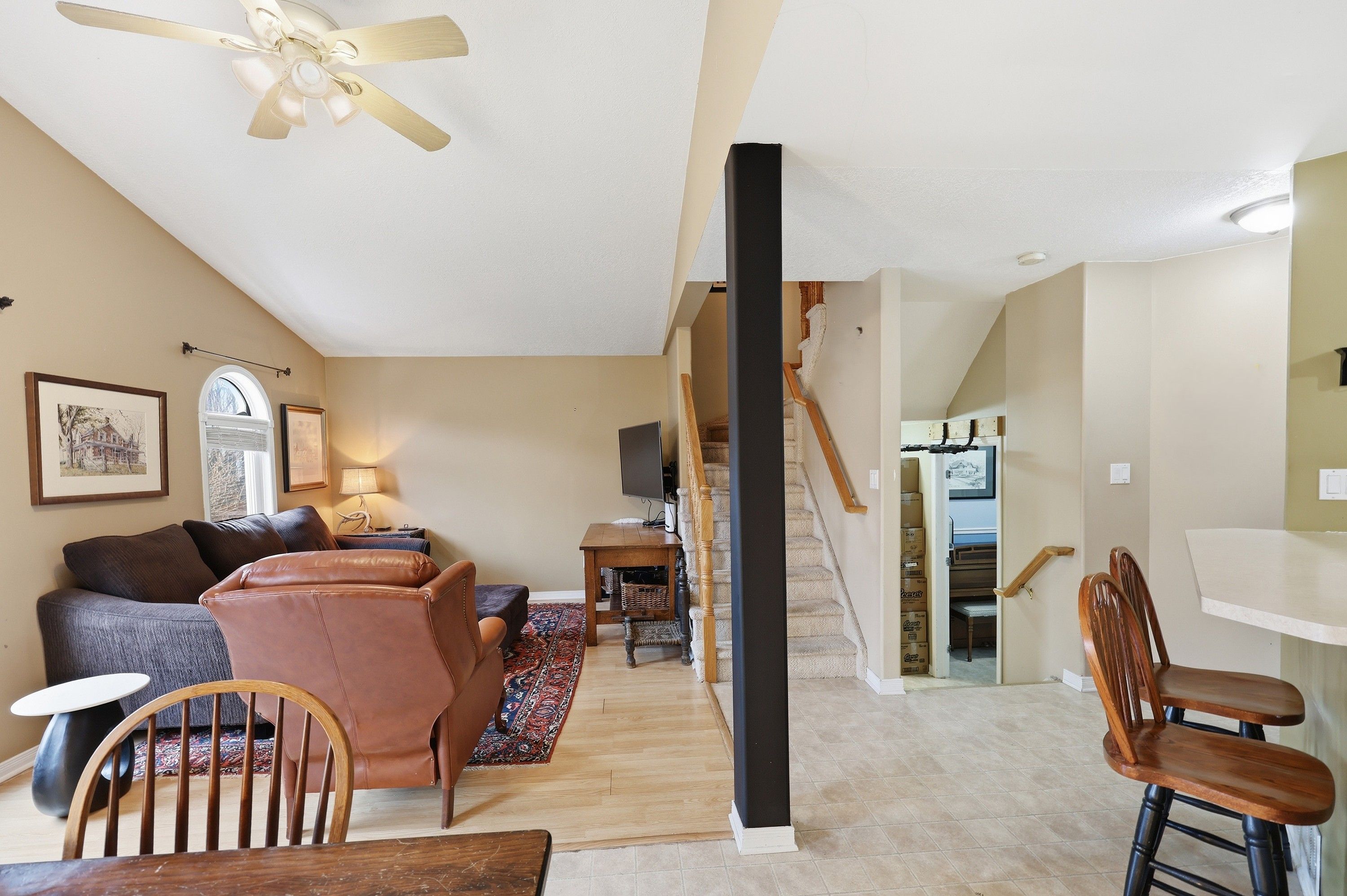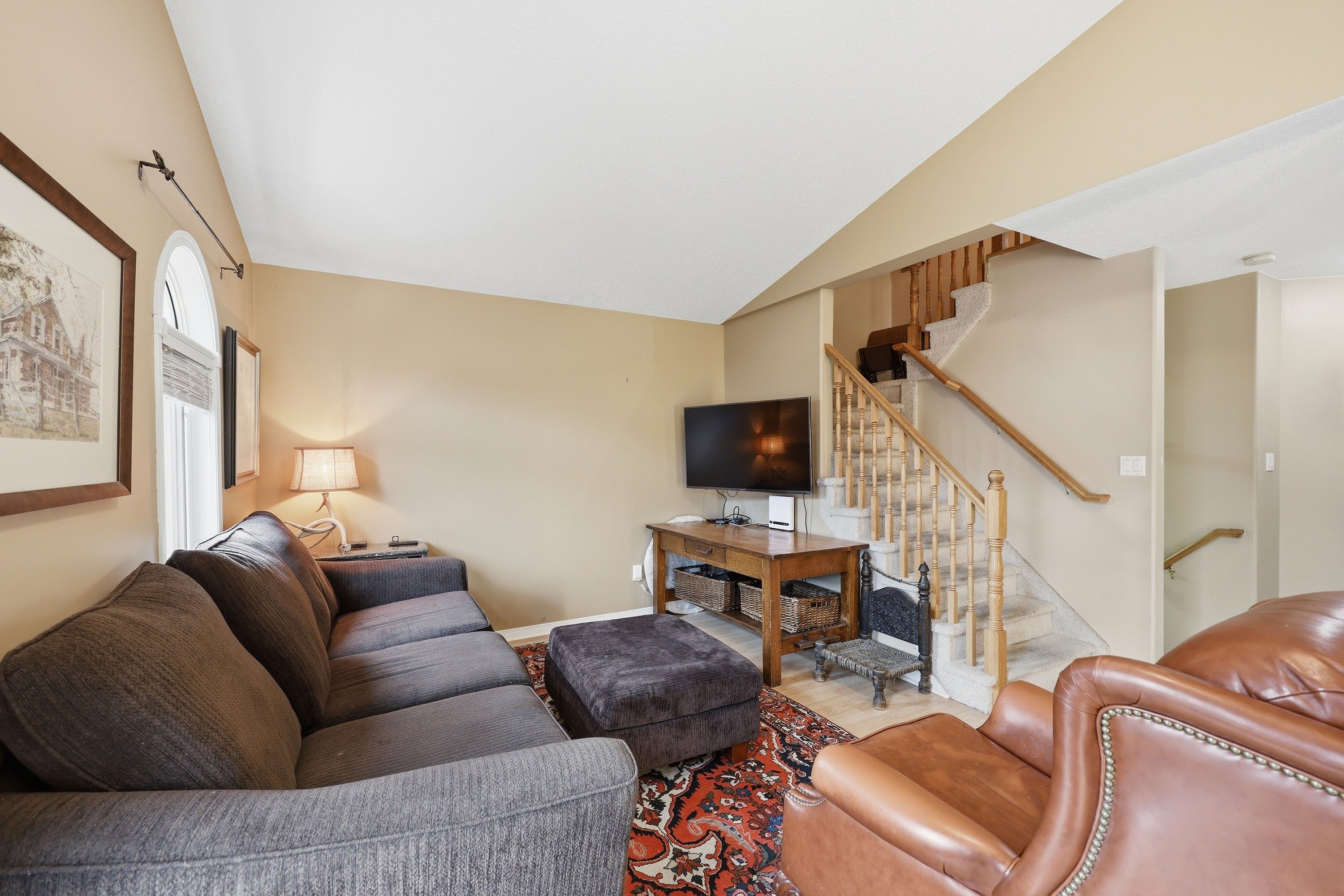 • Bright open concept main floor with vaulted ceilings and a functional kitchen.