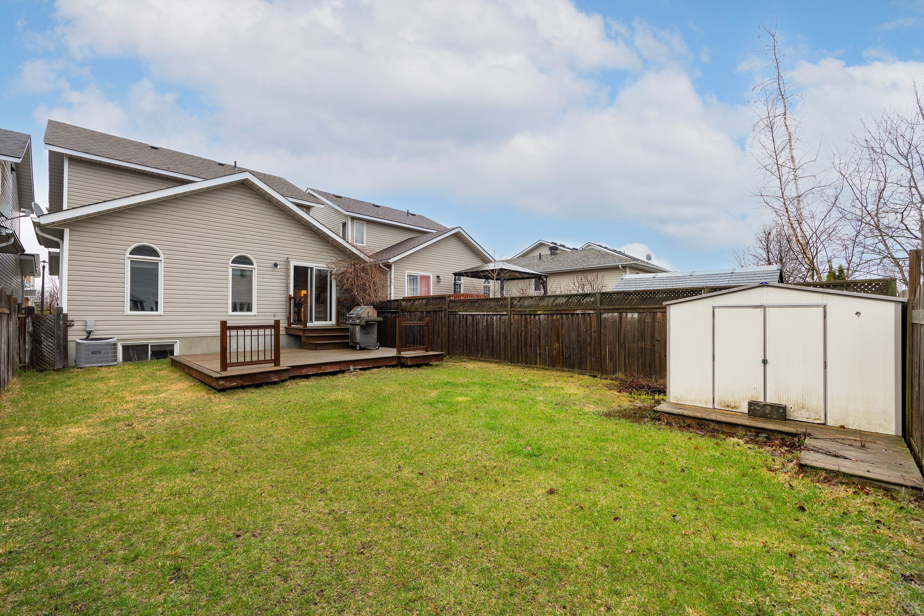 Welcome to this beautiful 2 storey home located in kingston's desirable east end, just minutes from cfb kingston. This move in ready property offers a smart layout, comfort, and plenty of space for family living. The main floor features a bright open concept design with vaulted ceilings that create a spacious feel. The living room includes laminate flooring, while the functional kitchen offers plenty of cupboard space and a convenient eating bar. The dining and living areas flow nicely together, perfect for everyday living and entertaining. You will also find a bright main floor office, a 2 piece bathroom, and inside entry from the garage. Upstairs, the home offers three comfortable bedrooms, including a large primary bedroom with a walk in closet and private ensuite bathroom. Two additional bedrooms and a full main bathroom complete this level, providing space for the whole family. The lower level is fully finished and includes a rec room, a fourth bedroom, and a laundry area, offering extra space for guests, hobbies, or a growing family. Step outside to enjoy the fully fenced backyard with a 14 x 16 deck, a storage shed, and a gas bbq connection. The bbq is and shed are included in "as is" condition, making outdoor living even easier. Recent updates include a furnace (2026), front office flooring 2026, front porch aluminum railing and posts (2020), concrete sidewalk (2020) and roof (2018). Located close to schools, parks, shopping, and all east end amenities, this home offers both convenience and lifestyle.