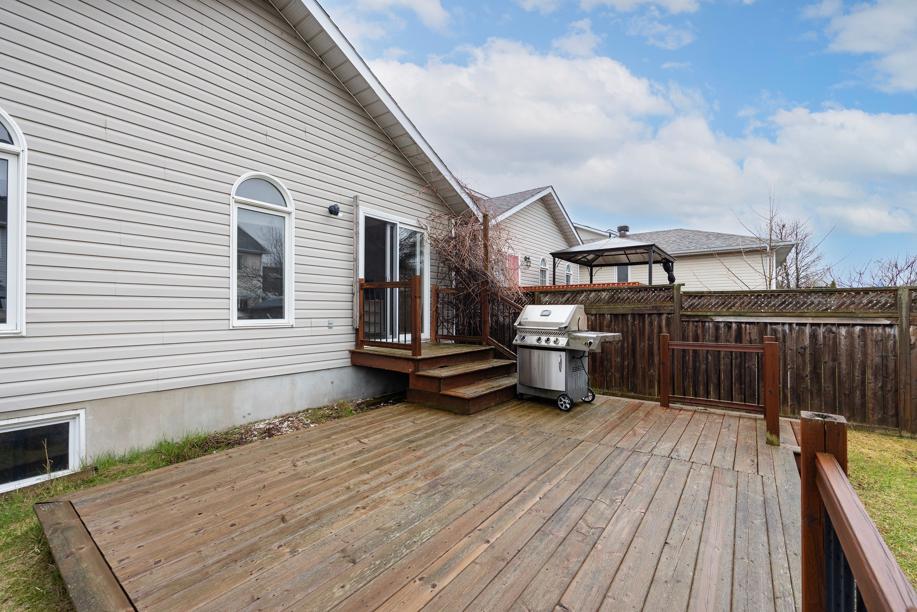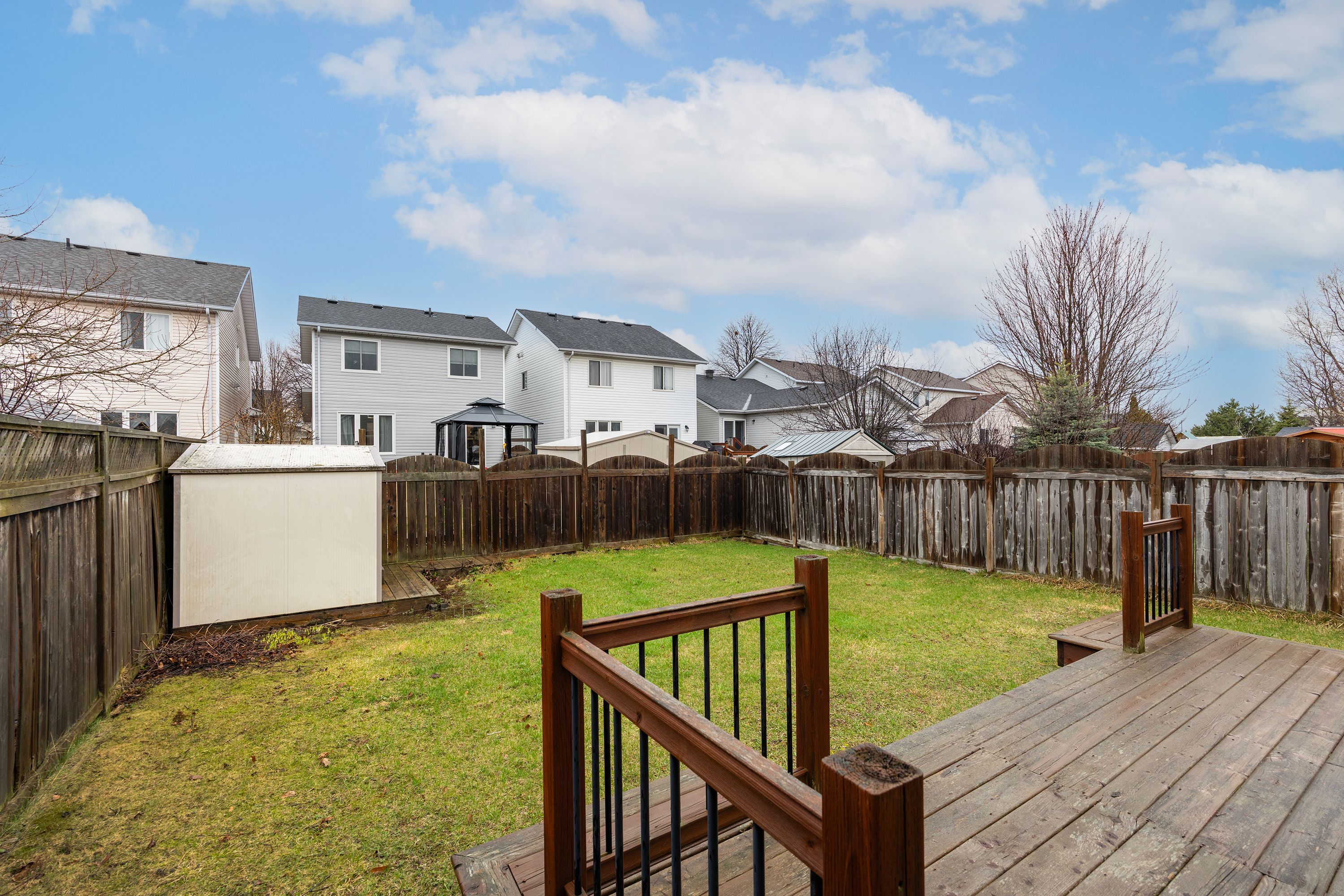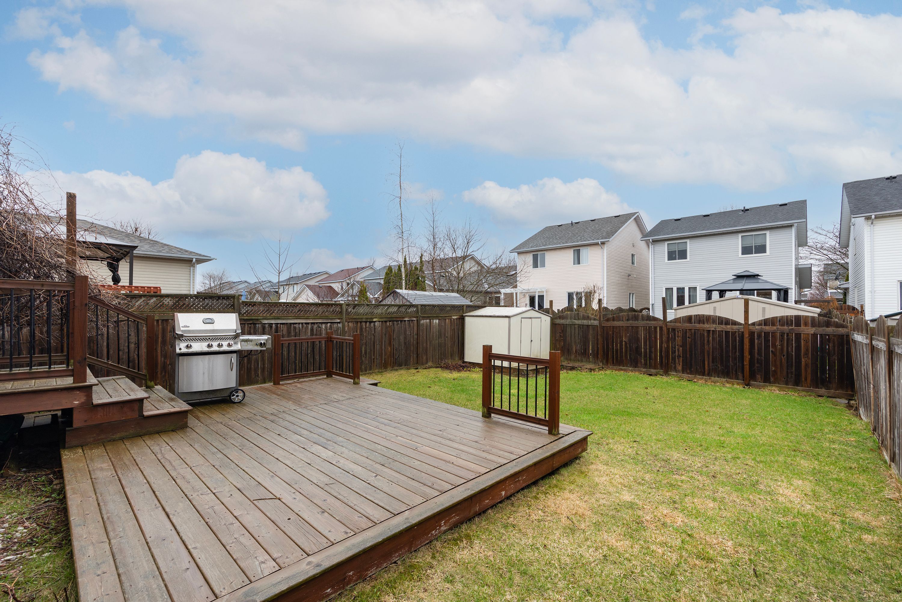 • Fully fenced backyard with a nice deck, storage shed, and gas BBQ connection.
