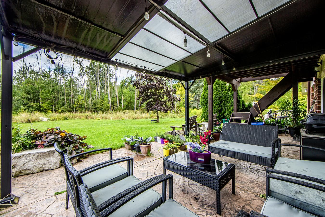 Discover this well-maintained raised bungalow set on a generous countryside lot shy of 1 acre, offering over 2,000 sq. Ft. Of finished living space in a peaceful rural setting. Featuring 3 spacious bedrooms and 2 bathrooms, including a private semi-ensuite off the primary bedroom, this home is designed for comfort and convenience. The open-concept floor plan creates a bright and airy atmosphere, with abundant natural light flowing through both levels. Over $50,000 spent in recent upgrades further enhance the value and comfort of this property. Notable improvements include a new heat pump, a rain soft water filtration system, stylish pot lights both inside and outside the property and a fiberglass roof on the shed for long-term durability. The finished 2-car garage provides versatility for parking, storage, or workshop projects, while the separate entrance to the lower level offers excellent in-law suite potential or additional income opportunity. Outdoors, the property shines with recent landscaping upgrades, including armor stones and hydroseeding for both beauty and functionality. A charming back bridge leads to a private entertaining area complete with a cozy fire pit perfect for quiet evenings or hosting gatherings. With nearly an acre of land, there is ample room for outdoor activities, gardening, or simply enjoying the tranquility of country living. Perfectly located near georgetown, brampton, and mississauga, close to trafalgar road and only 20 minutes to highways 401 and 407, this home offers the best of both worlds - countryside serenity with city convenience. With low utilities, modern upgrades, and a move-in-ready design, this bungalow is the ideal blend of comfort, space, and rural charm.