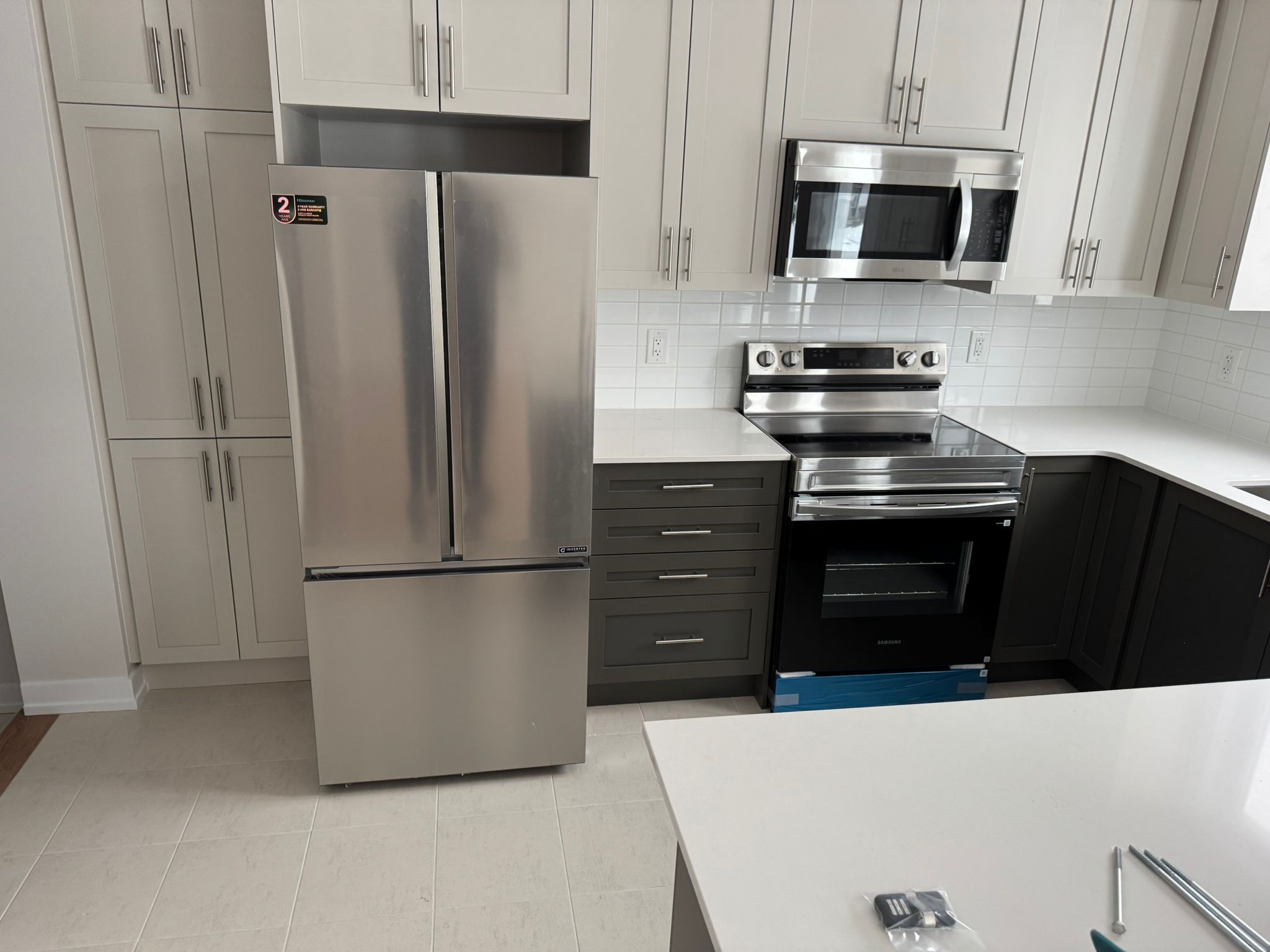 • Open concept kitchen connects to dining and living areas.