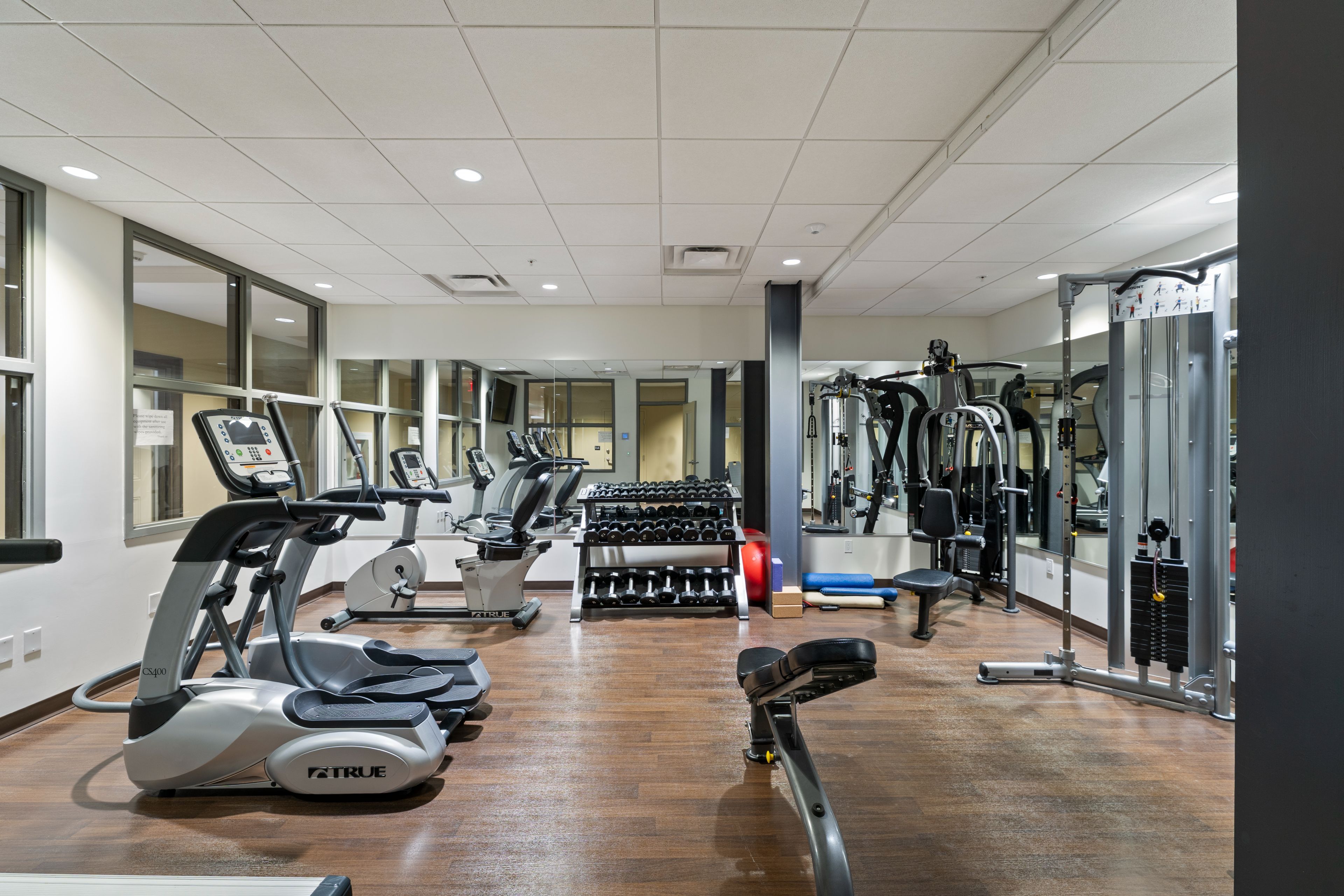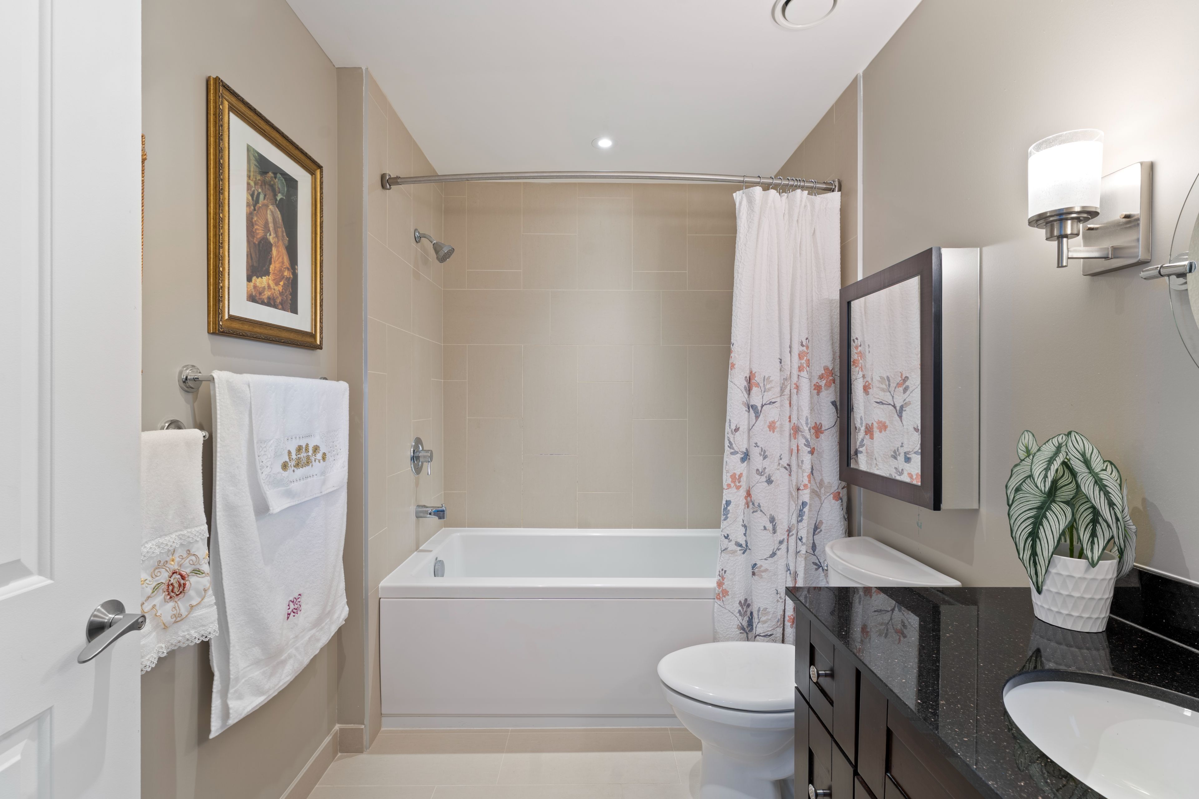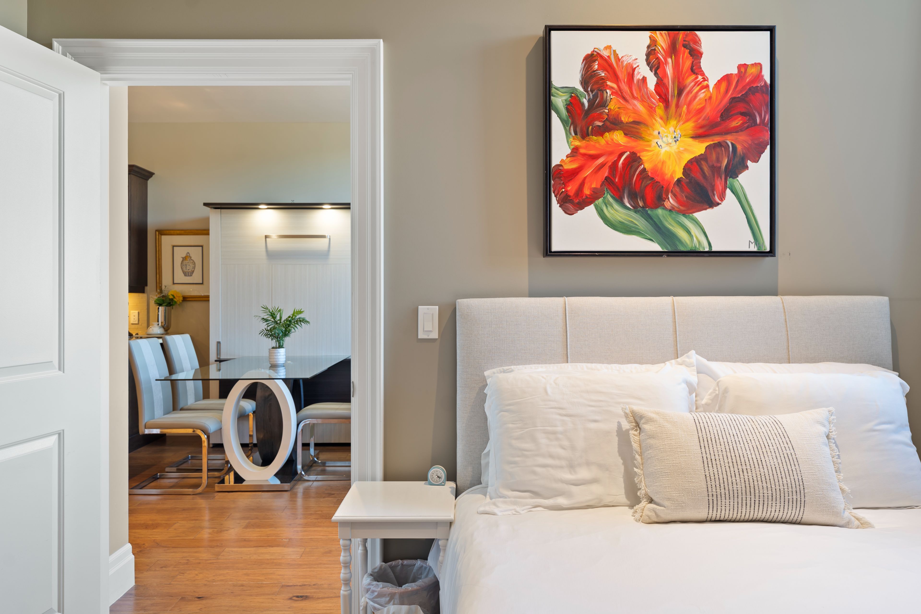 • Spacious suite with nine-foot ceilings and rich hardwood flooring.