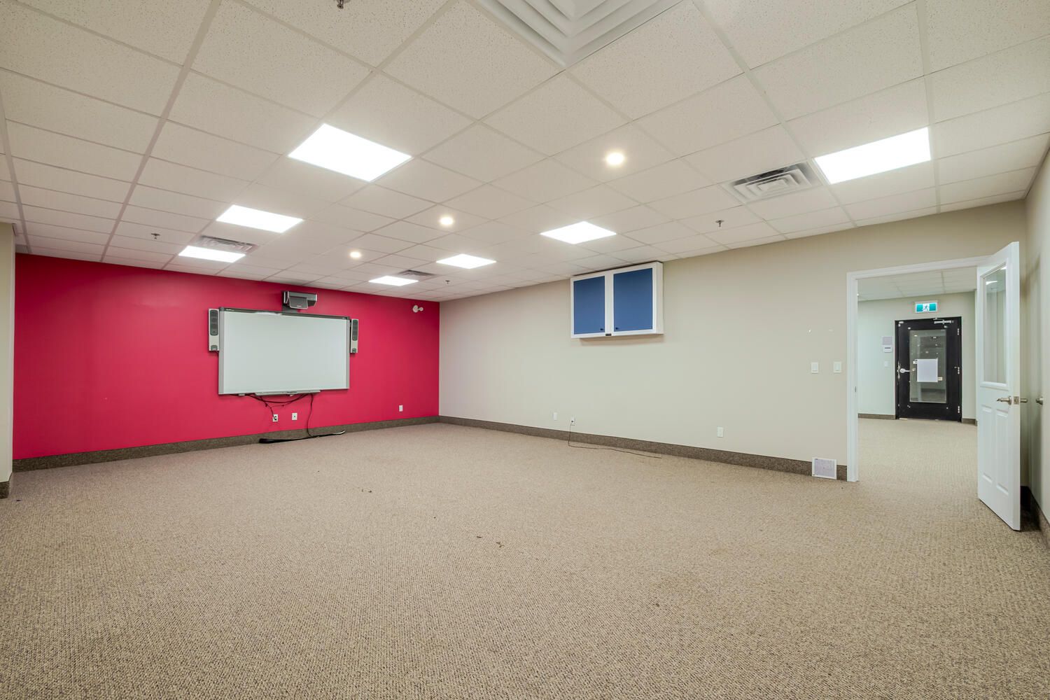 • Main floor unit with large space, three rooms, and included projector.