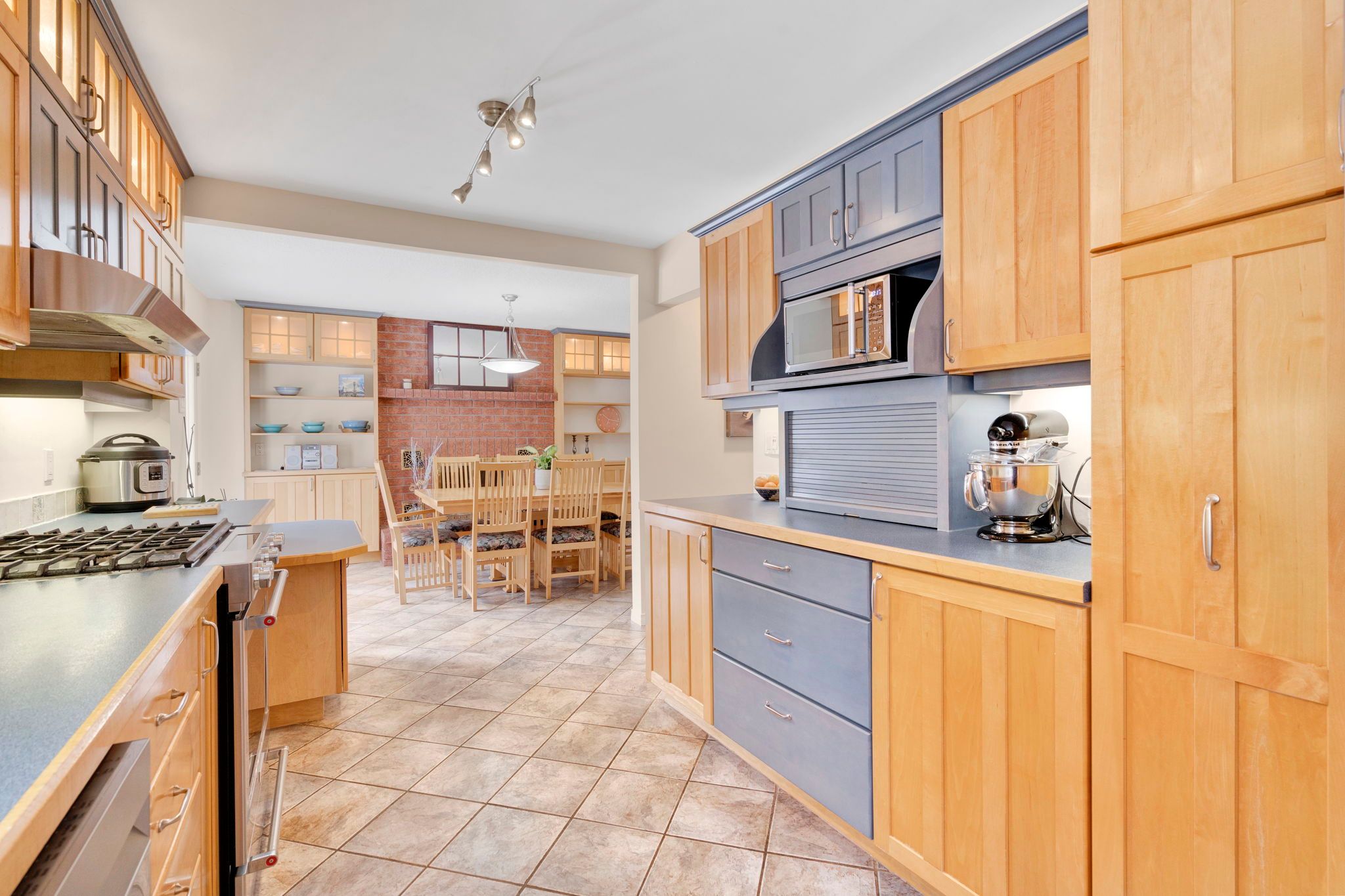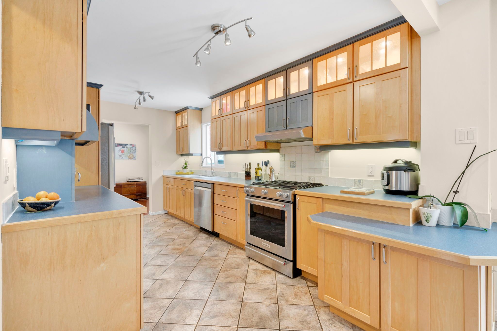 • Galley kitchen offers ample storage and counter space for cooking.