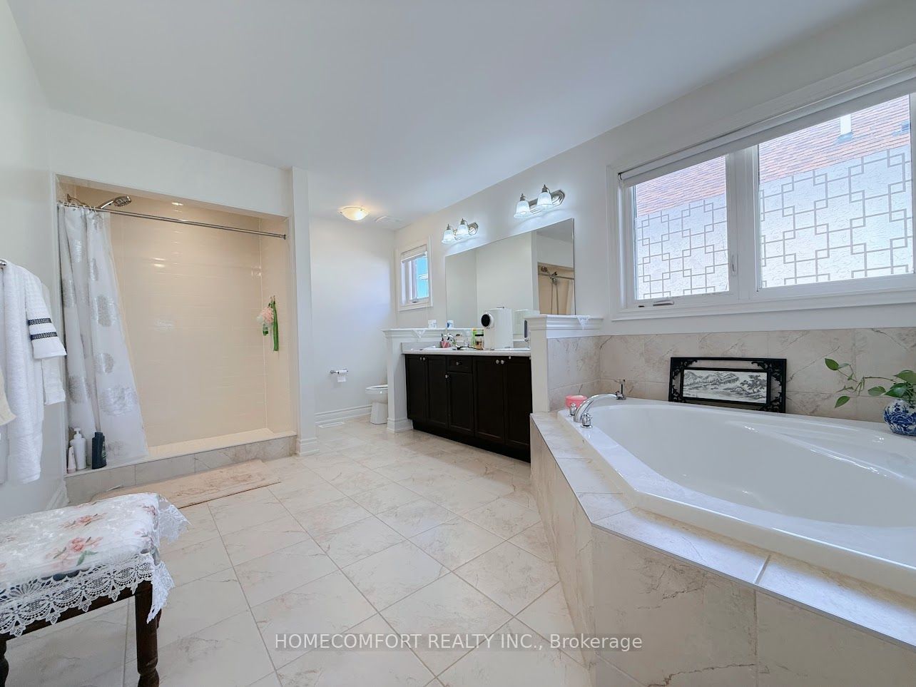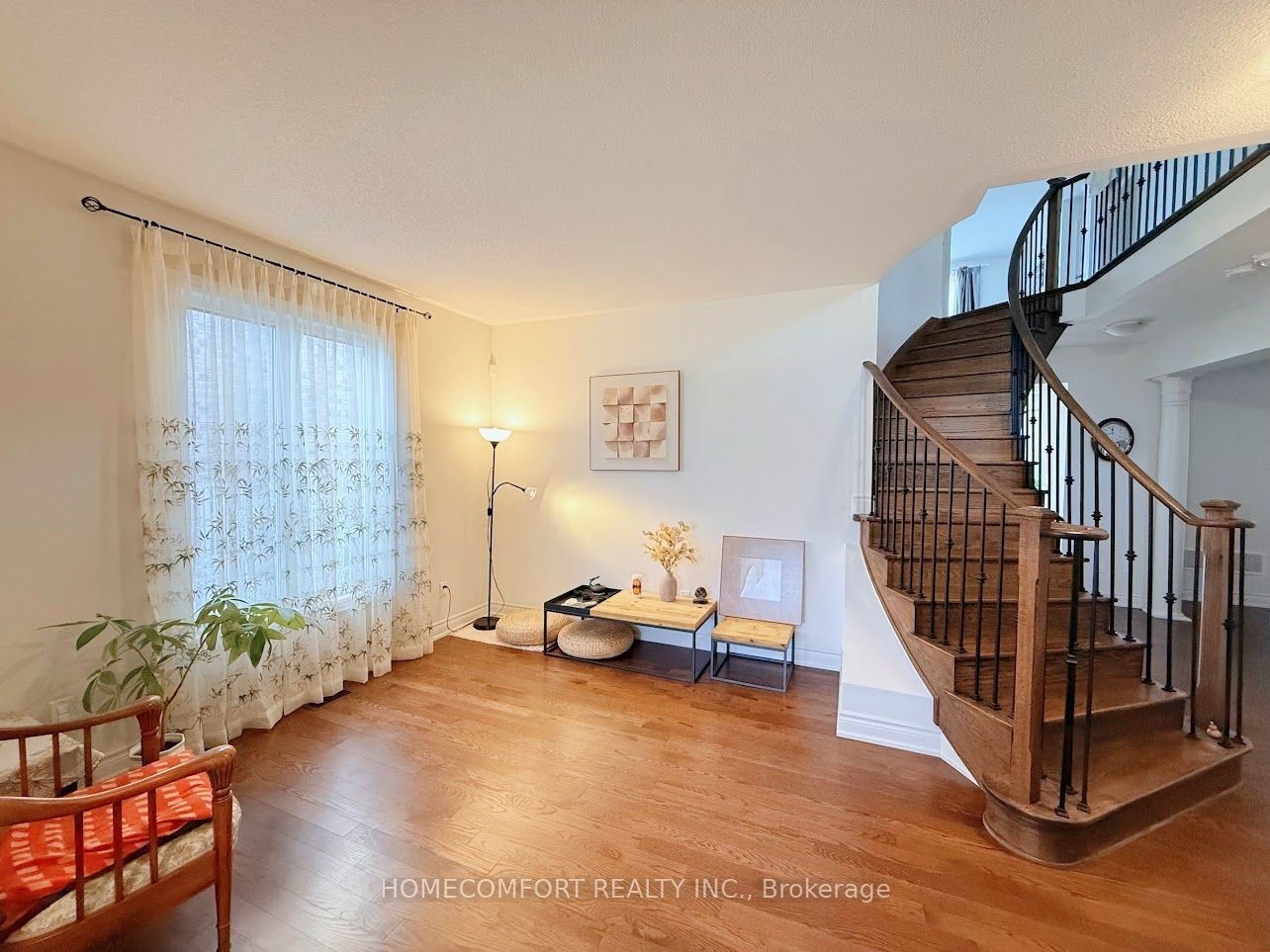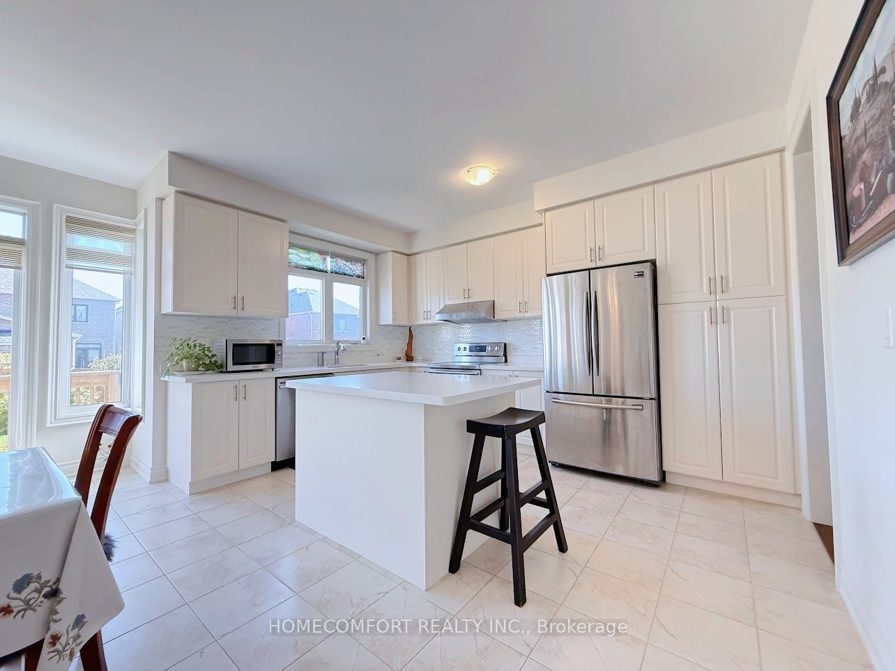 Absolutely stunning 4 bedroom home in bradford. Good view at front, many upgrades, 9' ceilings on main, large windows in basement, family size kitchen with centre island. S/s appliances, hardwood on main floor and upper hallway, double harwood staircase, double door entrance, main floor laundry, master double sided gas fireplace in family room and office. Close to school, shopping, centre, easy access to hw400. Walk to elementary & b. H. Secondary school & parks.