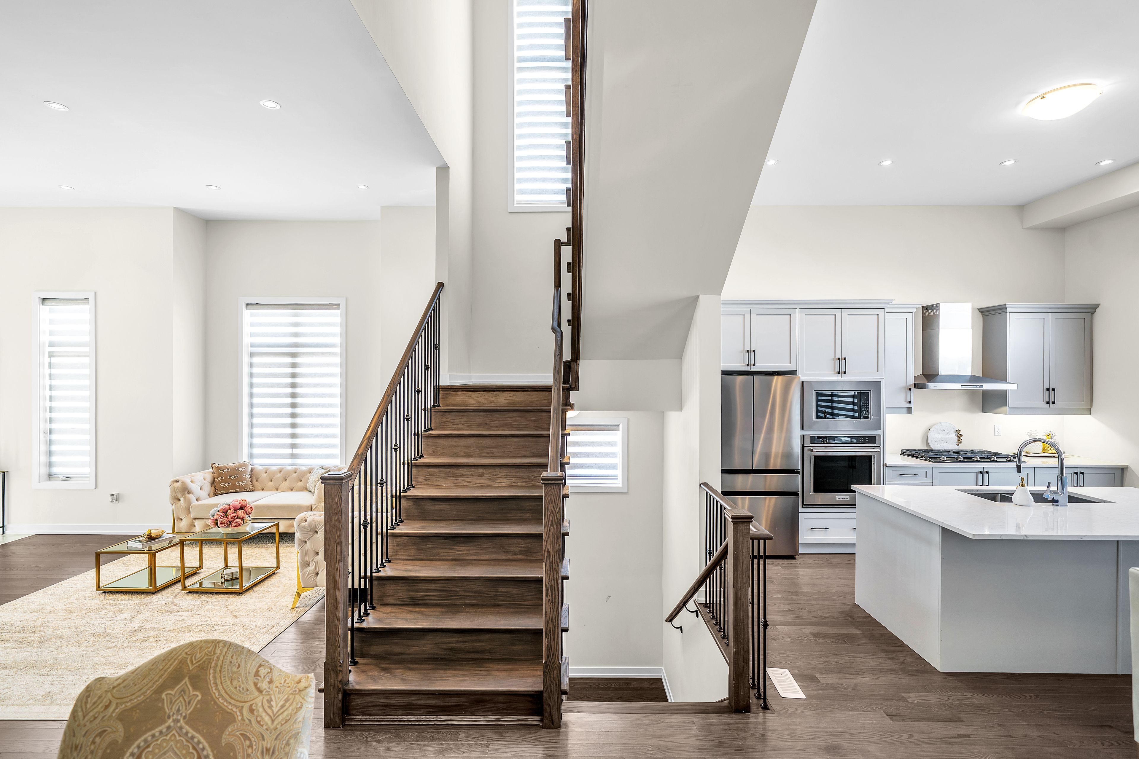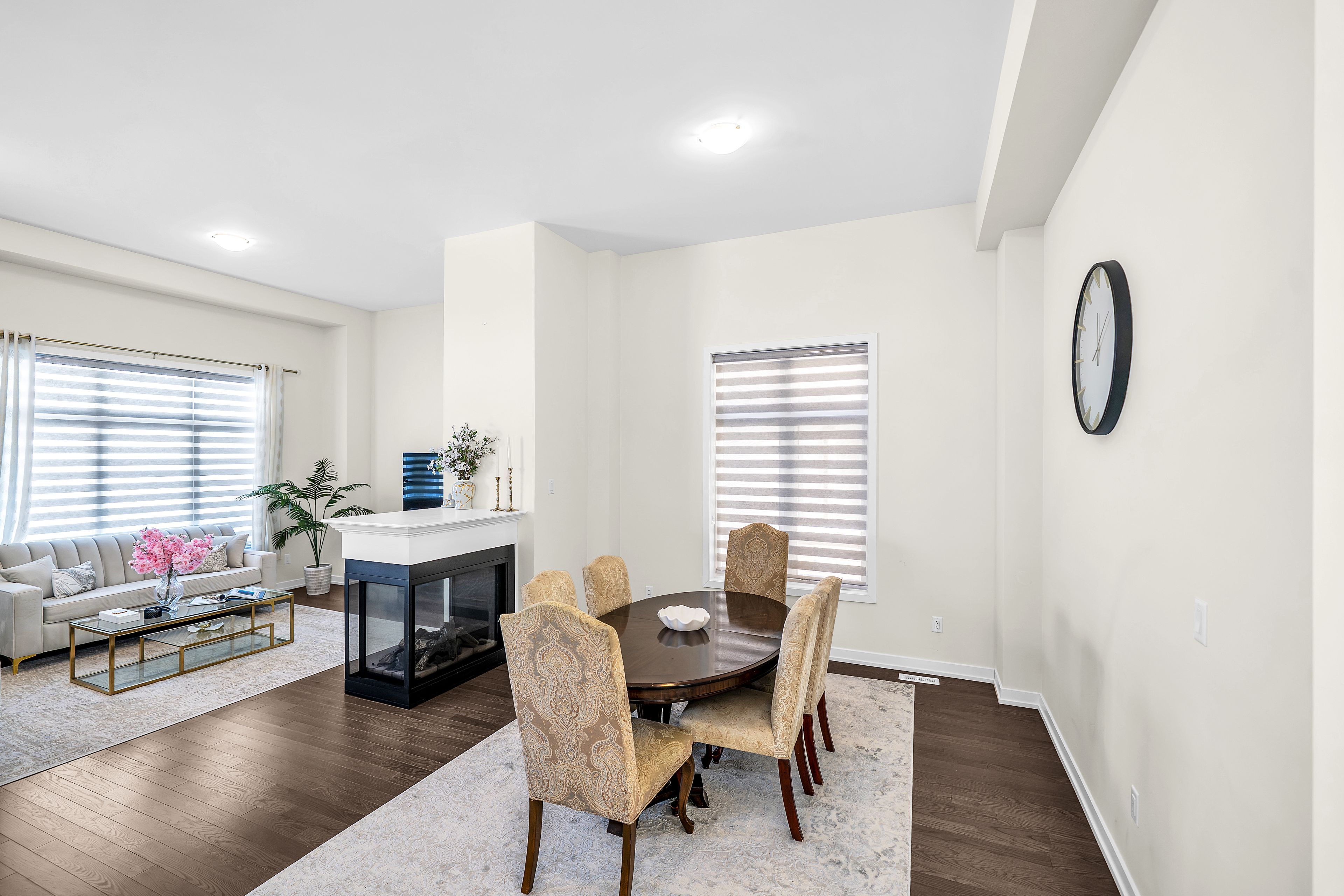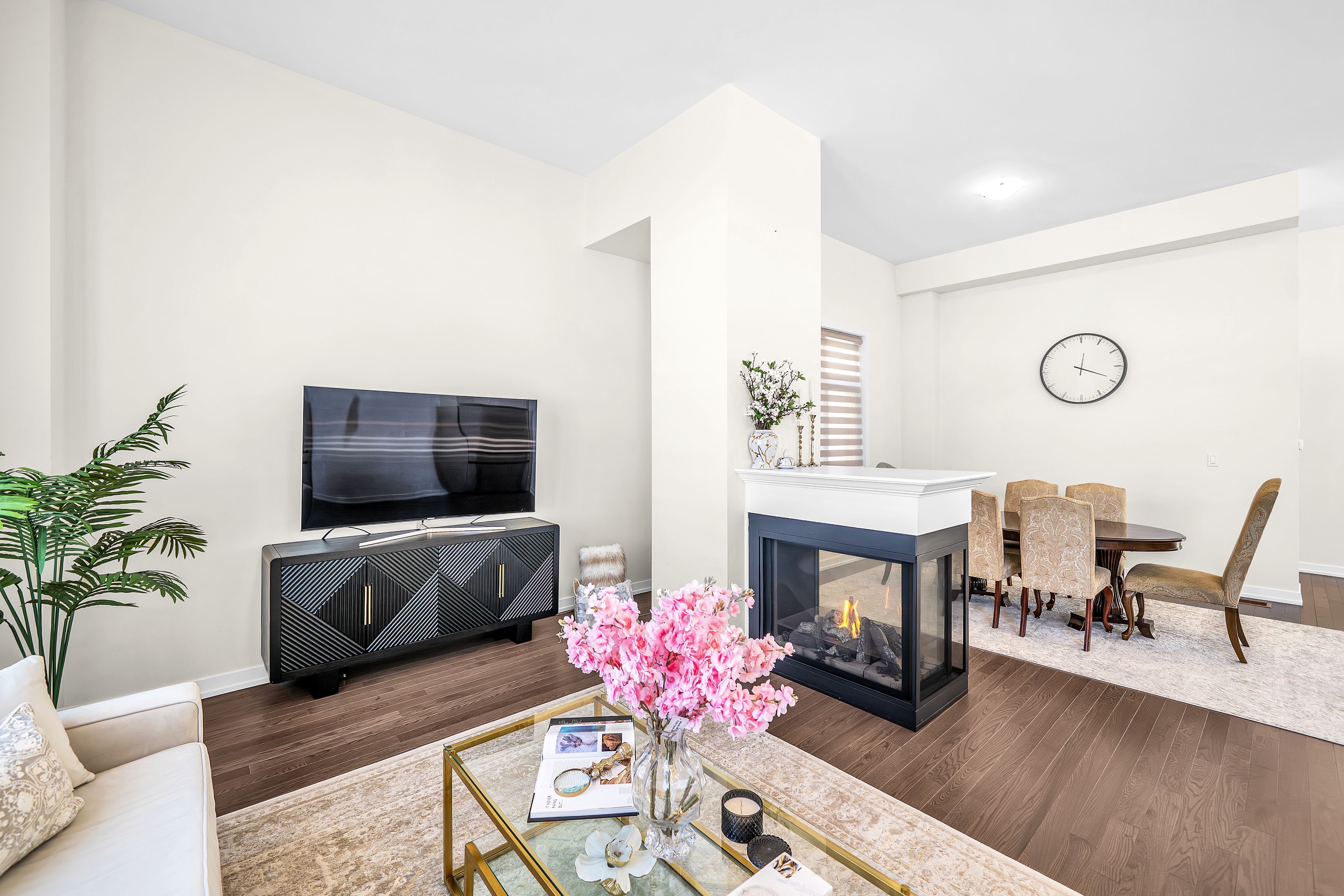 • Bright, open-concept main floor with hardwood flooring and gas fireplace.