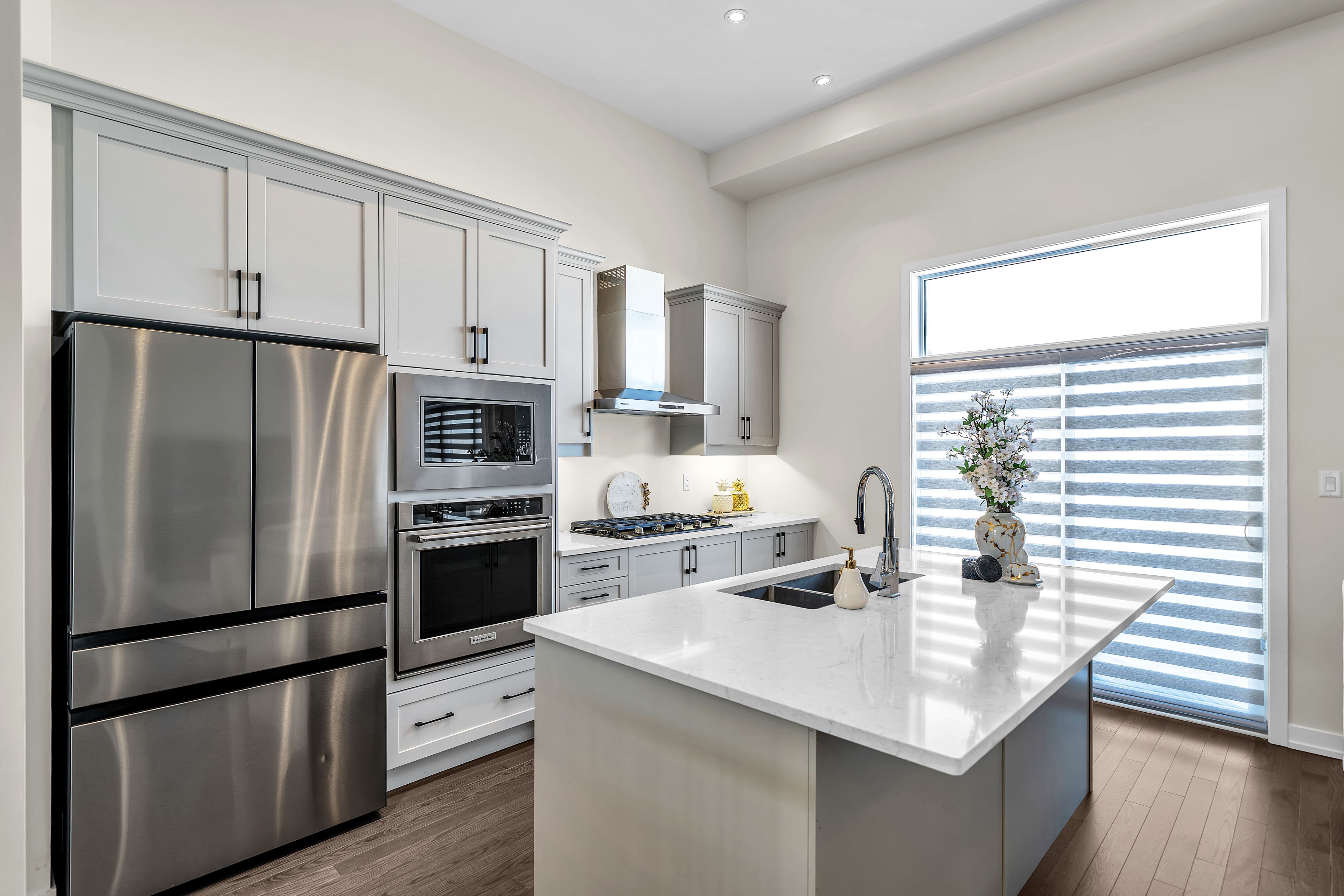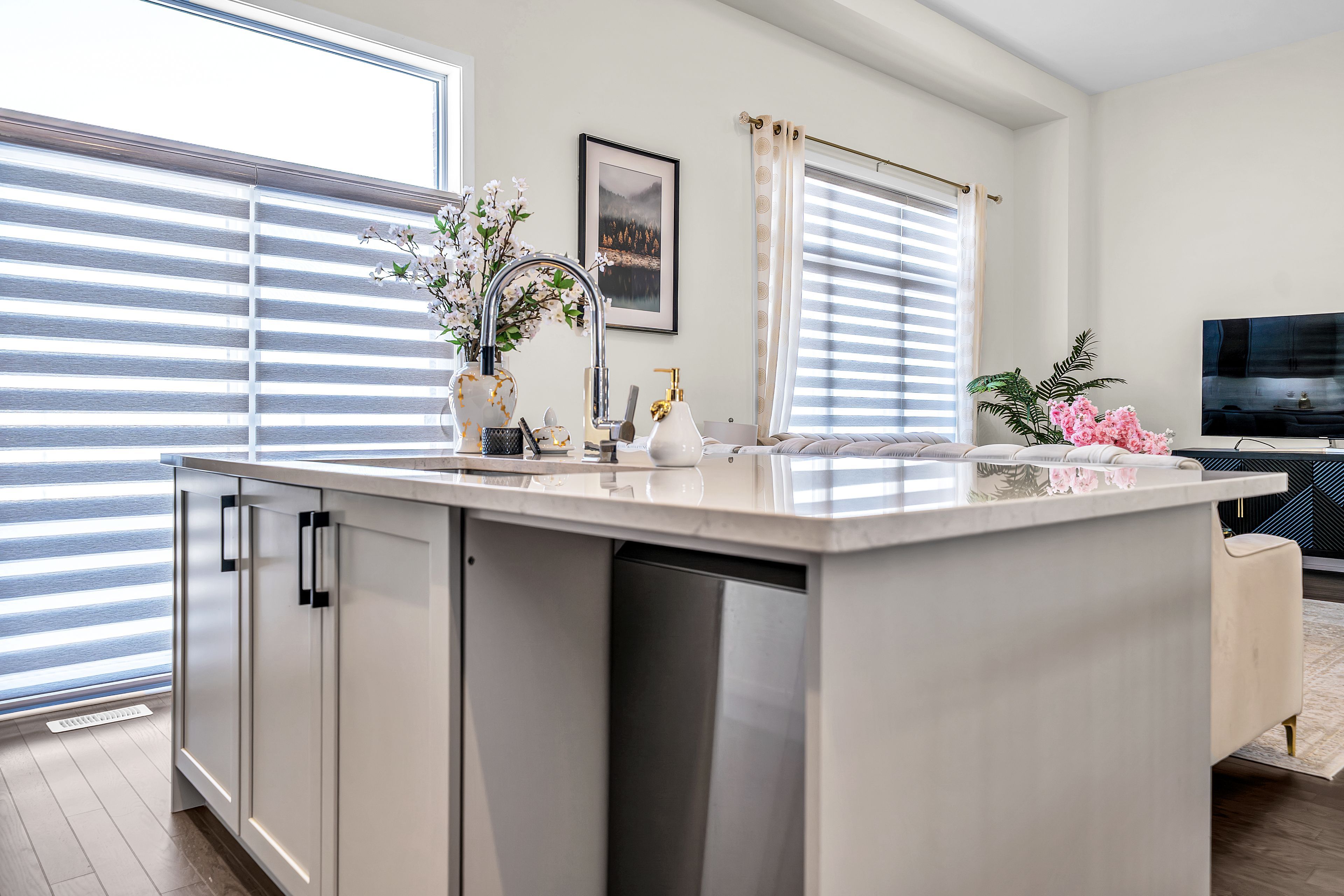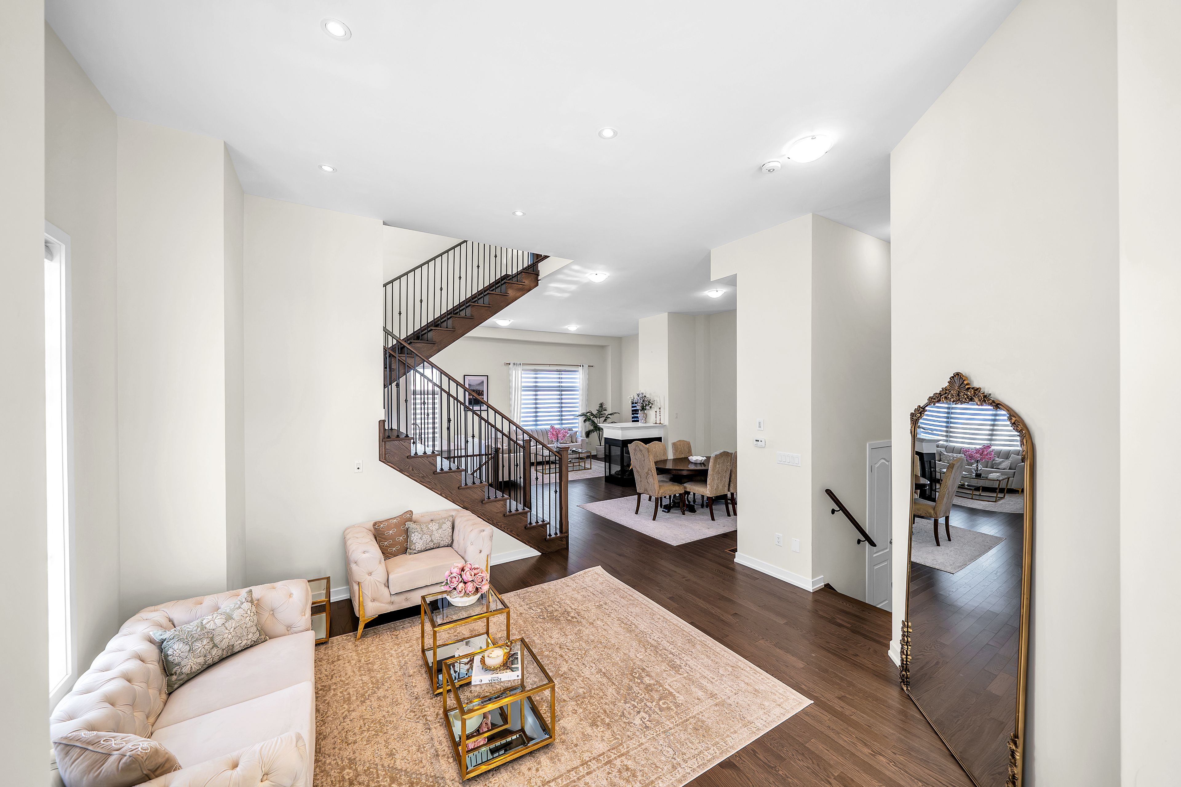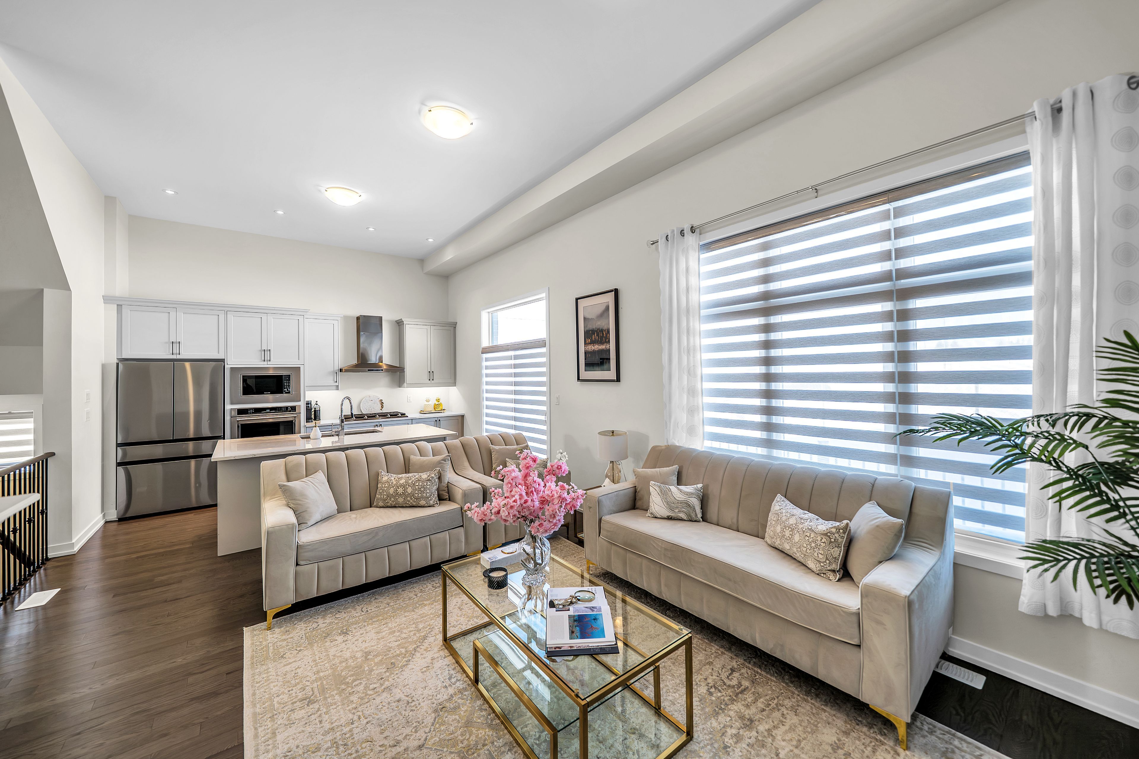 • Bright, open-concept main floor with hardwood flooring and gas fireplace.