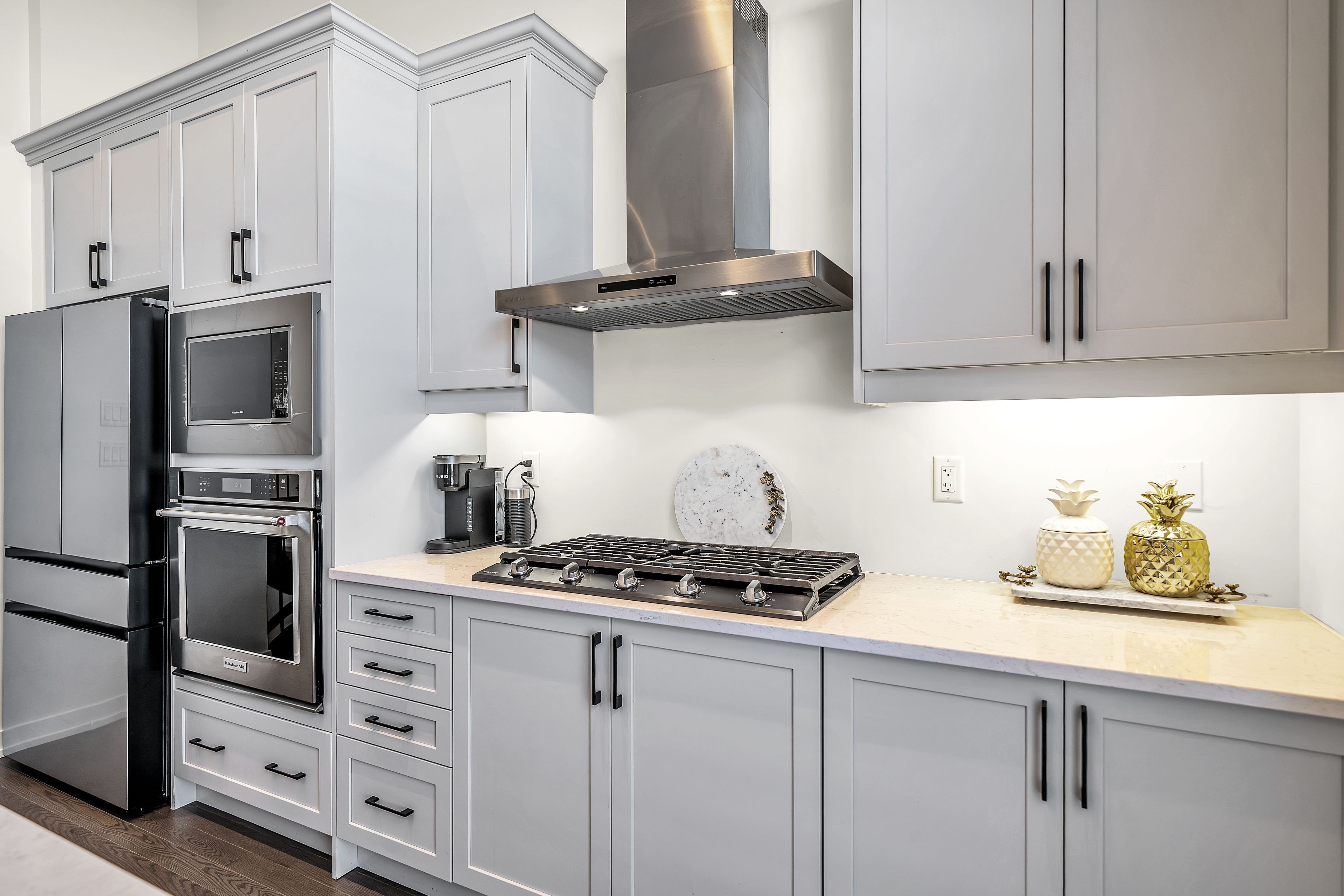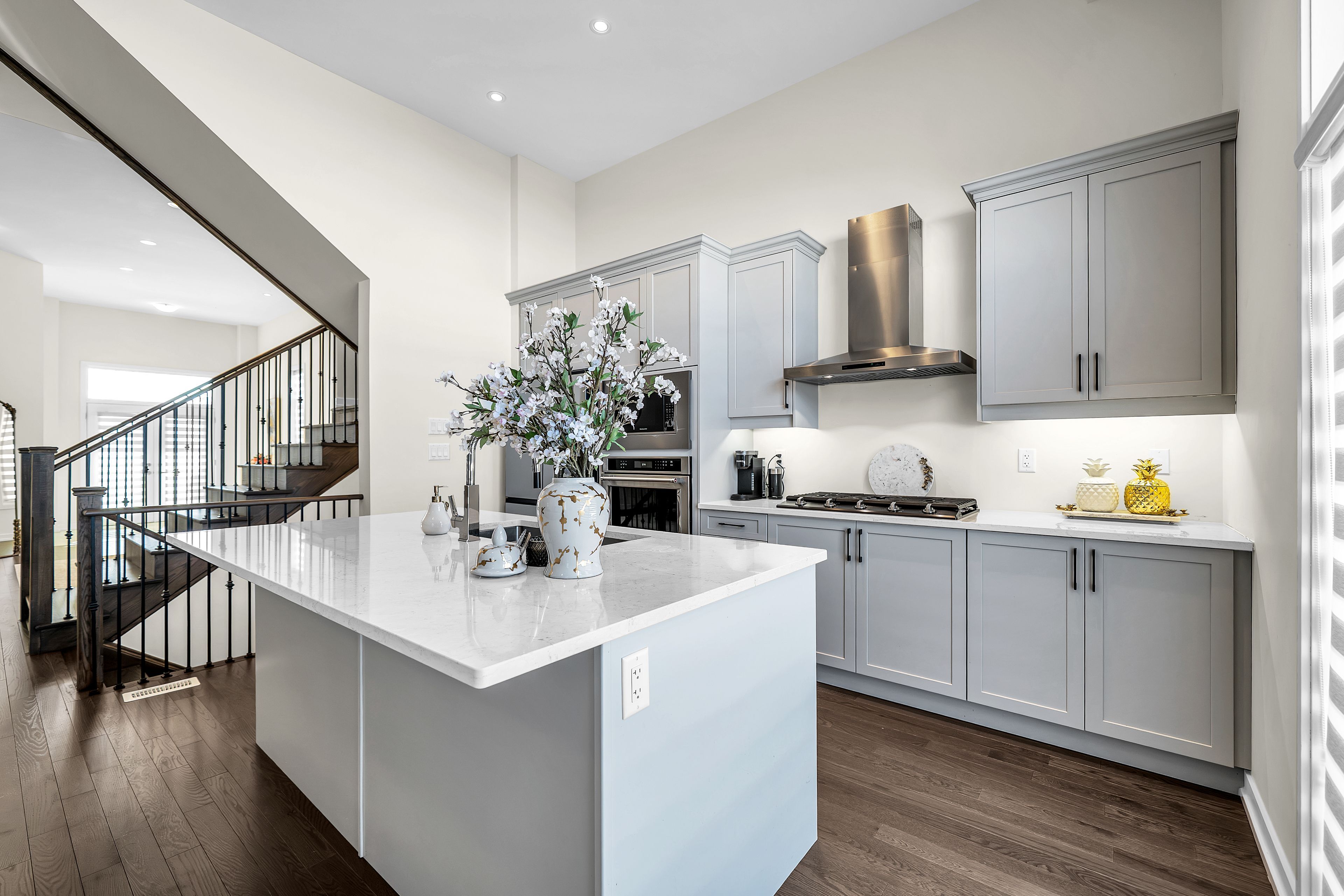 • Well-equipped kitchen with built-in oven and gas cooktop for cooking enthusiasts.