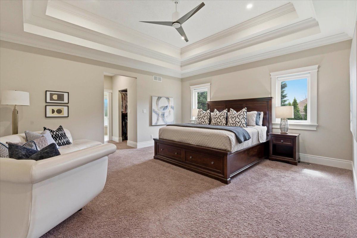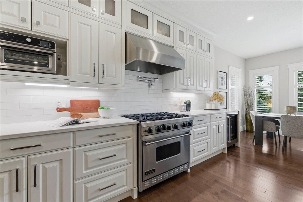 • Gourmet kitchen features a 9-foot quartz island and high-end appliances.