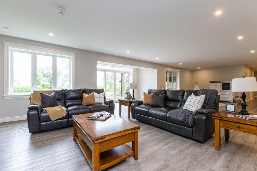 Icf construction! This stunning 8-bedroom luxury residence is set on 12 acres of breathtakingly private countryside. A custom walkout bungalow with magazine-worthy curb appeal, it features extensive landscaping and a rarely offered insulated outbuilding nestled among towering trees. The heated, oversized garage includes a third door perfect for a mower or extra storage. An expansive deck with a striking tree feature offers splendid country views. Inside, impressive craftsmanship abounds, from the double-door foyer to the extensive trim work and wainscoting throughout. Oversized triple-pane windows and elegant lighting beautifully illuminate the home. Enjoy year-round comfort in the insulated sunroom with a two-sided fireplace for seamless indoor/outdoor enjoyment. The gourmet eat-in kitchen offers a stylish peek-a-boo opening to the living room, which is anchored by a grand stone fireplace. A main-floor den and an oversized laundry room complete with double laundry machines, granite countertops, and extensive built-in cabinetry add to the home's exceptional functionality. The walk-out lower level features incredible in-law potential and boasts in-floor heating, additional bedrooms, a full bath, an enormous rec room, and abundant storage. Outdoors, a concrete pad is ideal for sports, and a charming goat barn completes the picture. All this, just minutes from the highway and carleton place!