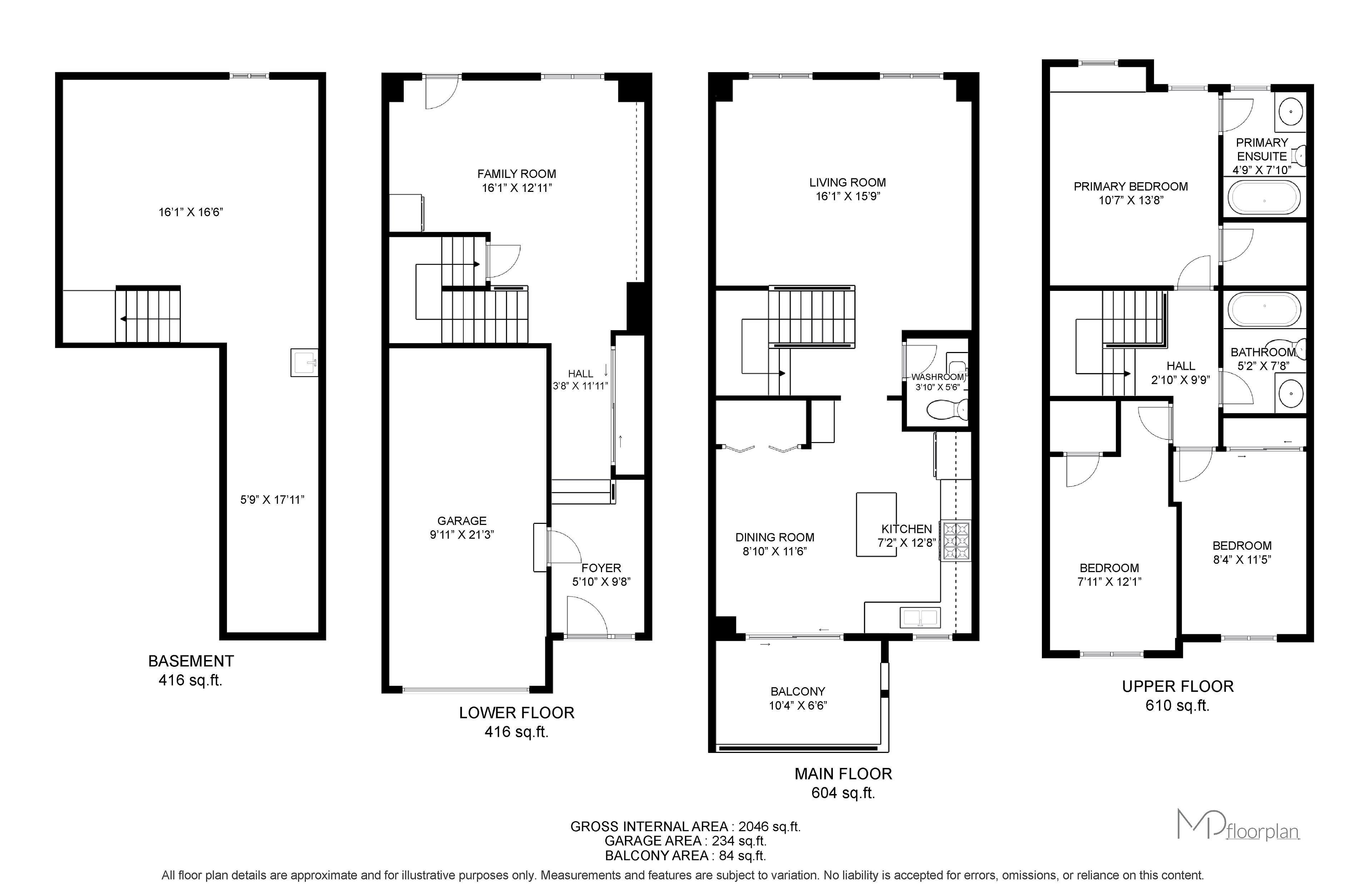• Spacious townhouse with a large foyer and triple-length closet for storage.