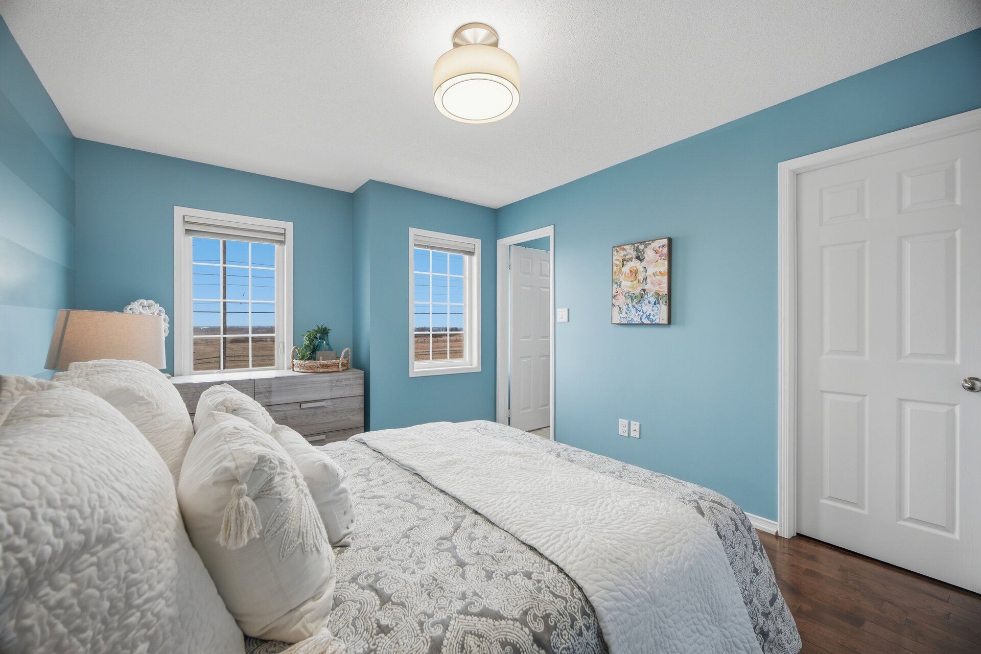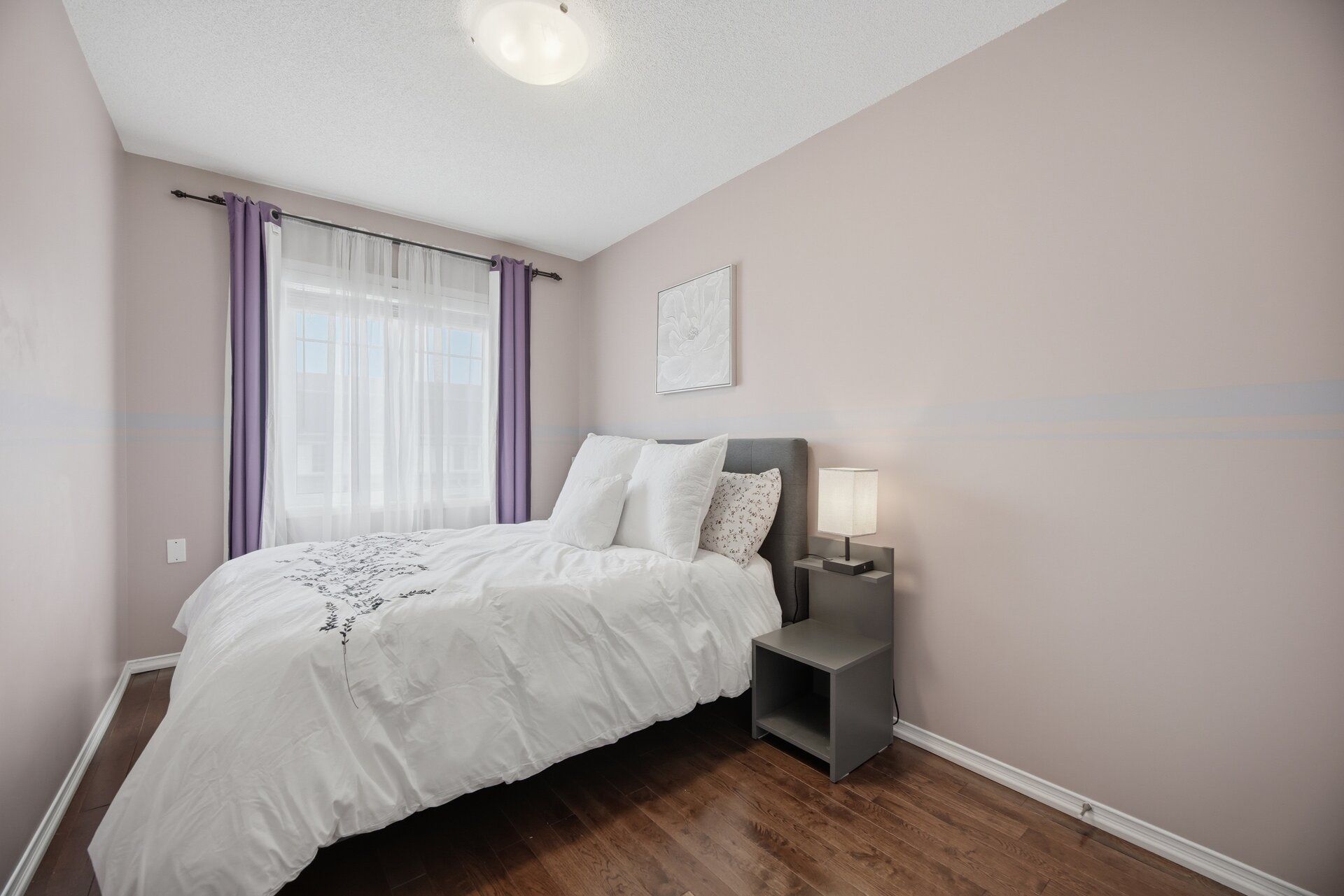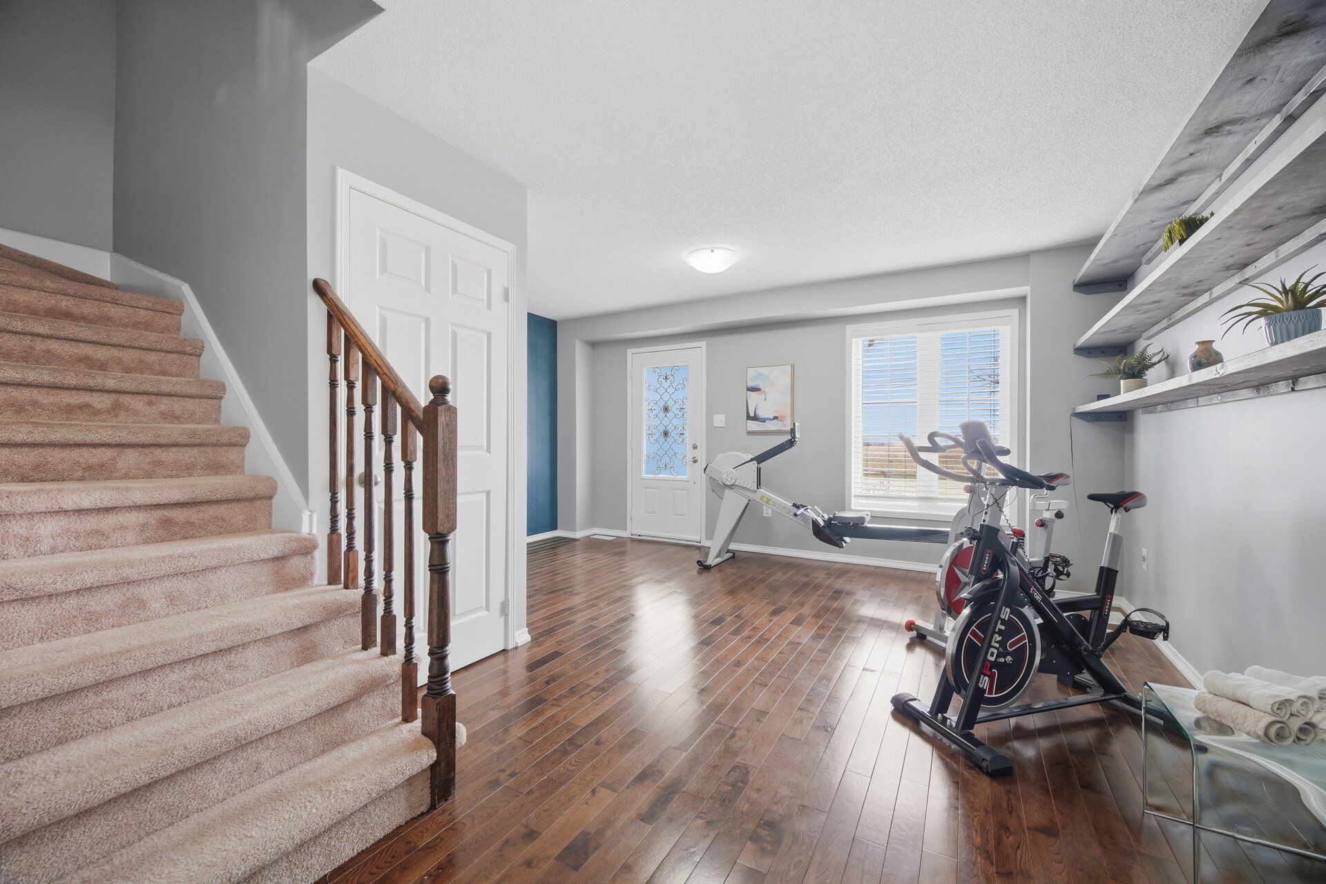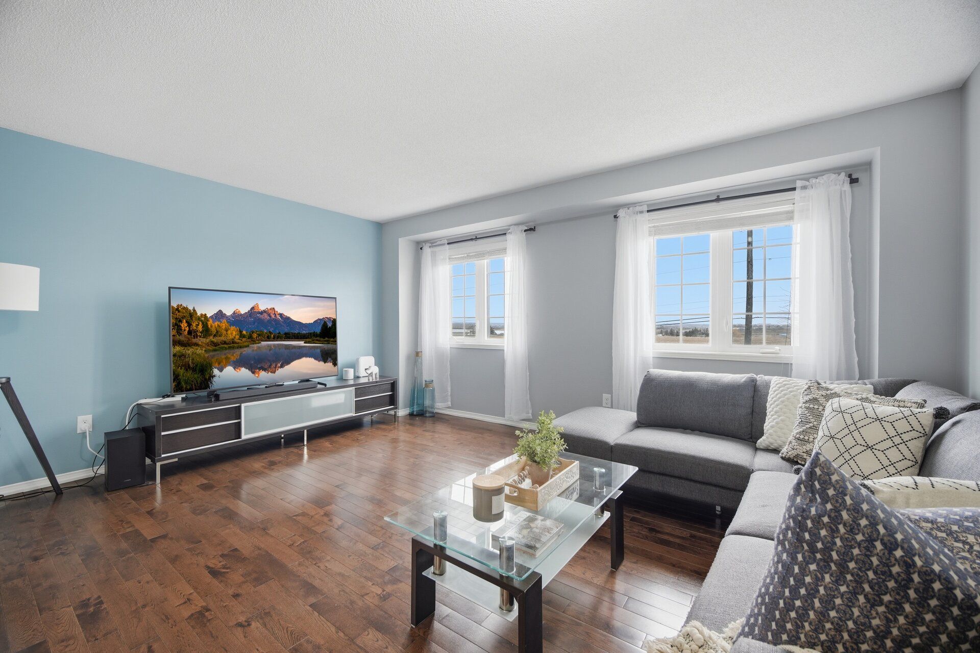 This spacious freehold townhouse offers the perfect blend of comfort, function, & room to grow. Step inside to a large foyer with a triple-length closet-ideal for busy households with plenty to store. Bright ground-level family room features hardwood floors & a large window, creating a cozy yet versatile space for movie nights, a play area, or a home office. Upstairs, the main living level has an oversized living room that easily hosts gatherings with friends & family, while a well-placed powder room adds everyday convenience. The kitchen is both stylish & practical, complete with a spacious island with seating, abundant cabinetry, & updated appliances including a s/s fridge (2023), white gas range (2023), s/s double drawer dishwasher (2023), & hood fan (2020). The kitchen flows seamlessly into the dining area, where you can step out onto your private terrace-perfect for summer bbqs, morning coffee, or unwinding at the end of the day. Laundry is thoughtfully located on the main living level, featuring a side-by-side front-load washer & dryer. Upstairs, the bedroom level offers a functional & private layout. The primary suite is tucked away overlooking peaceful, farmland & is complete with a walk-in closet & a bright ensuite. Two additional generously sized bedrooms (including one with a walk-in closet) & hardwood floors complete the upper level. This home even has a full basement-a rare bonus in townhomes-offering endless possibilities for a recreation room, gym, or multiple work-from-home spaces. This layout truly allows your bedrooms to stay as bedrooms while still giving you the flexibility modern living demands. Located in a growing, family-friendly pocket of ajax, you're just minutes to shopping, restaurants, & everyday essentials. Easy access to major highways makes commuting simple. Whether it's weekend walks, bike rides, or quick trips for coffee and groceries, everything you need is close at hand. At 1661 sq ft + 416 sq ft basement, you've got loads of space!