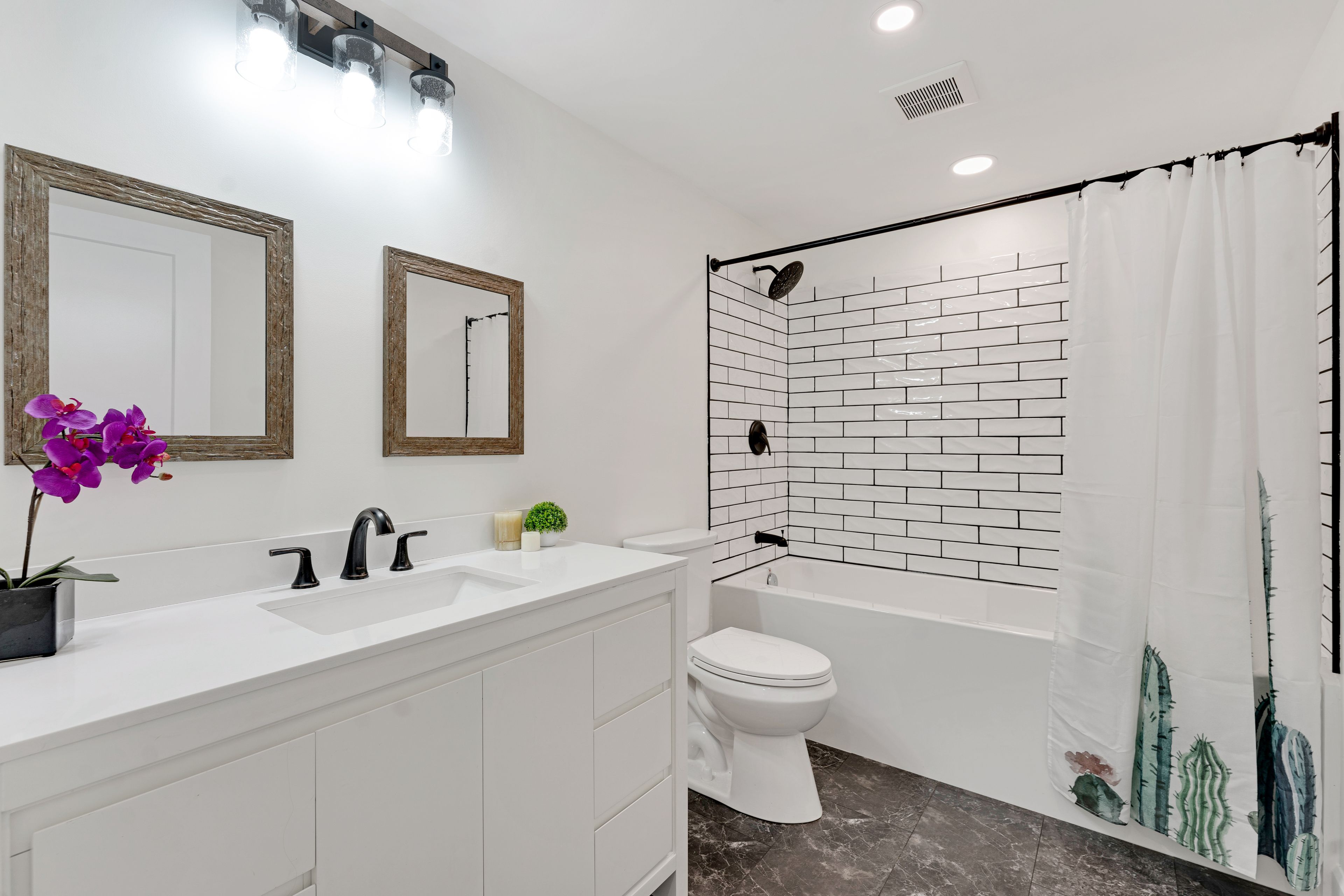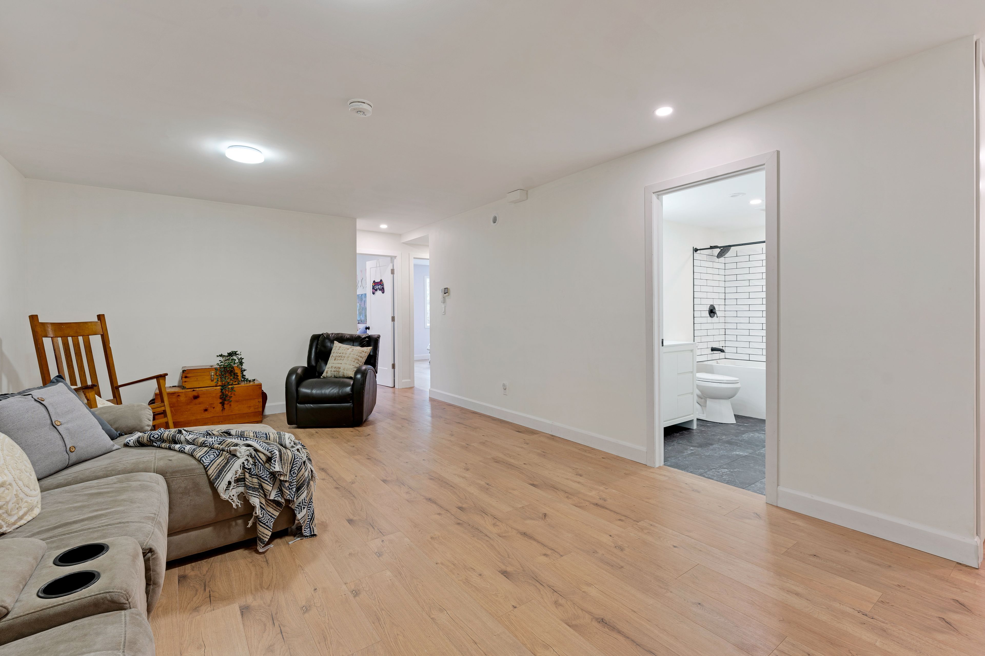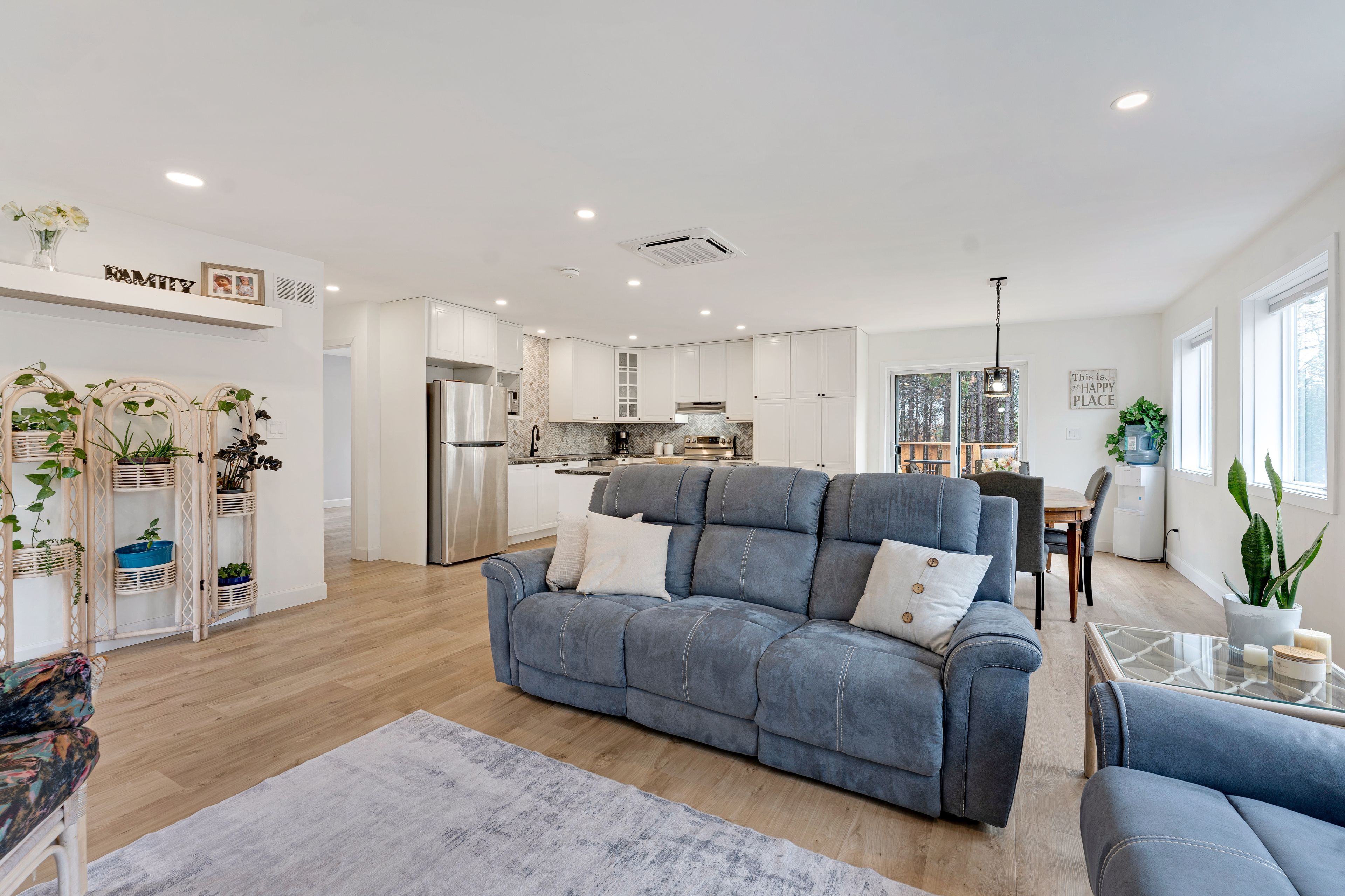 • Bright open concept layout with modern finishes and cozy fireplace.